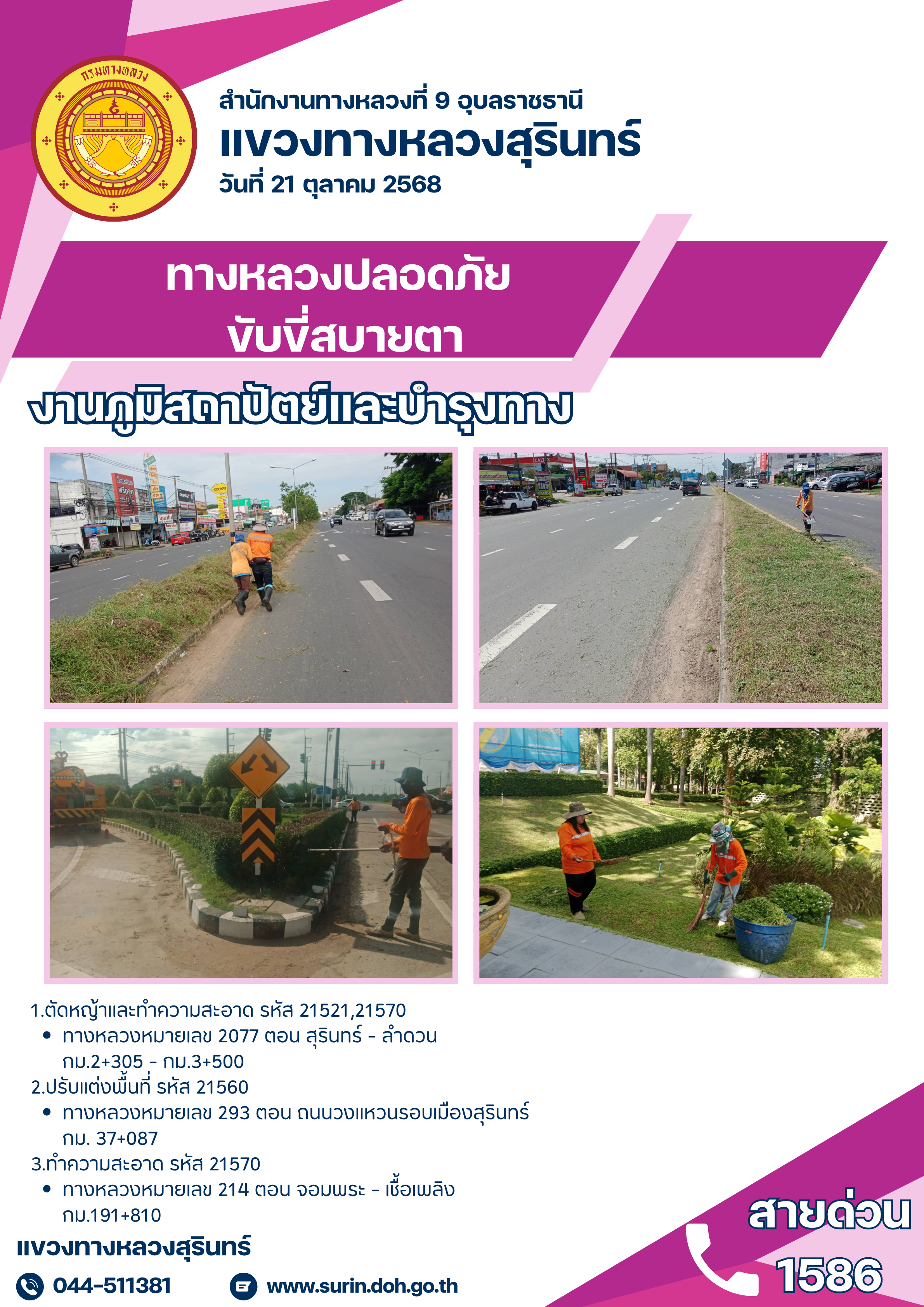 ทางหลวงปลอดภัย ขับขี่สบายตา 21 ตุลาคม 2568 |
