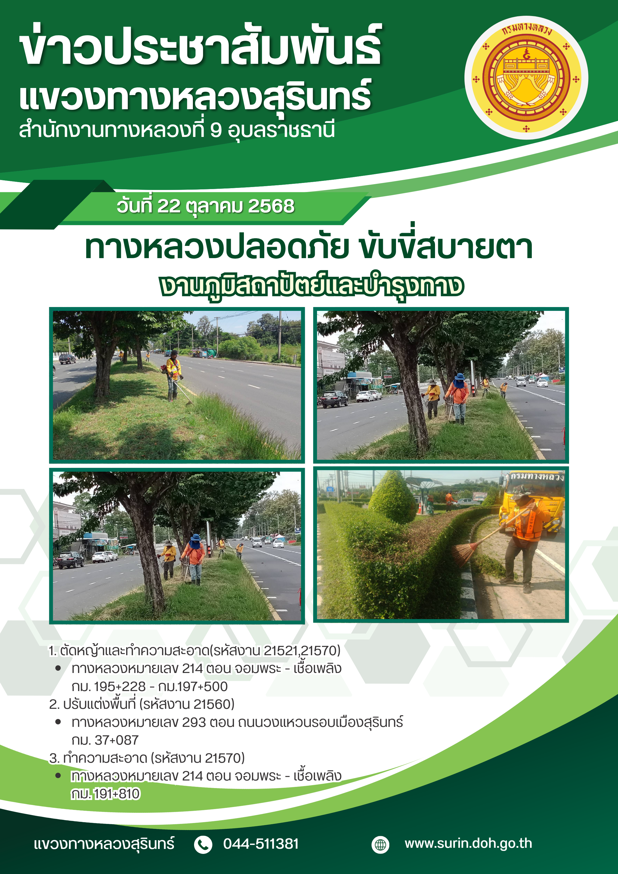 ทางหลวงปลอดภัย ขับขี่สบายตา 22 ตุลาคม 2568 |