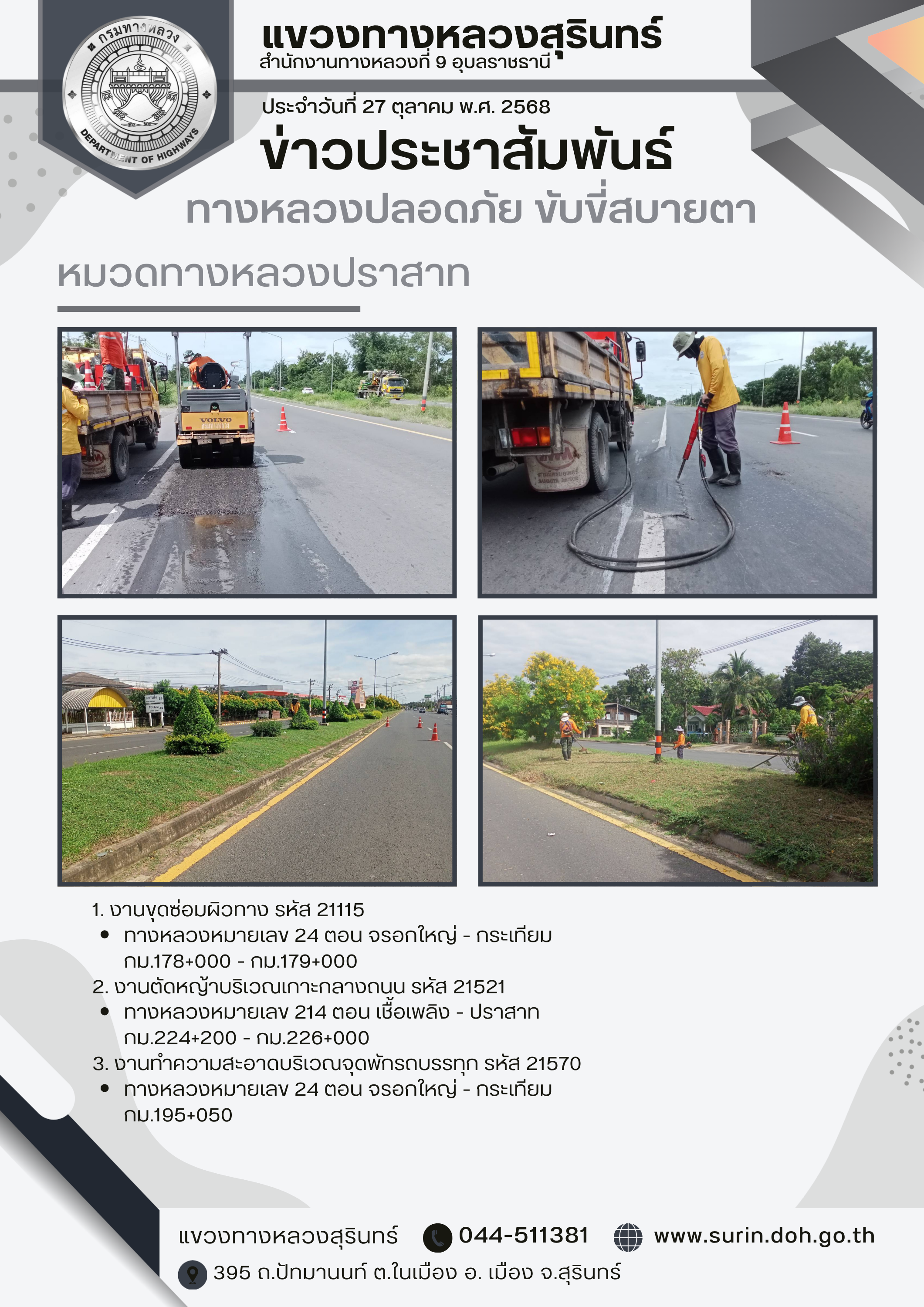 ทางหลวงปลอดภัย ขับขี่สบายตา 27 ตุลาคม 2568 |
