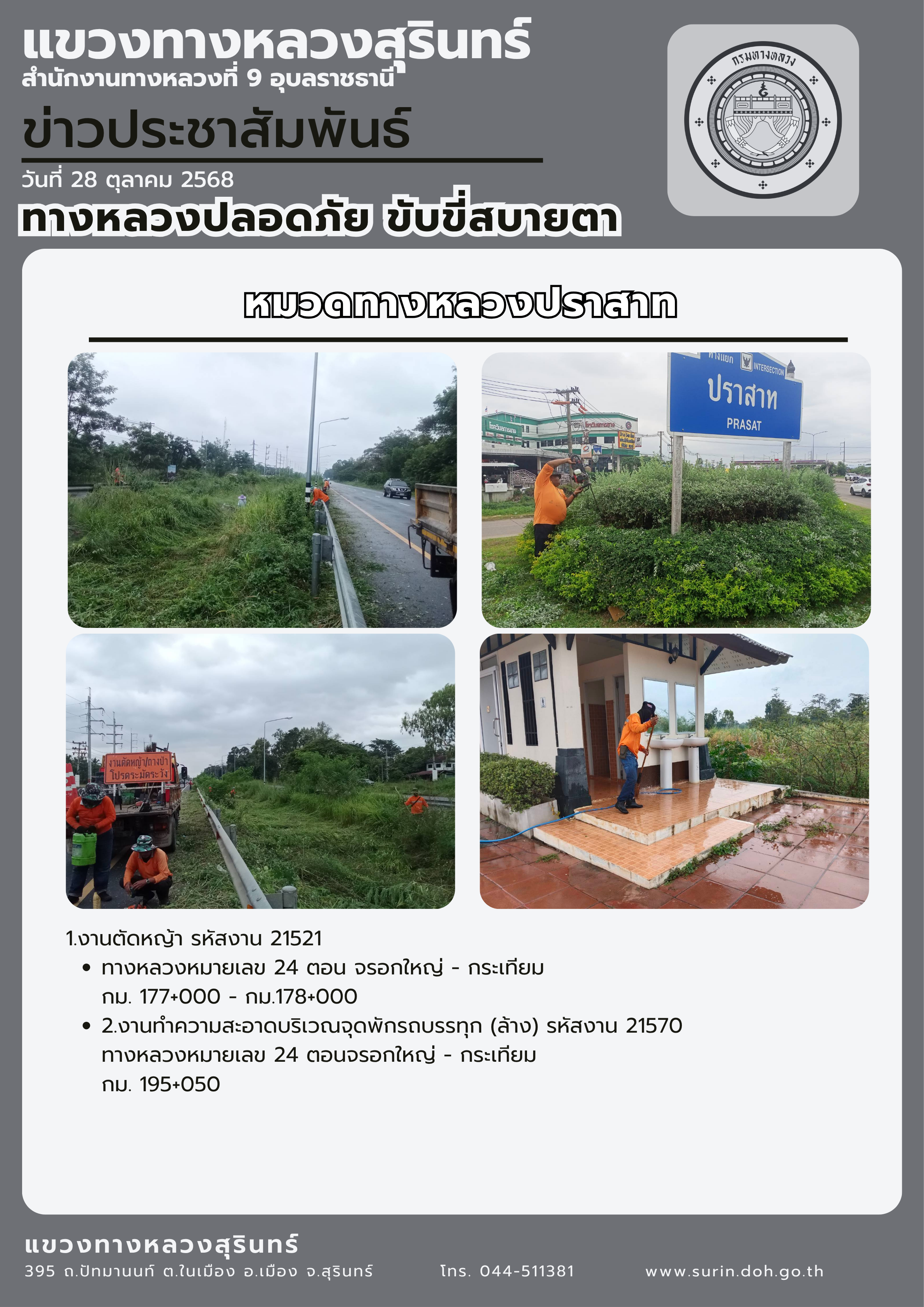 ทางหลวงปลอดภัย ขับขี่สบายตา 28 ตุลาคม 2568 |