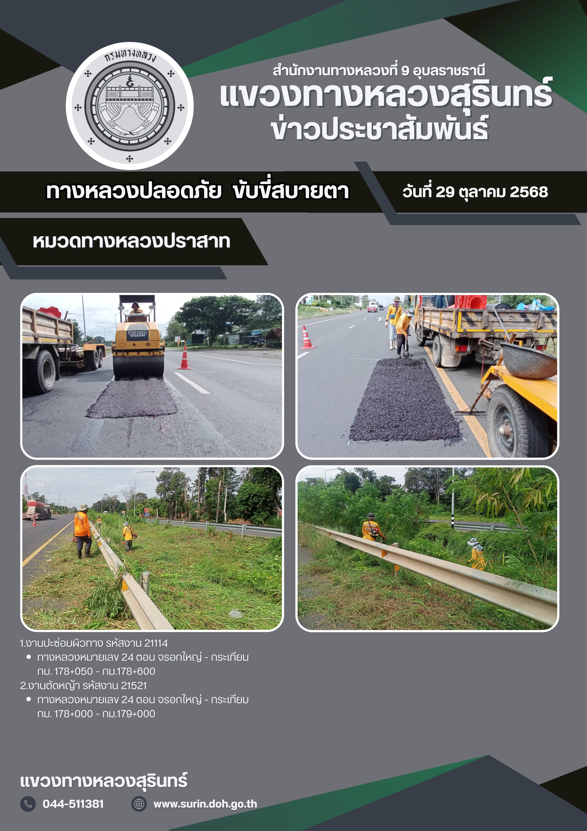 ทางหลวงปลอดภัย ขับขี่สบายตา 29 ตุลาคม 2568 |