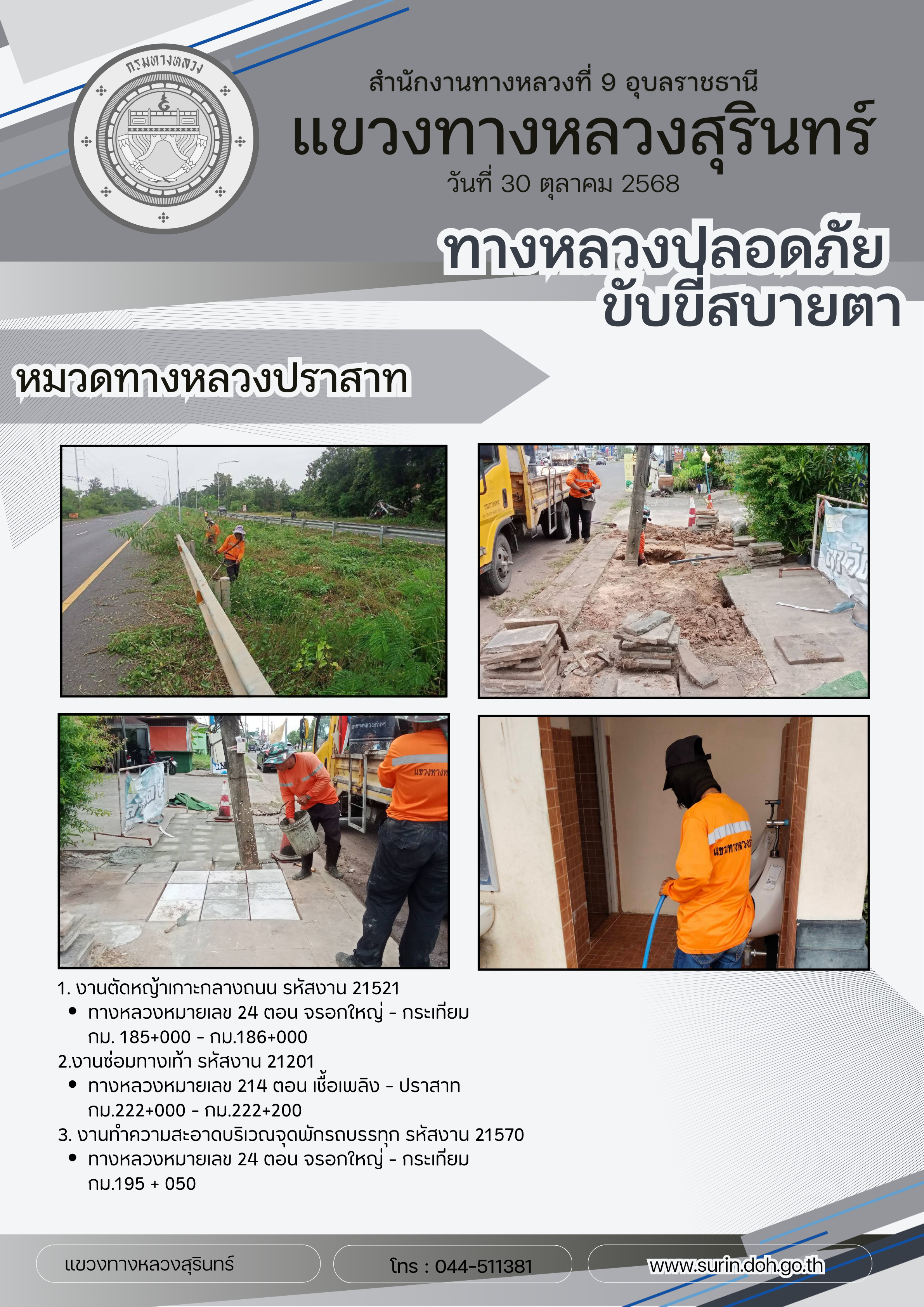 ทางหลวงปลอดภัย ขับขี่สบายตา 30 ตุลาคม 2568 |