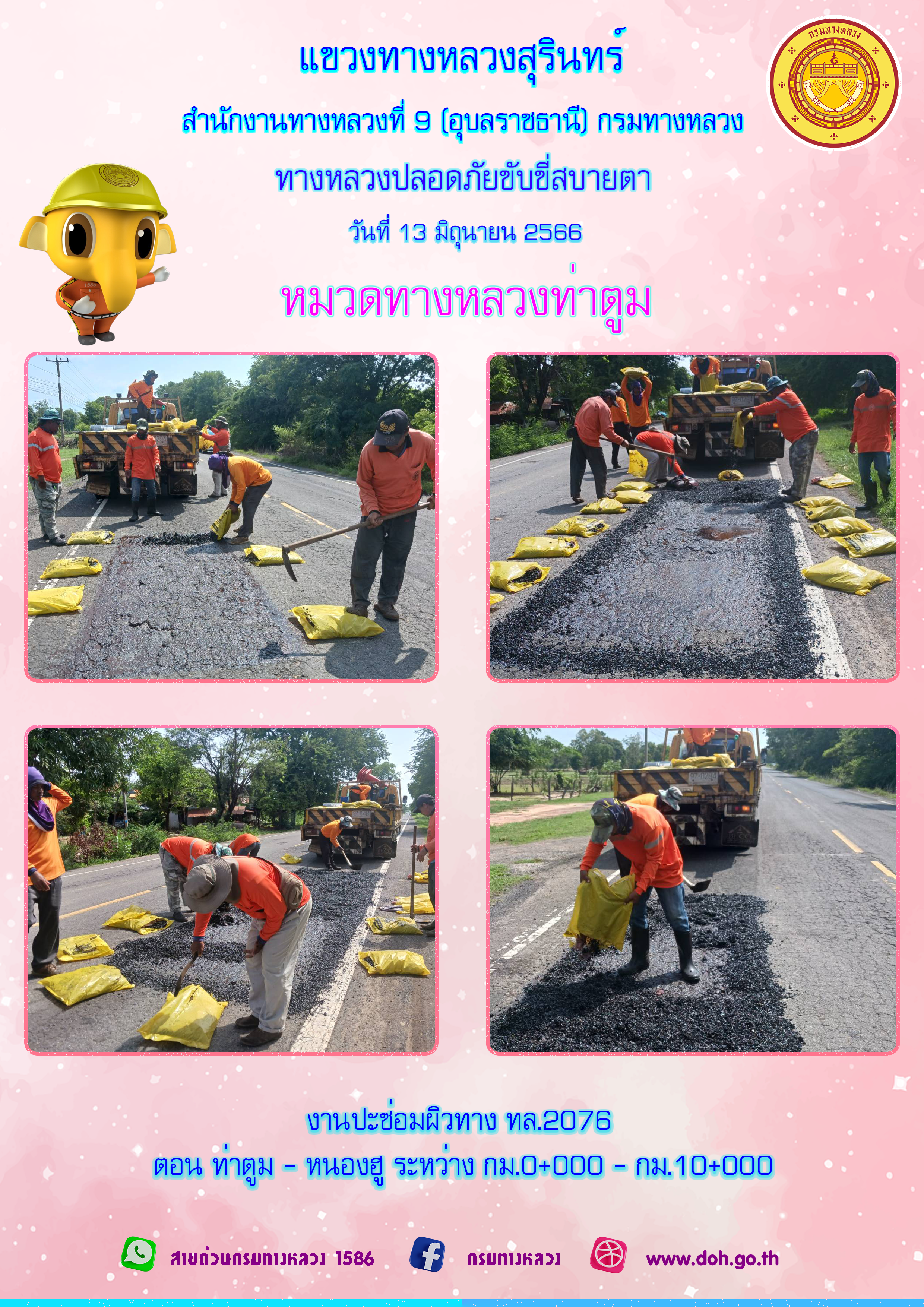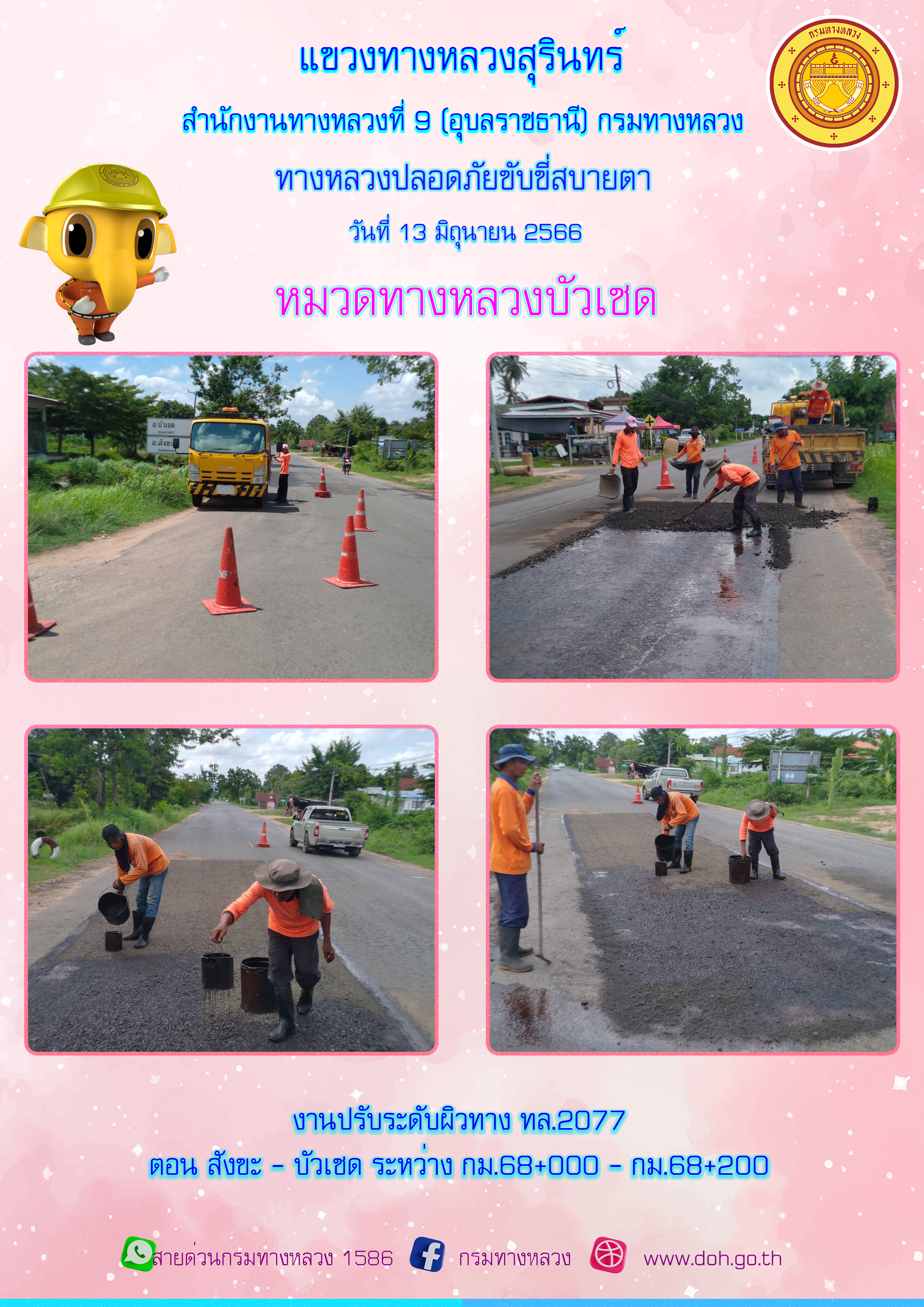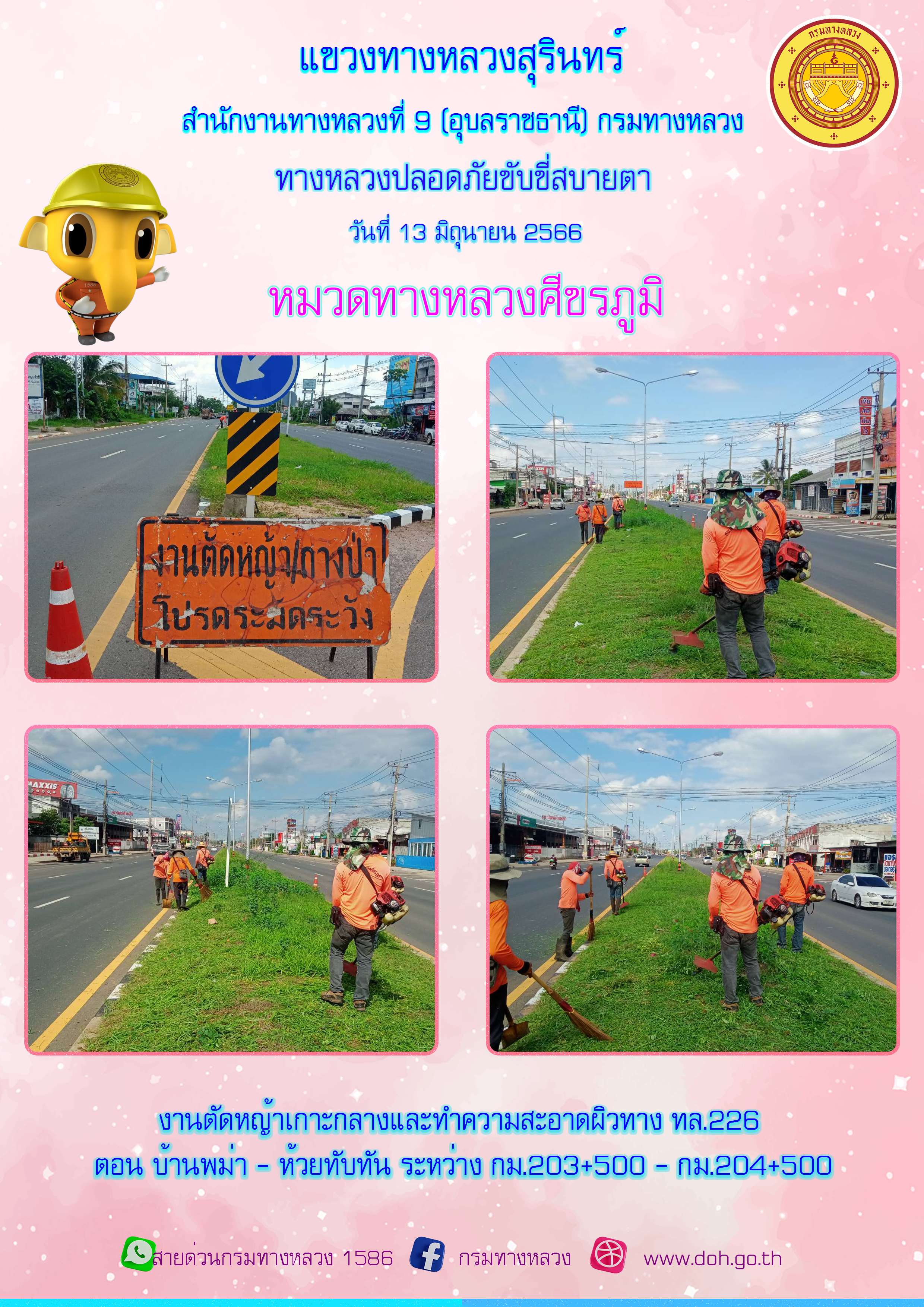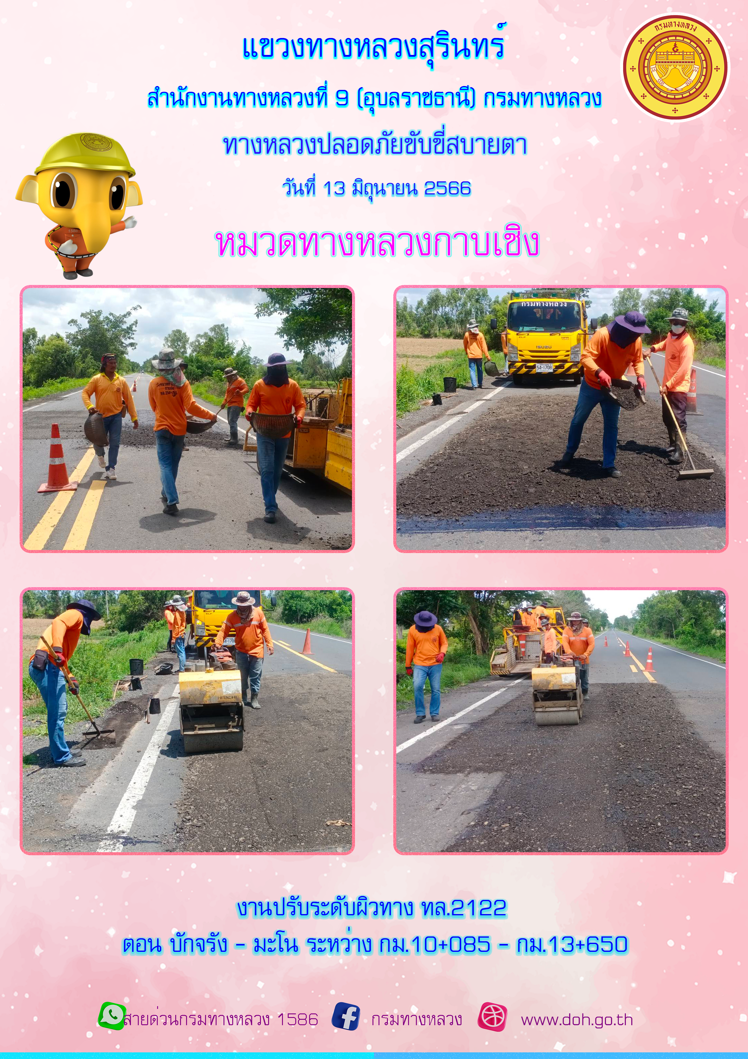 ข้อมูลภาพกิจกรรม : ทางหลวงปลอยภัย ขับขี่สบายตา 13 มิถุนายน 2566