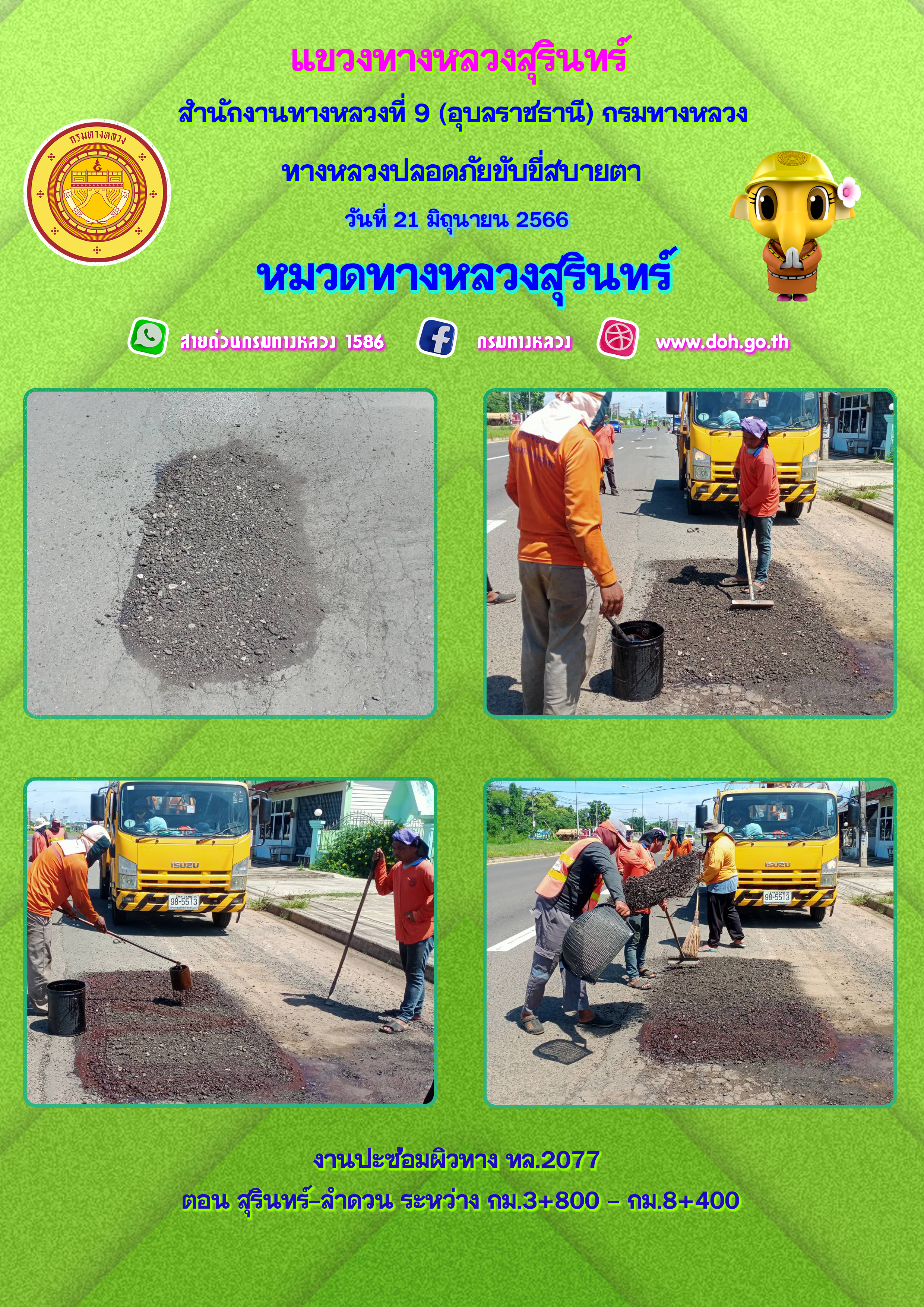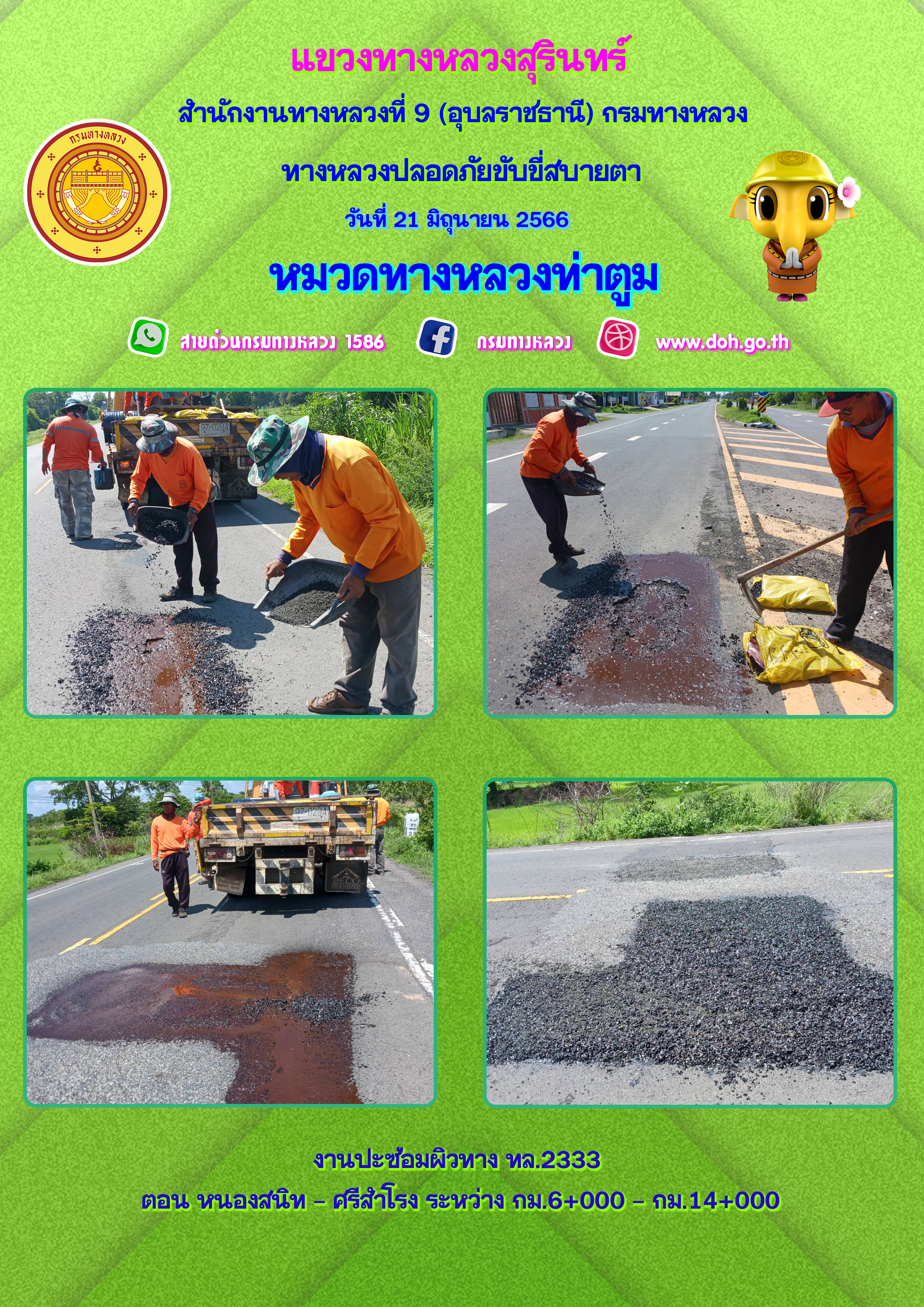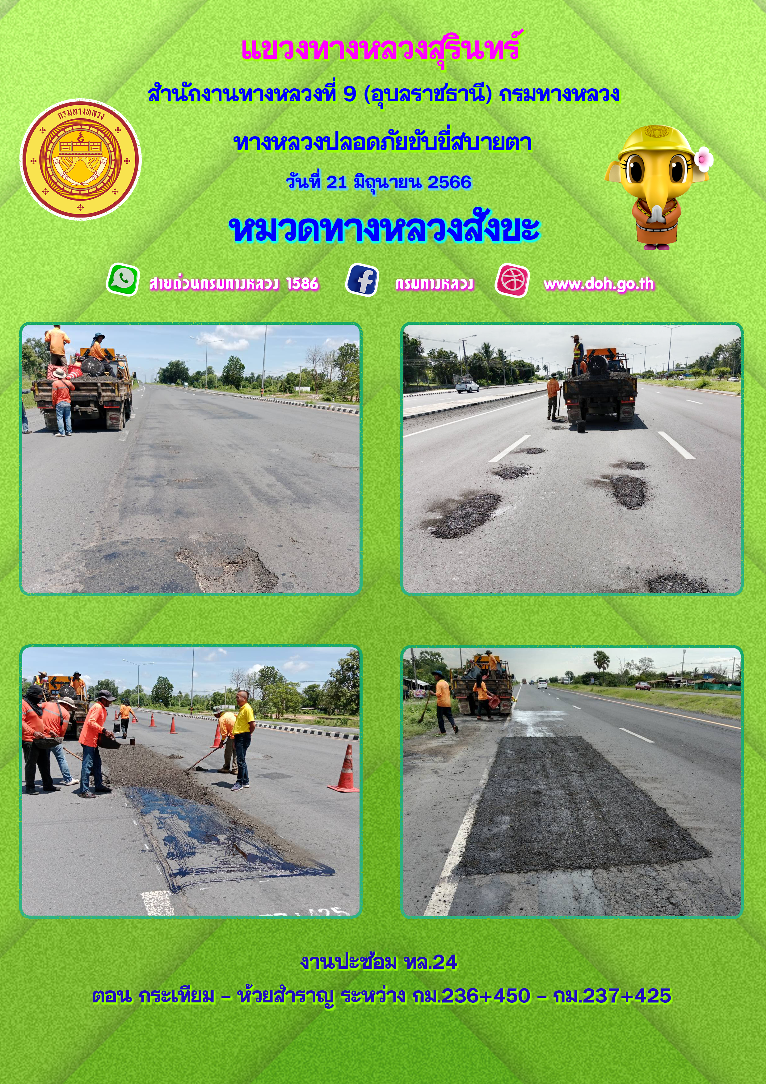 ข้อมูลภาพกิจกรรม : ทางหลวงปลอยภัย ขับขี่สบายตา 21 มิถุนายน 2566