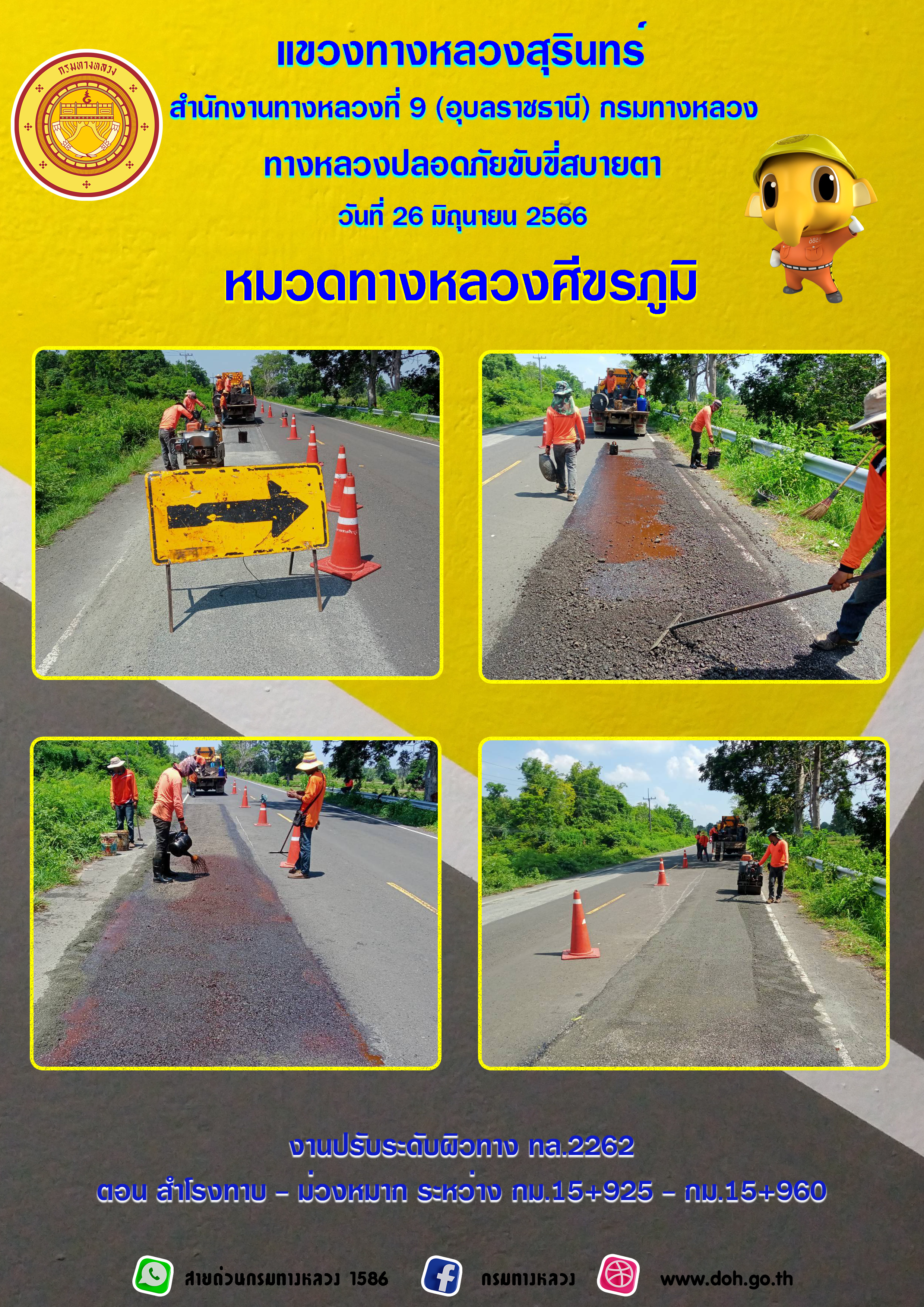 ข้อมูลภาพกิจกรรม : ทางหลวงปลอยภัย ขับขี่สบายตา 26 มิถุนายน 2566