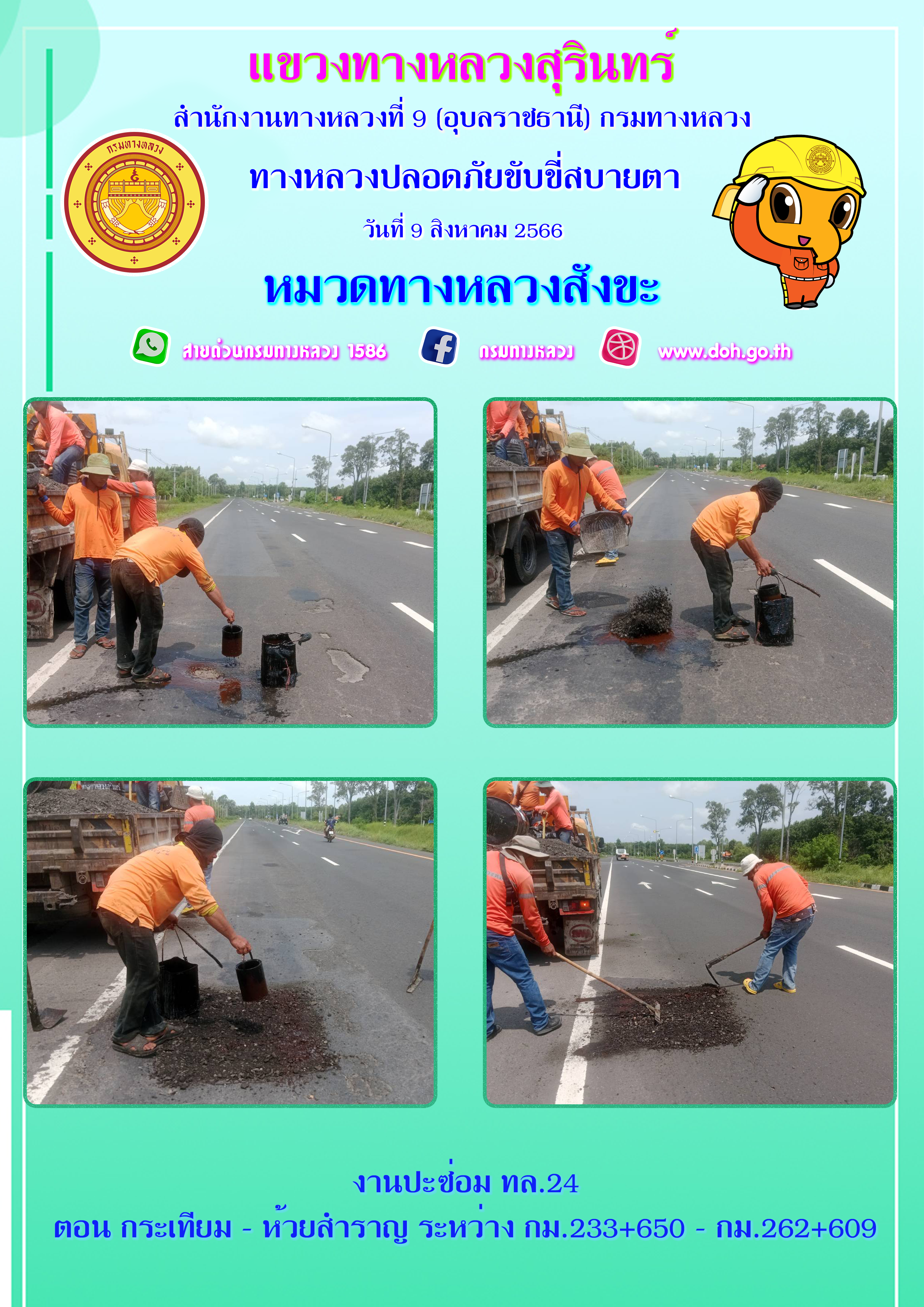 ทางหลวงปลอยภัย ขับขี่สบายตา 9 สิงหาคม 2566