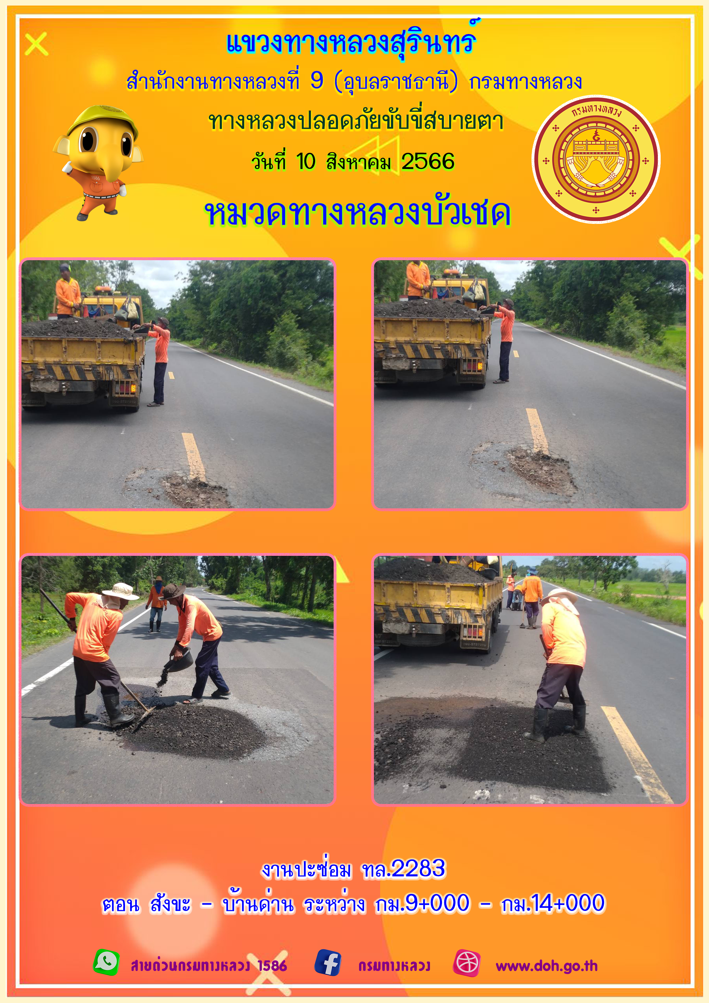 ข้อมูลภาพกิจกรรม : ทางหลวงปลอยภัย ขับขี่สบายตา 10 สิงหาคม 2566