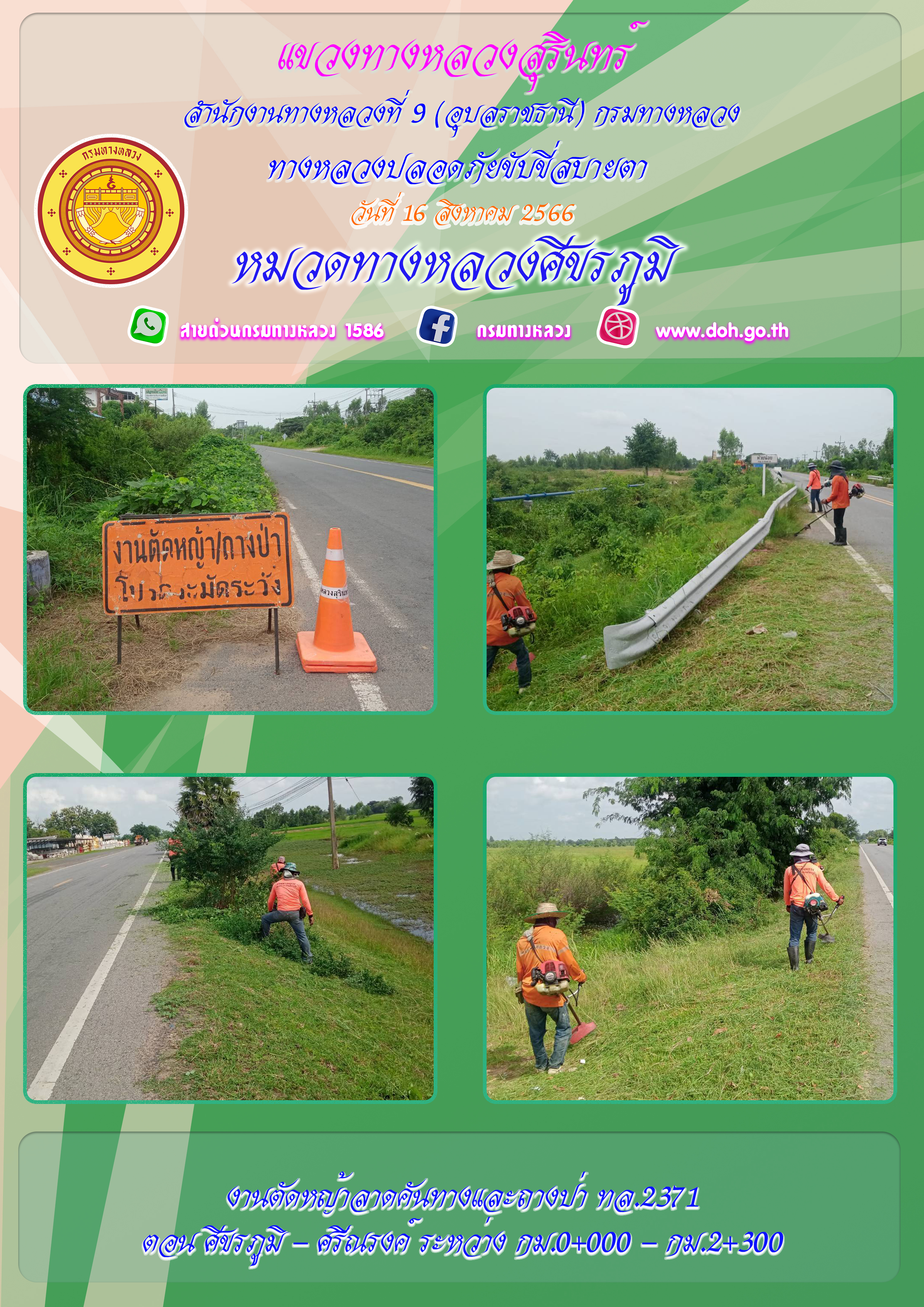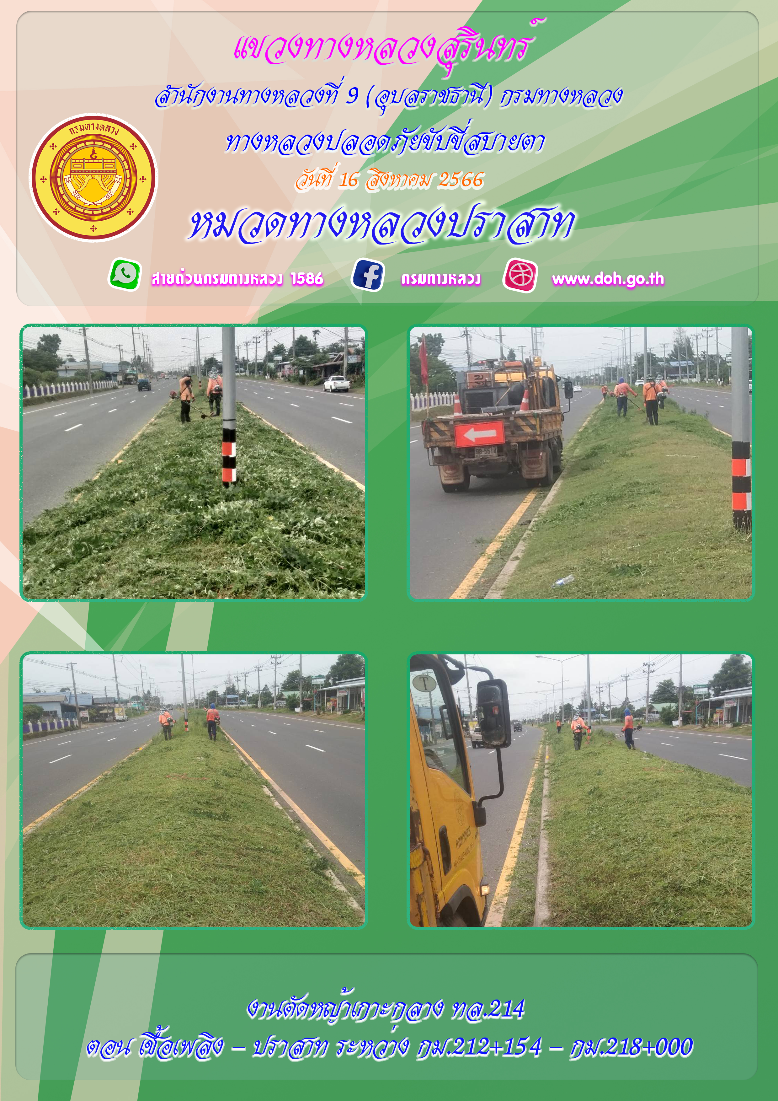 ข้อมูลภาพกิจกรรม : ทางหลวงปลอยภัย ขับขี่สบายตา 16 สิงหาคม 2566