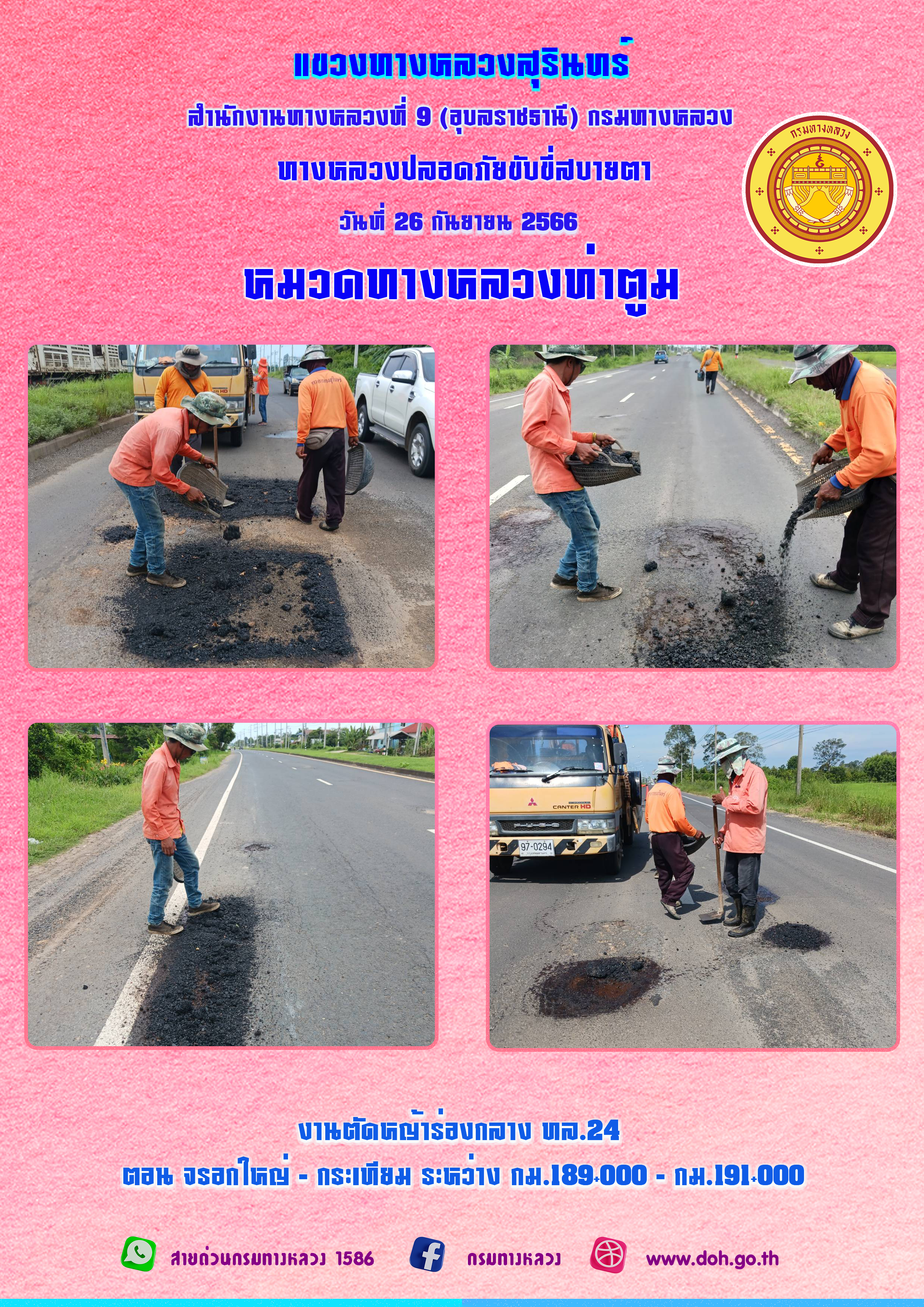 ทางหลวงปลอยภัย ขับขี่สบายตา 26 กันยายน 2566