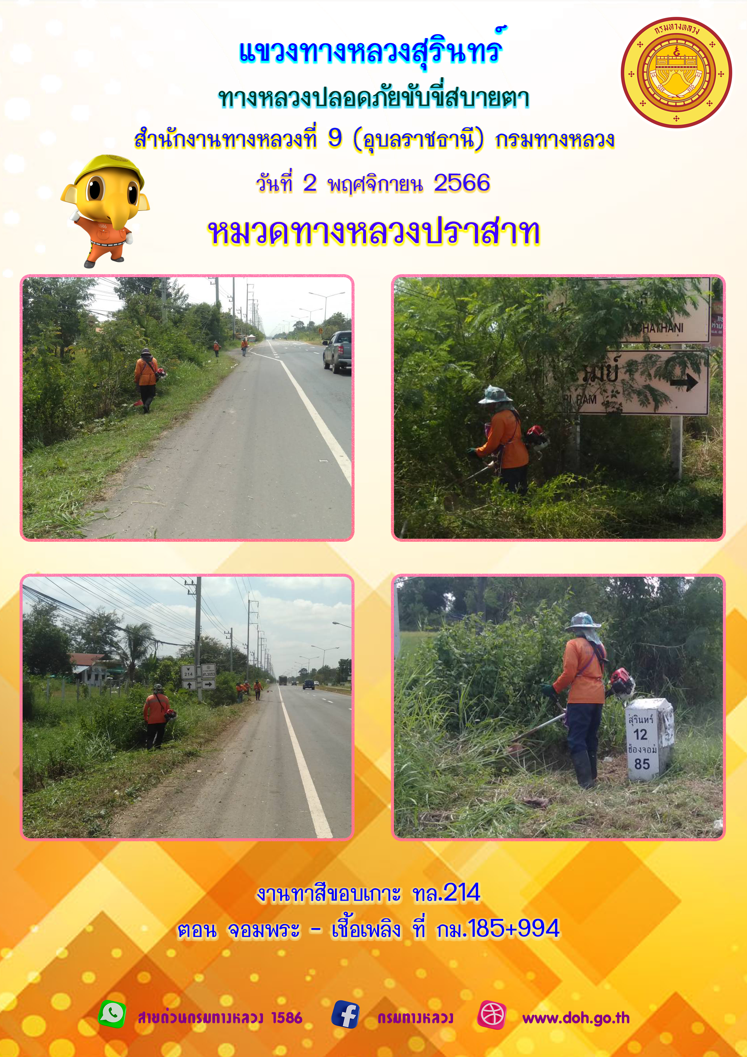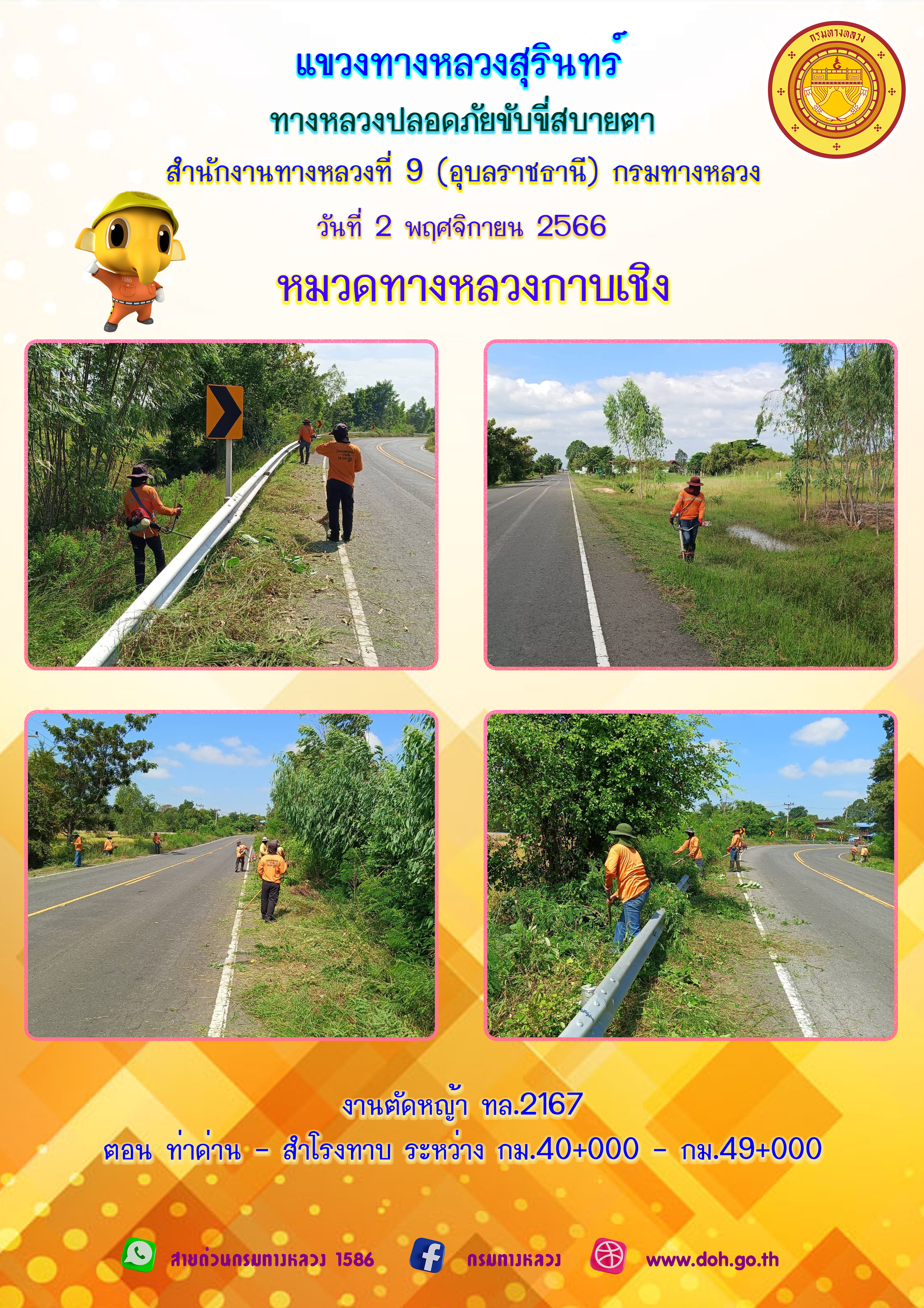 ข้อมูลภาพกิจกรรม : ทางหลวงปลอยภัย ขับขี่สบายตา 2 พฤศจิกายน 2566
