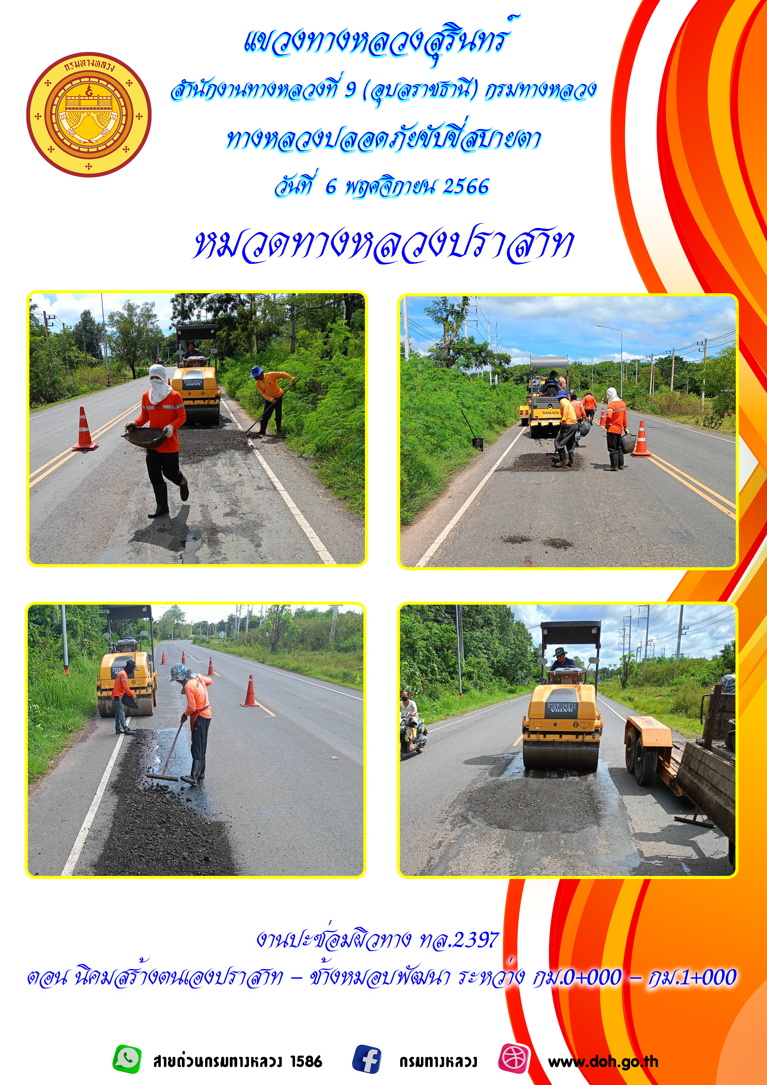 ข้อมูลภาพกิจกรรม : ทางหลวงปลอยภัย ขับขี่สบายตา 6 พฤศจิกายน 2566