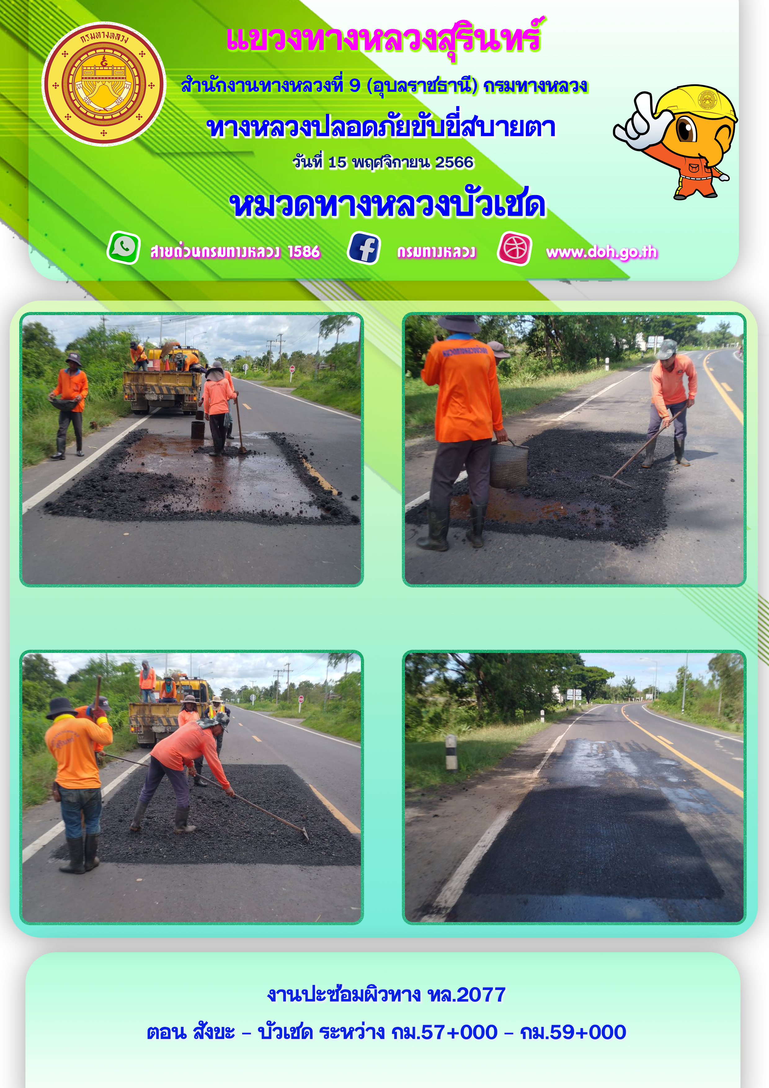 ข้อมูลภาพกิจกรรม : ทางหลวงปลอยภัย ขับขี่สบายตา 15 พฤศจิกายน 2566