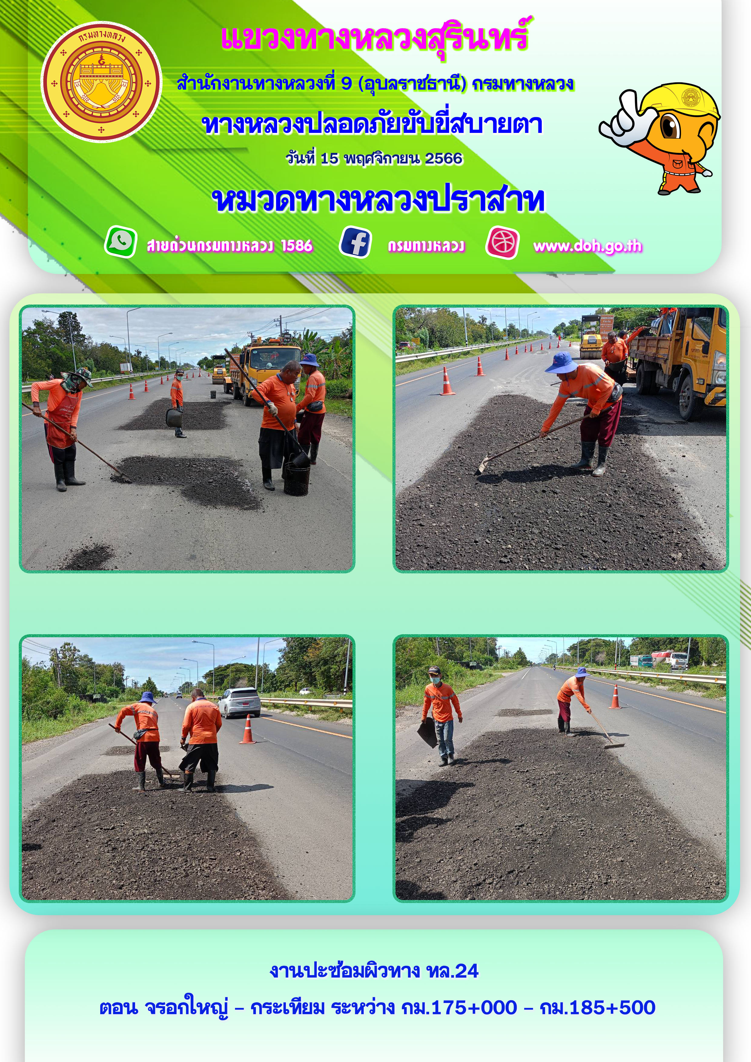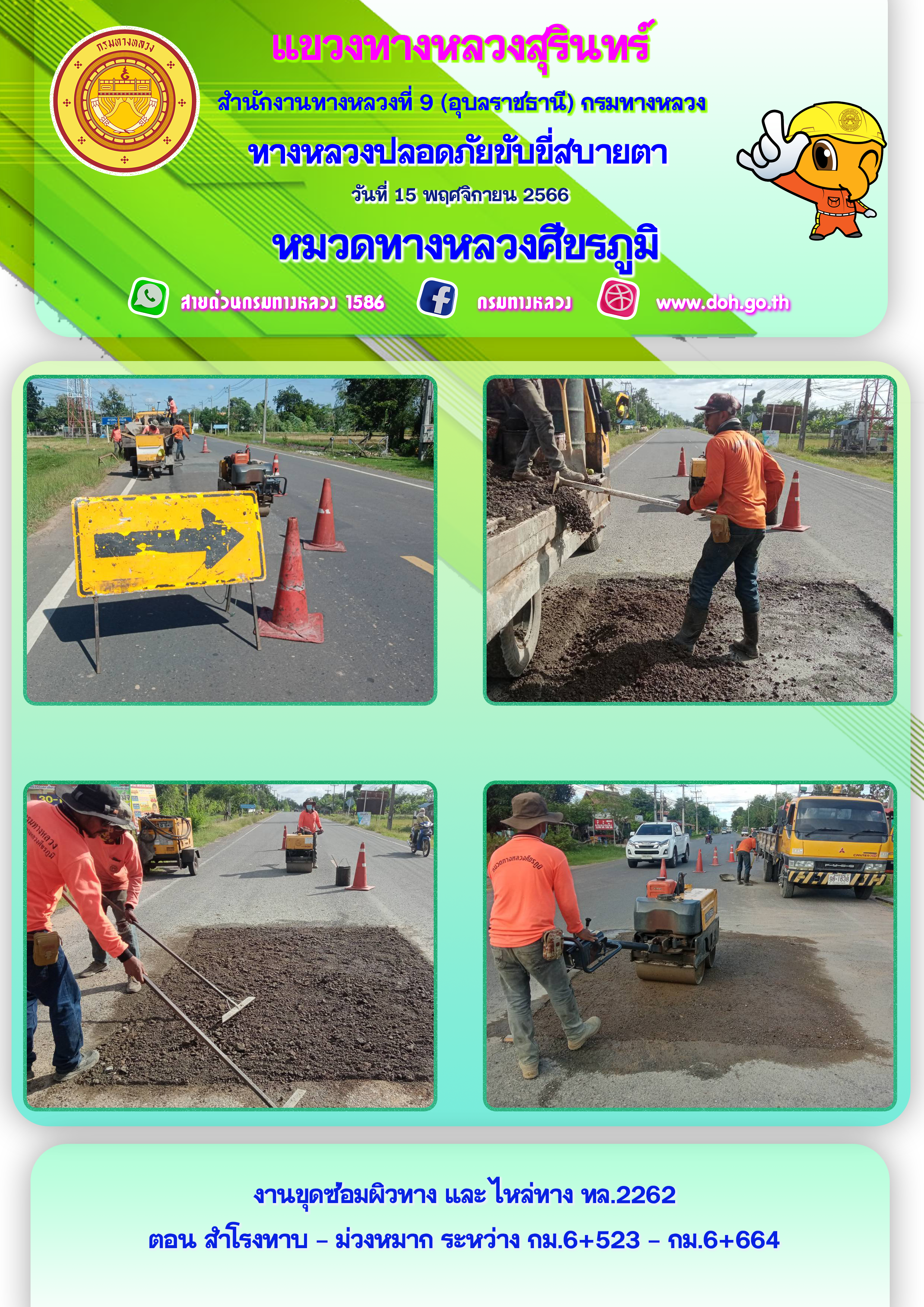 ทางหลวงปลอยภัย ขับขี่สบายตา 15 พฤศจิกายน 2566