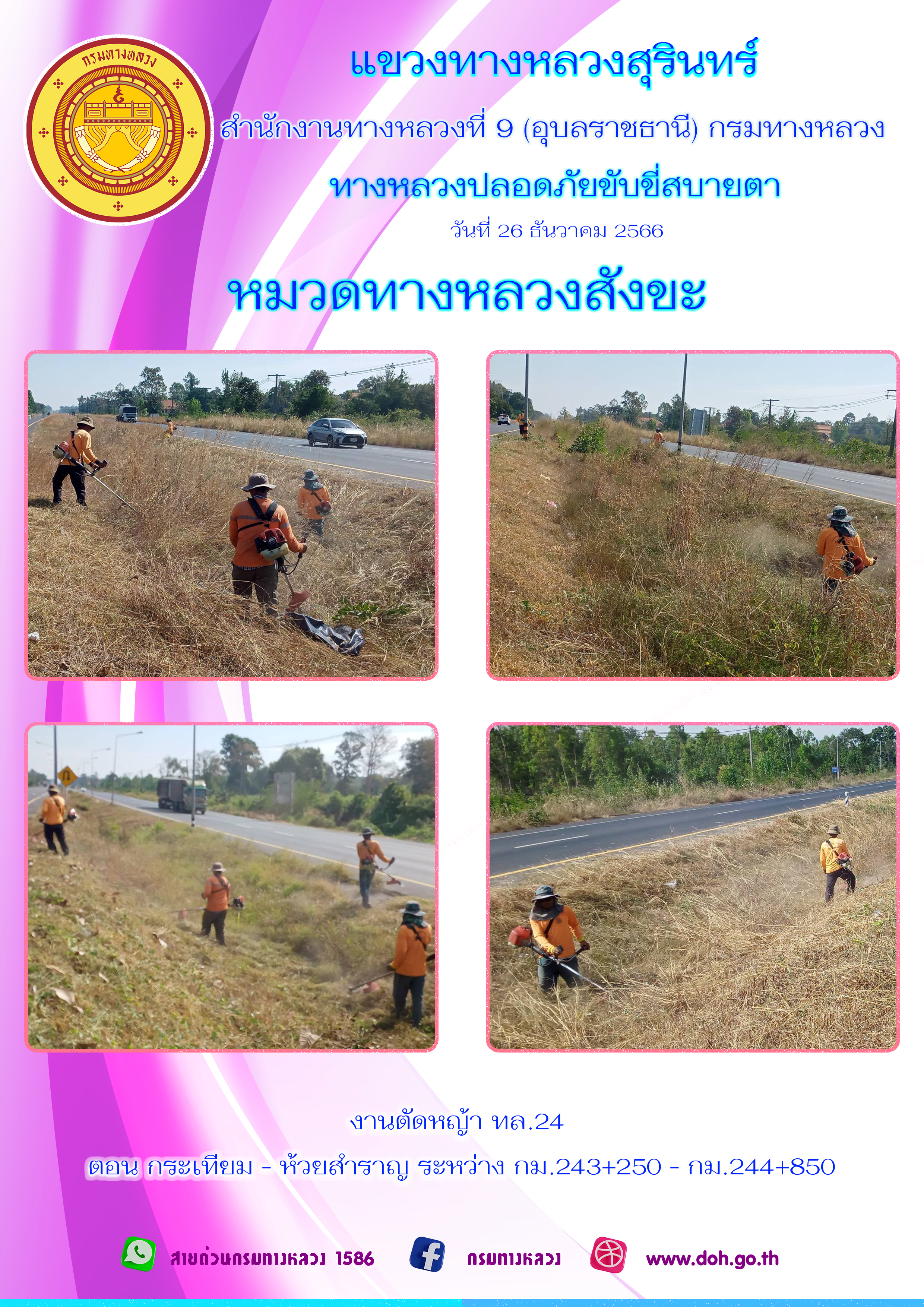 ข้อมูลภาพกิจกรรม : ทางหลวงปลอยภัย ขับขี่สบายตา 26 ธันวาคม 2566