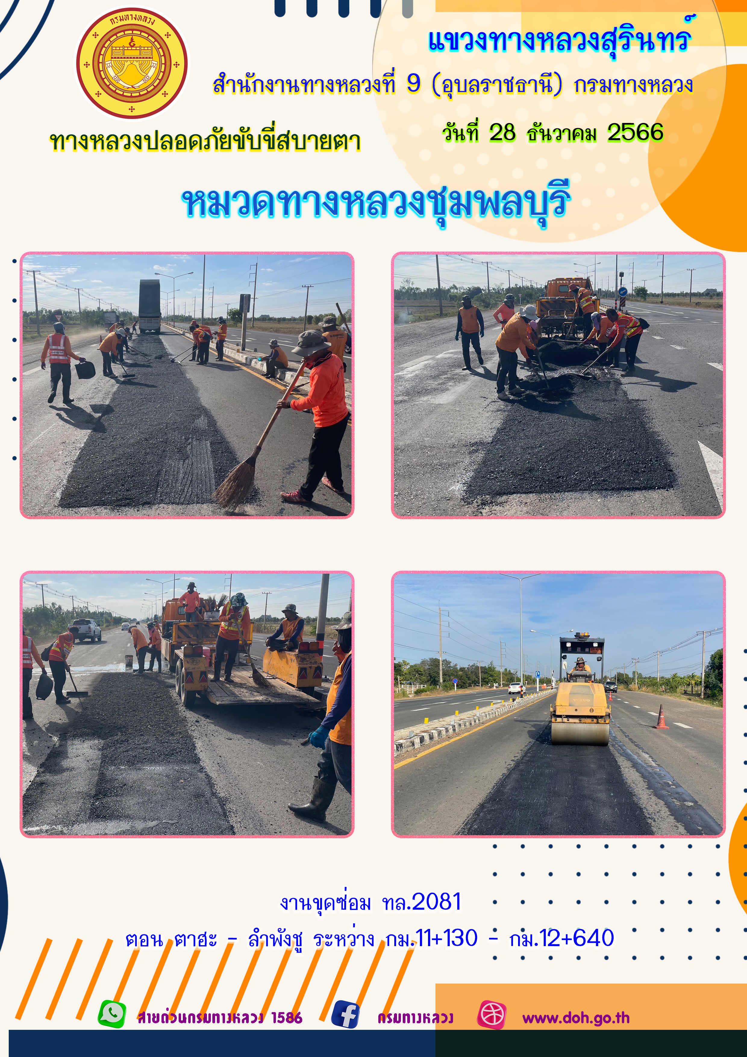 ข้อมูลภาพกิจกรรม : ทางหลวงปลอยภัย ขับขี่สบายตา 28 ธันวาคม 2566