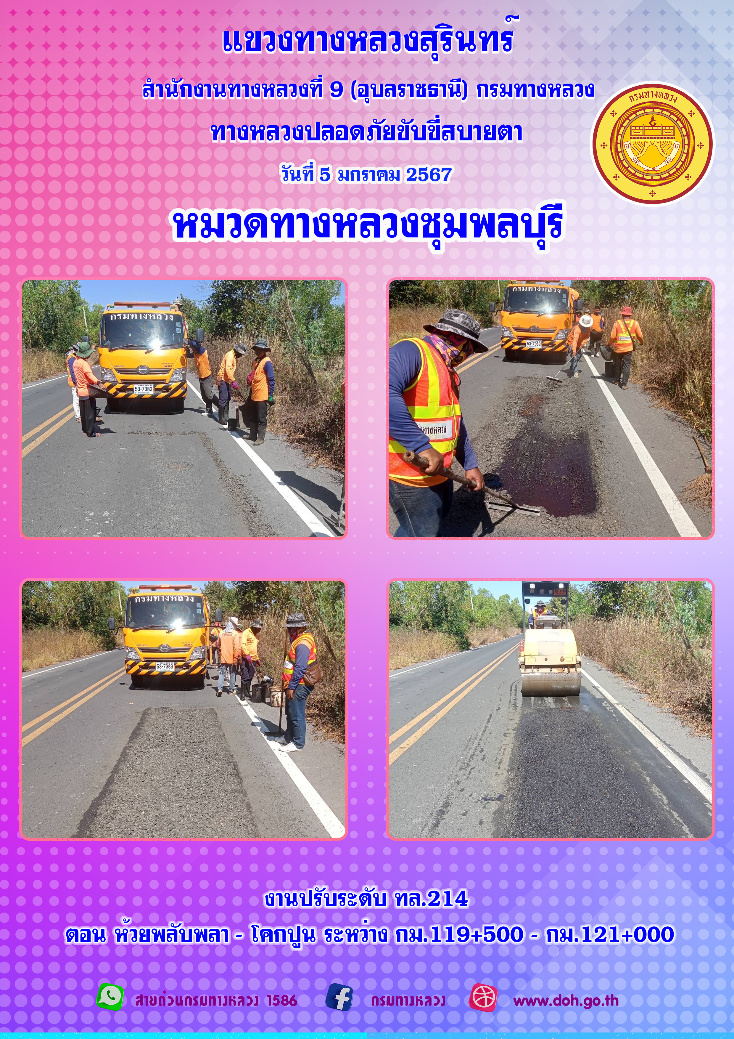 ข้อมูลภาพกิจกรรม : ทางหลวงปลอยภัย ขับขี่สบายตา 5 มกราคม 2567
