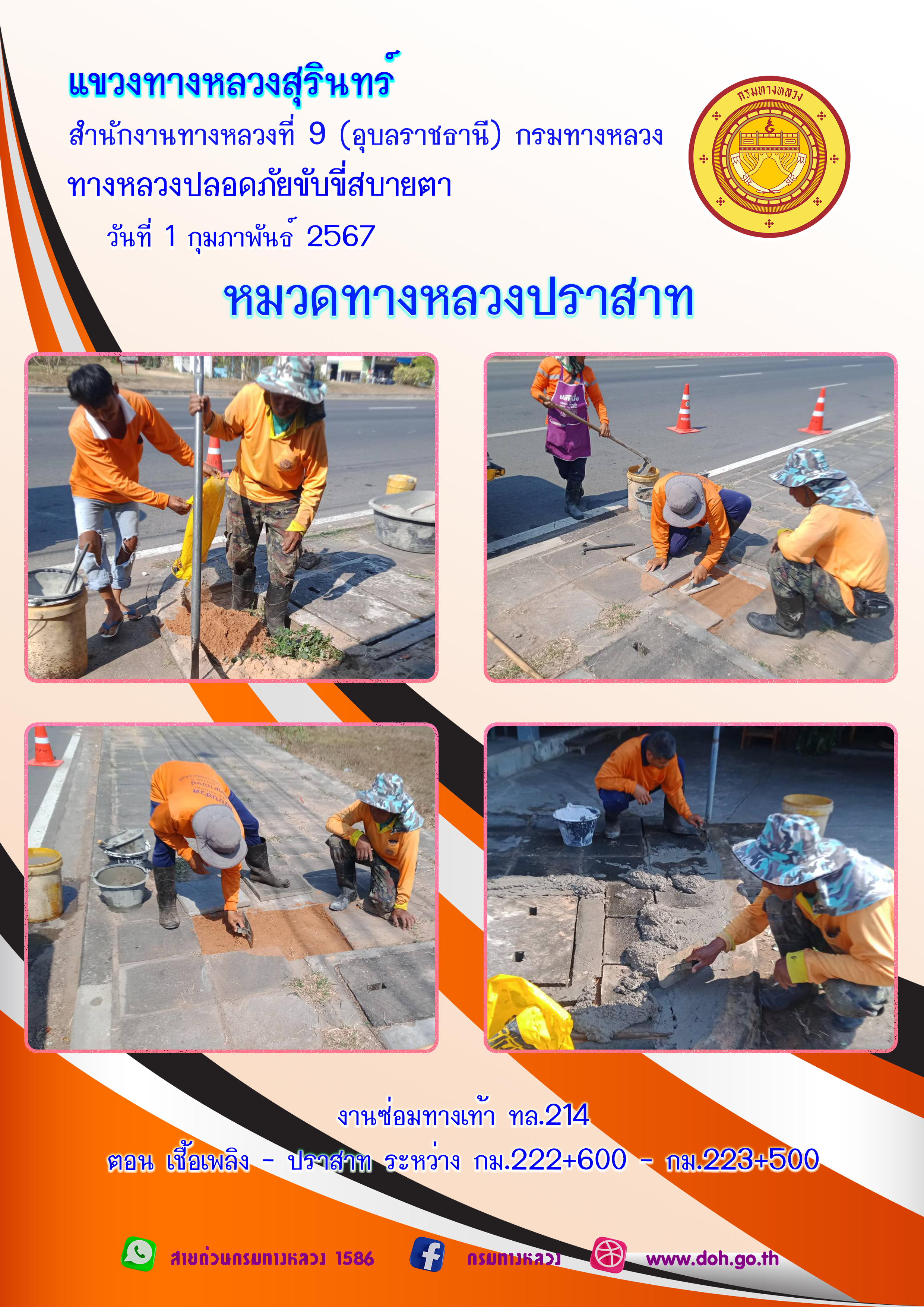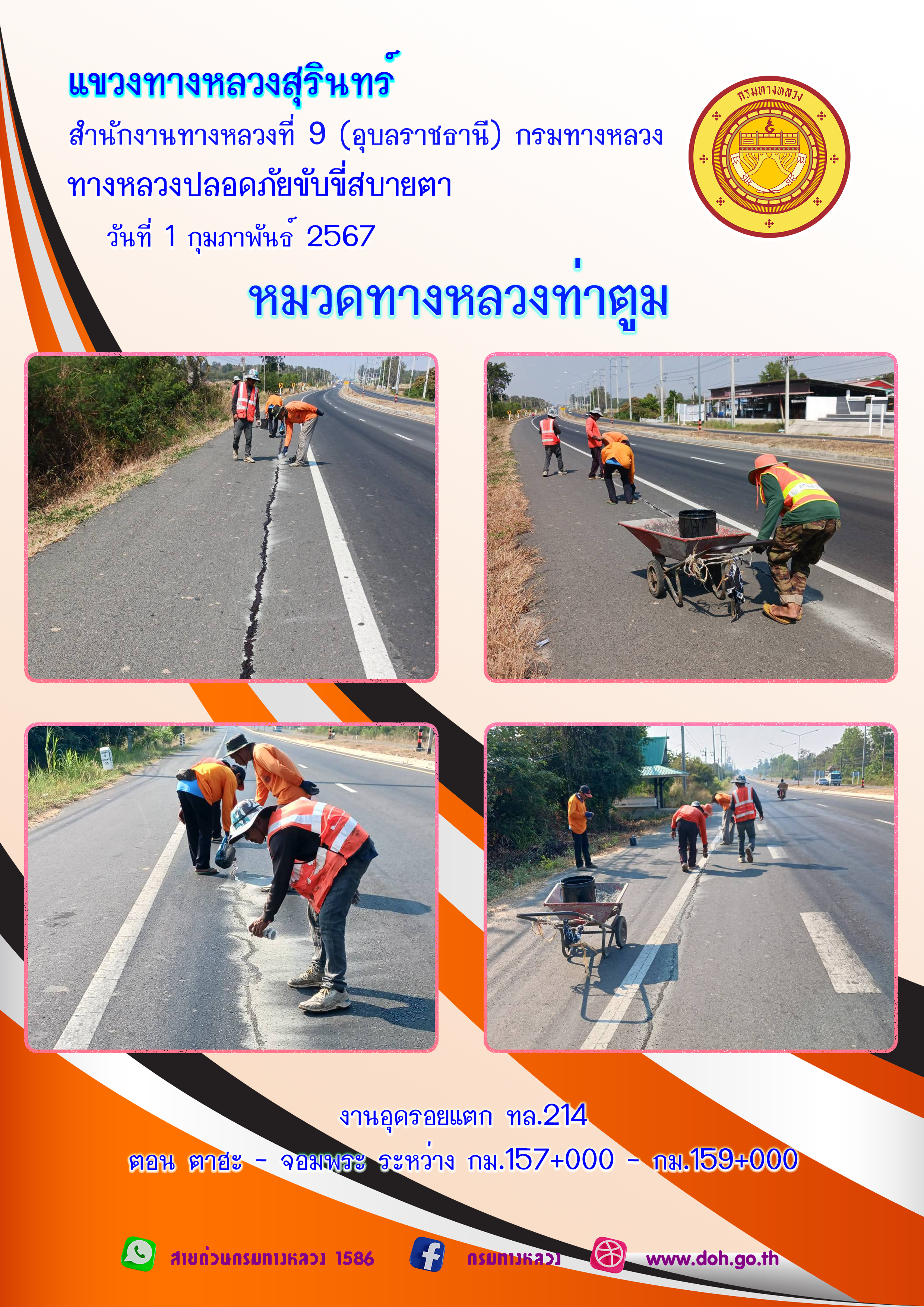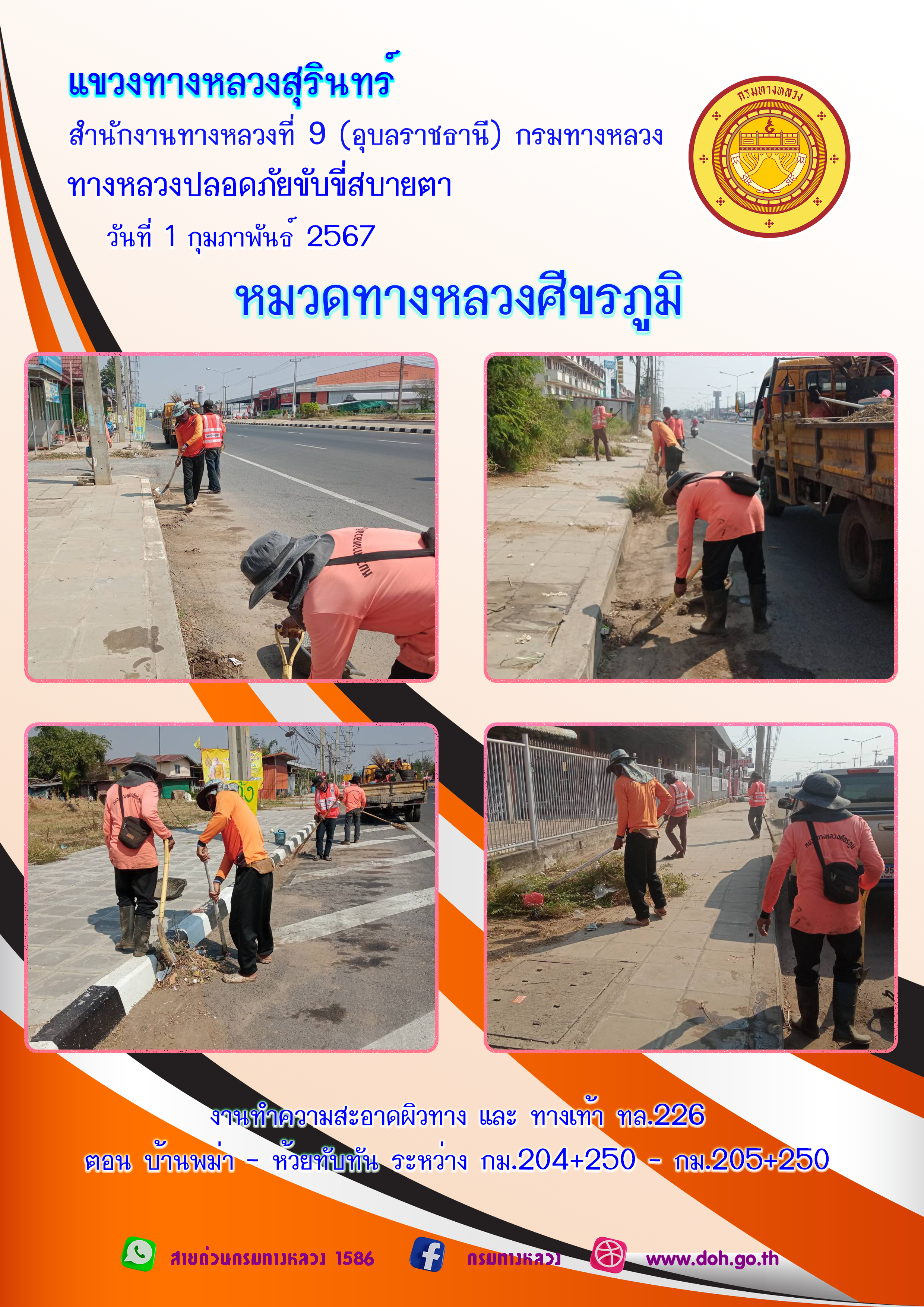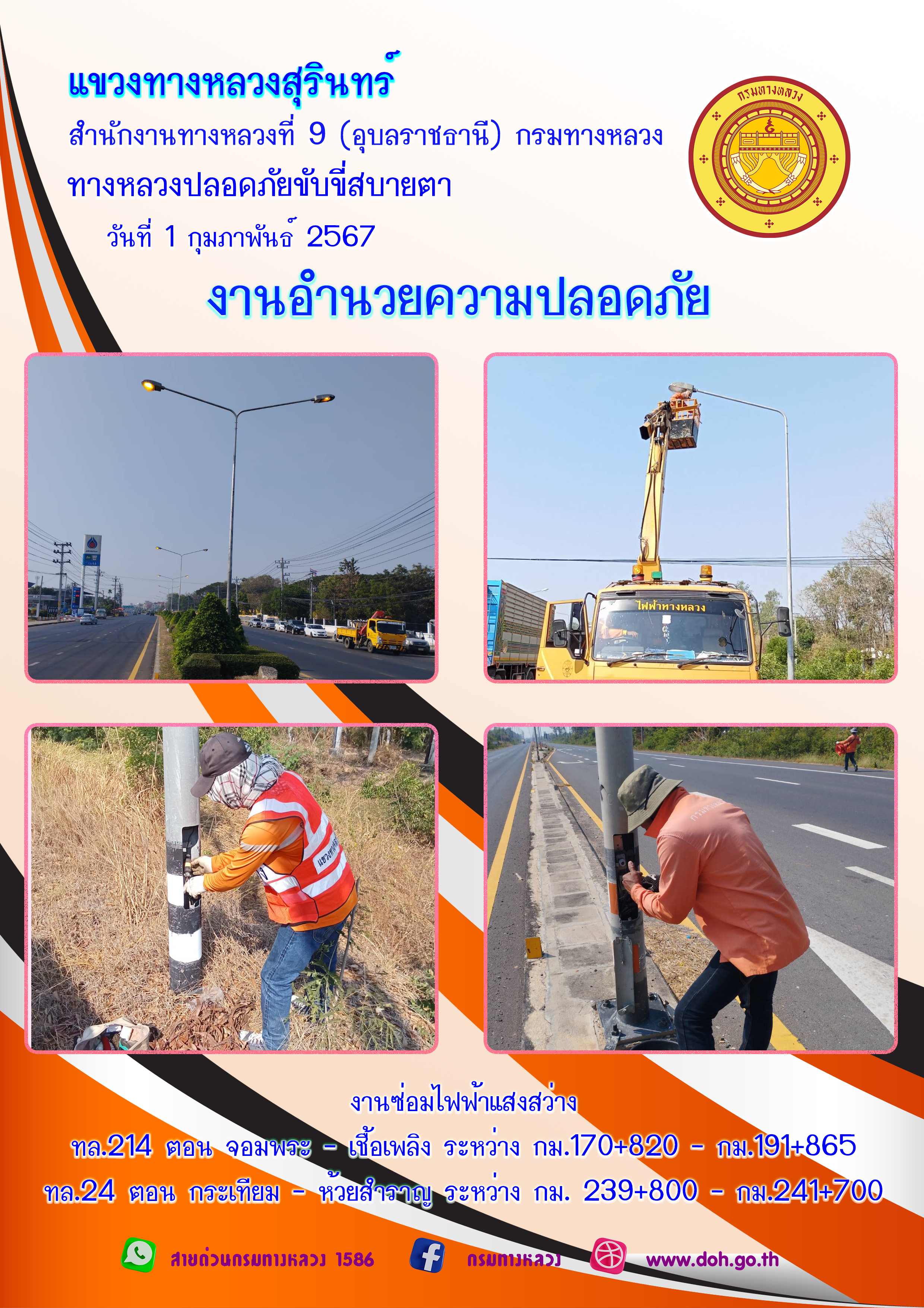 ข้อมูลภาพกิจกรรม : ทางหลวงปลอยภัย ขับขี่สบายตา 1 กุมภาพันธ์ 2567