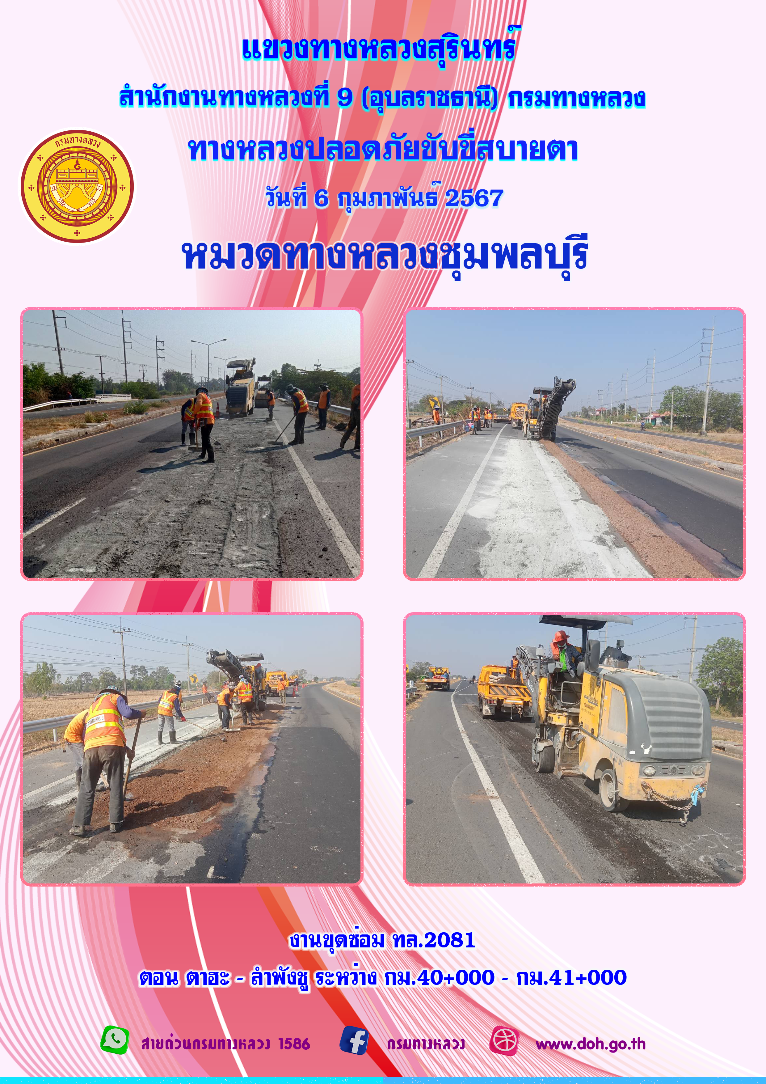 ข้อมูลภาพกิจกรรม : ทางหลวงปลอยภัย ขับขี่สบายตา 6 กุมภาพันธ์ 2567