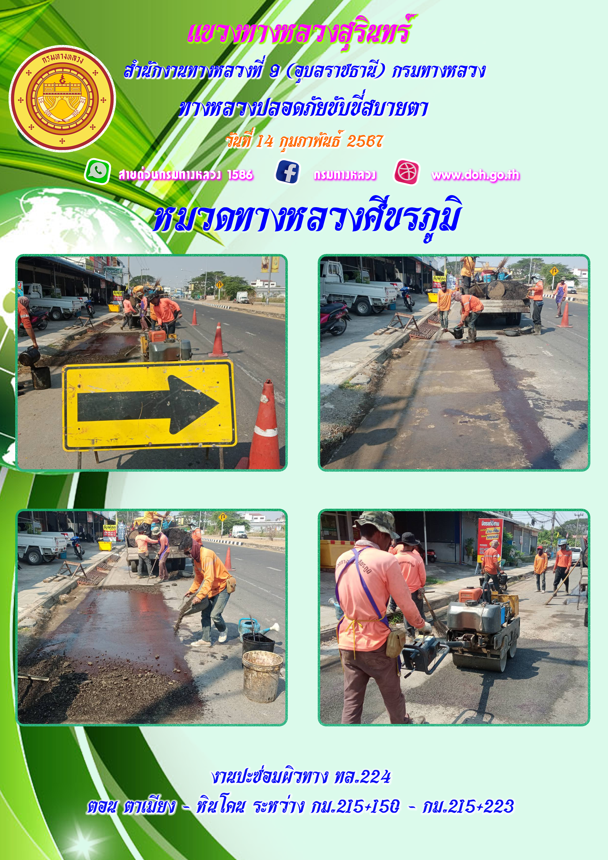 ทางหลวงปลอยภัย ขับขี่สบายตา 14 กุมภาพันธ์ 2567