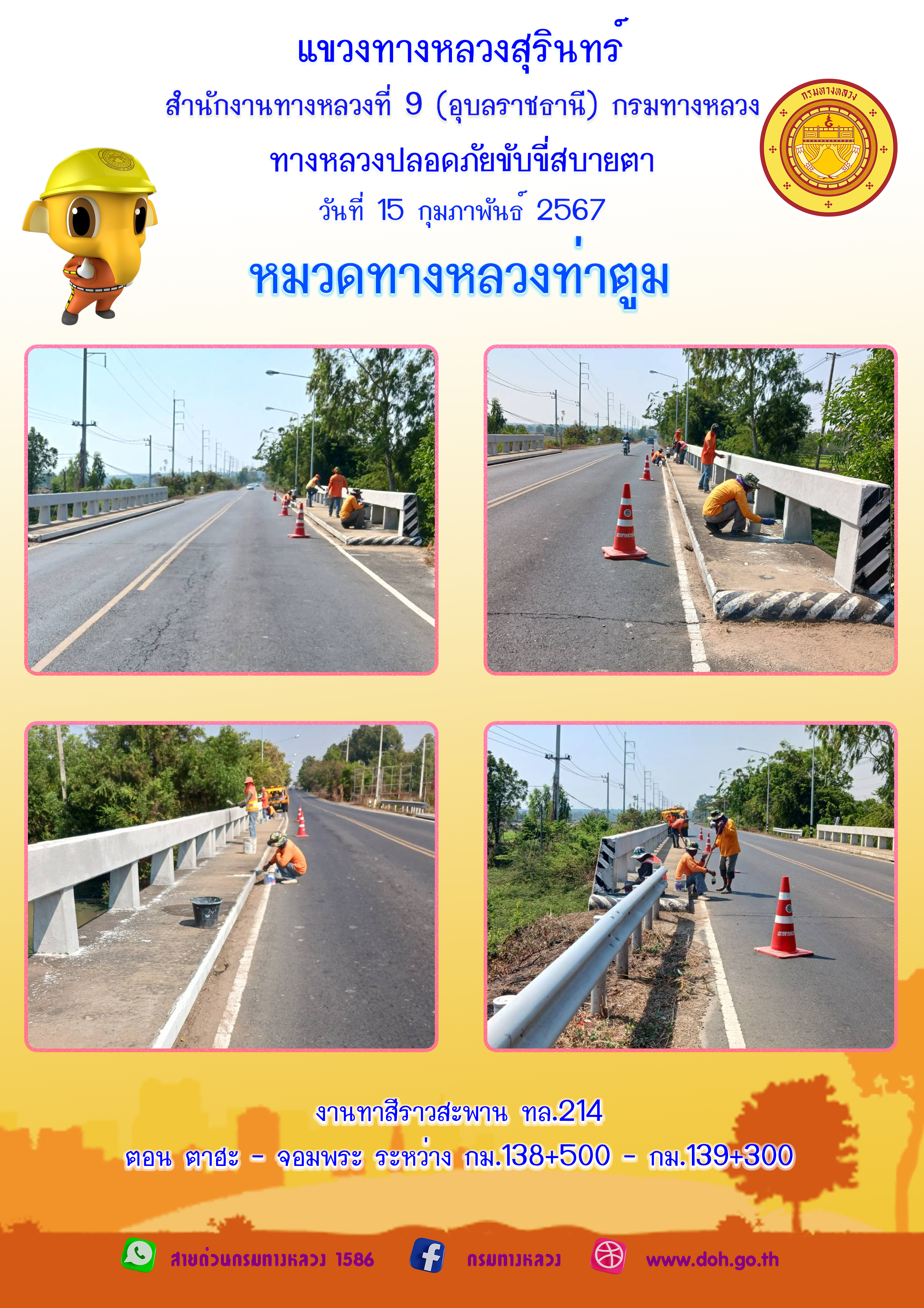 ข้อมูลภาพกิจกรรม : ทางหลวงปลอยภัย ขับขี่สบายตา 15 กุมภาพันธ์ 2567