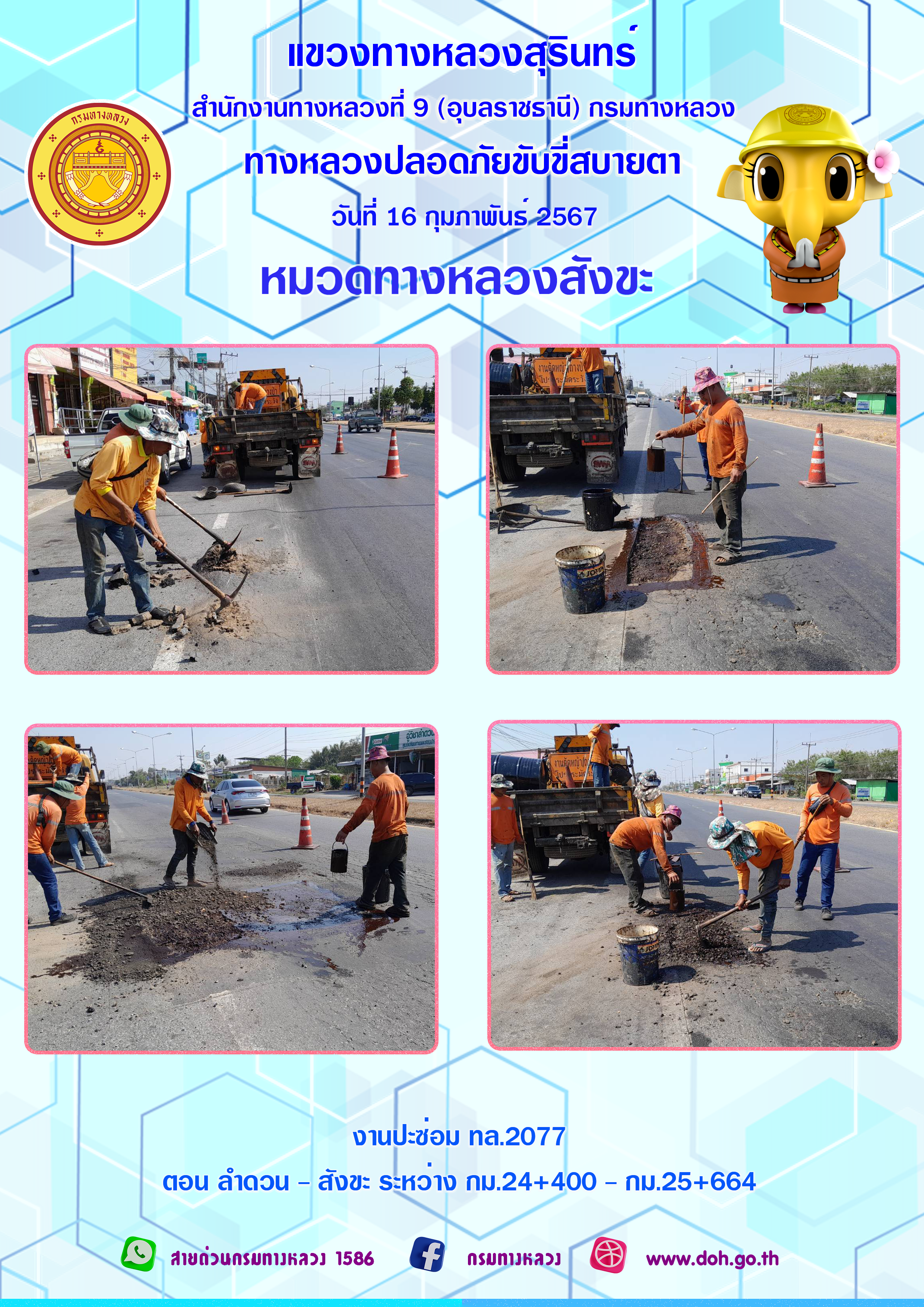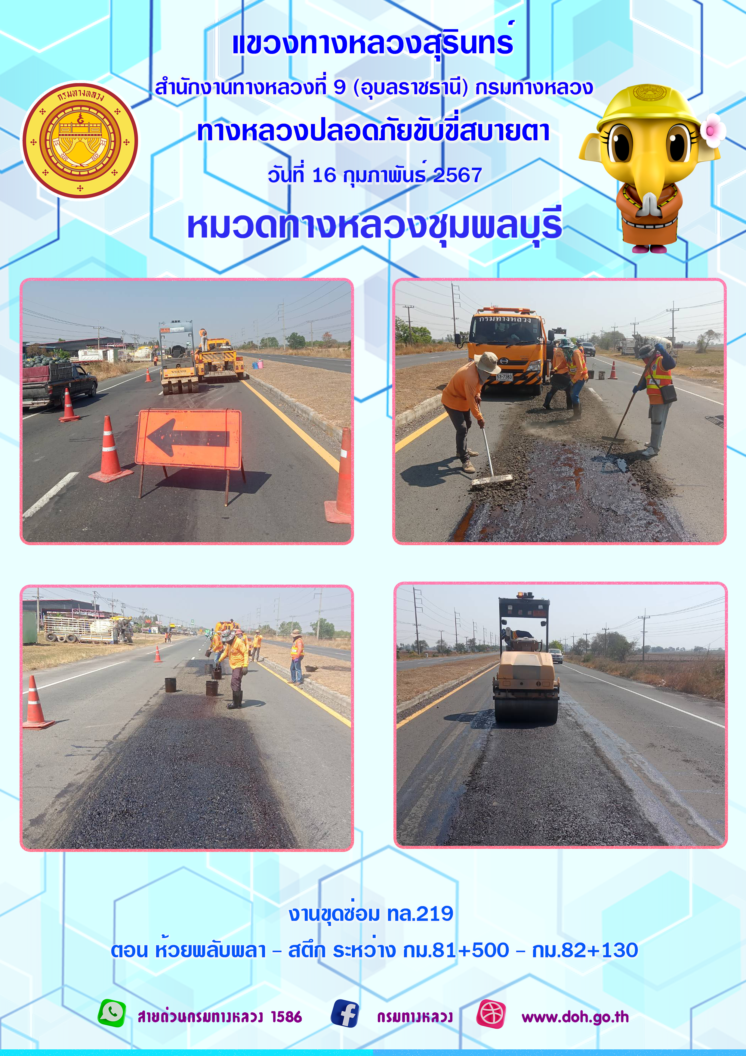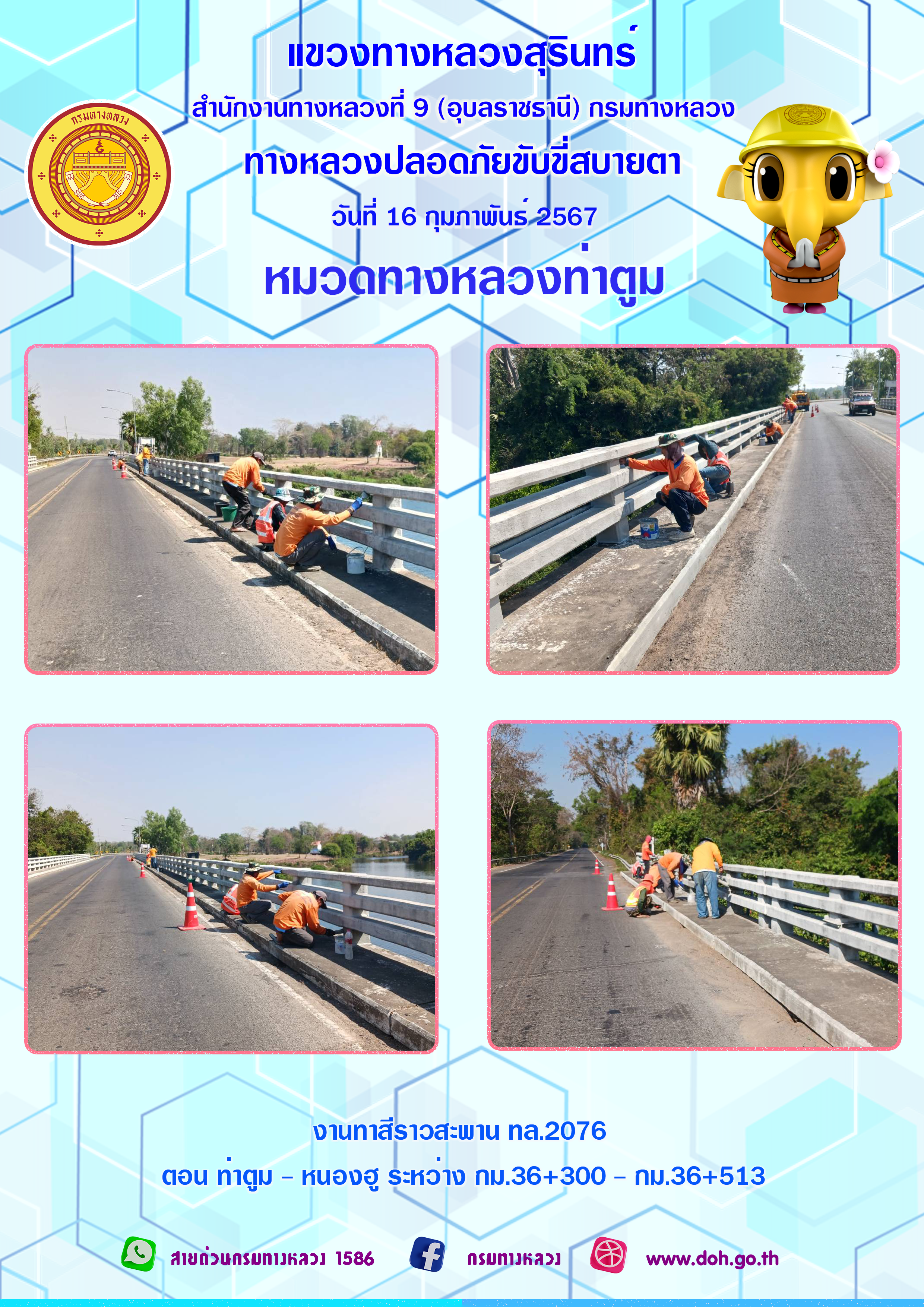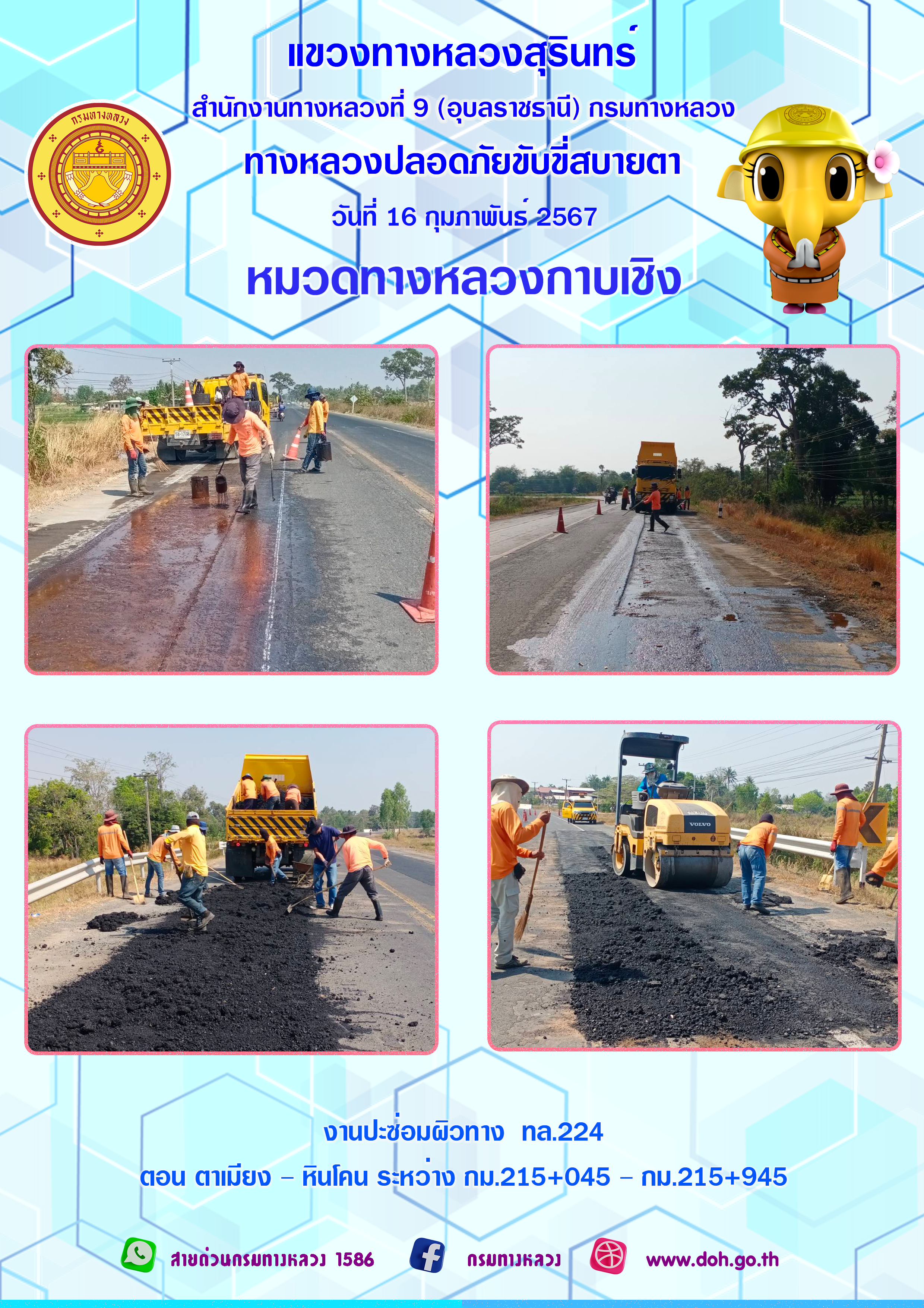 ข้อมูลภาพกิจกรรม : ทางหลวงปลอยภัย ขับขี่สบายตา 16 กุมภาพันธ์ 2567