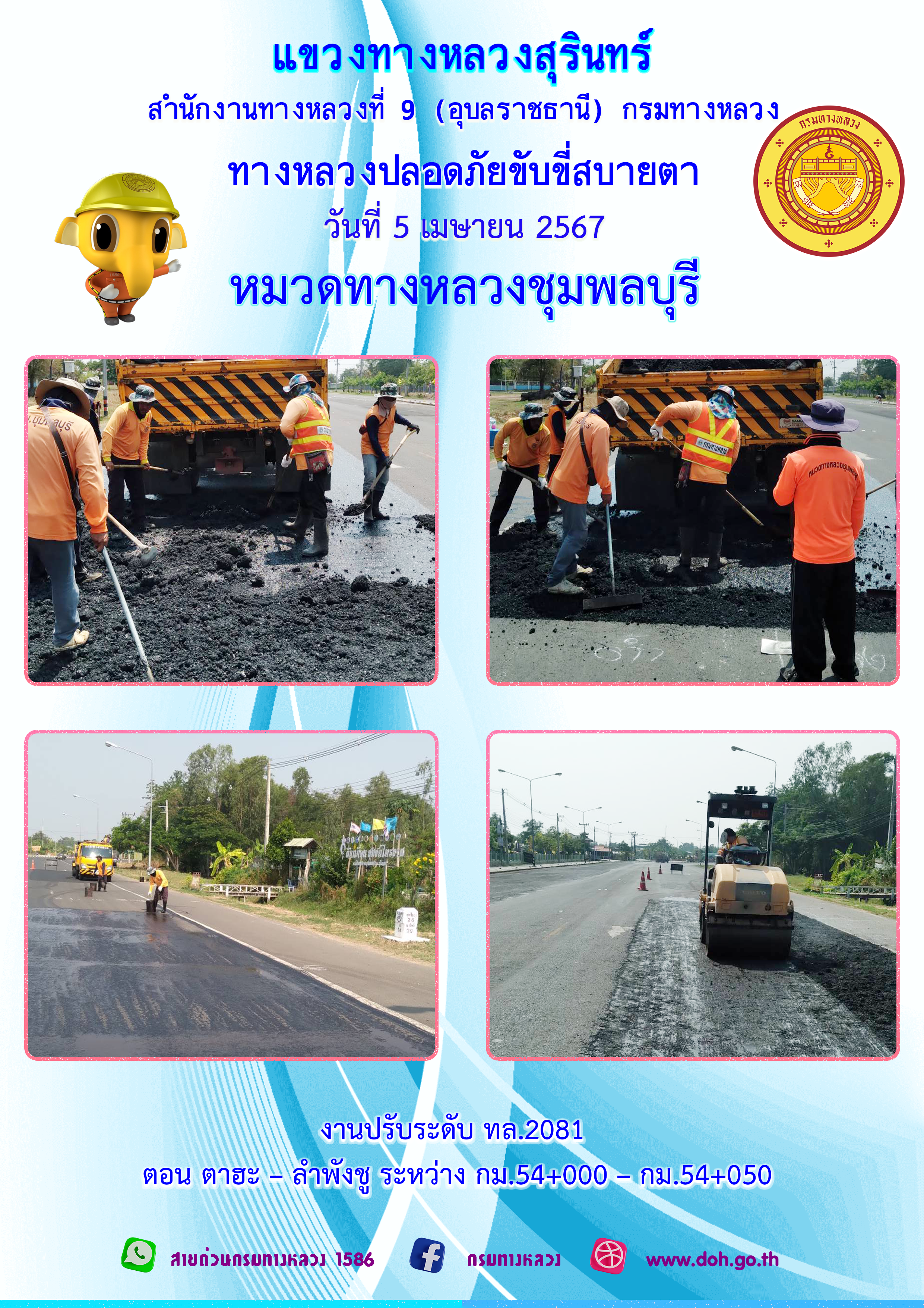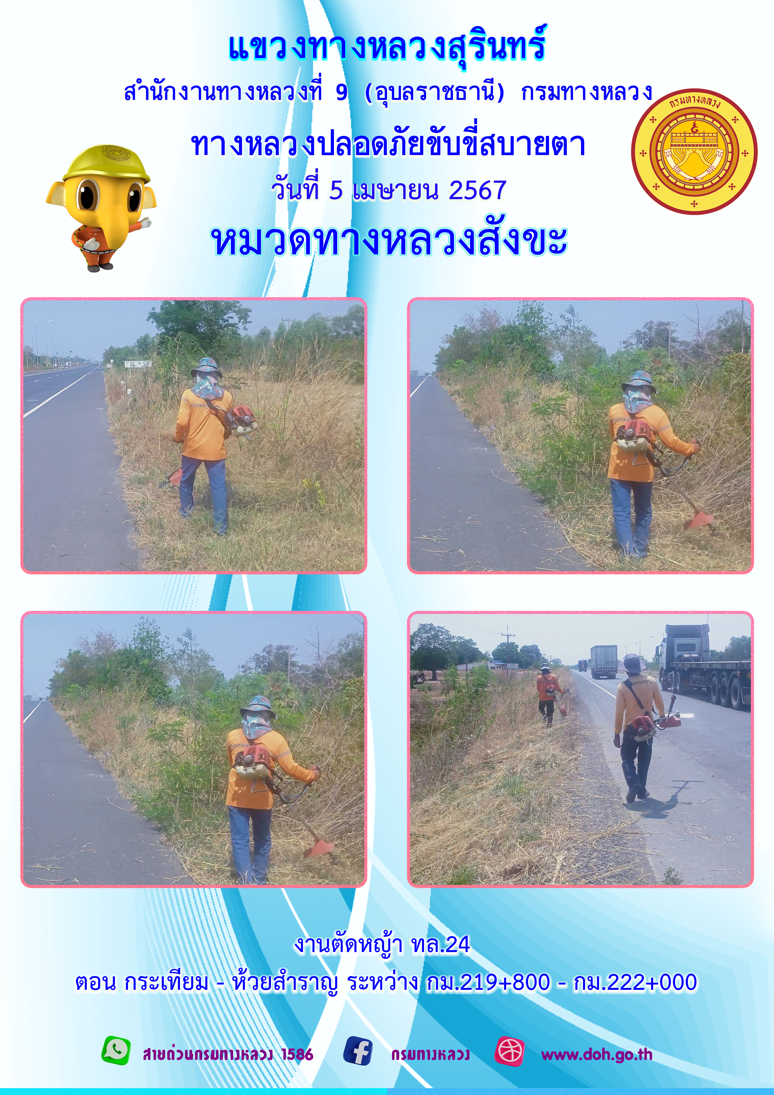 ข้อมูลภาพกิจกรรม : ทางหลวงปลอยภัย ขับขี่สบายตา 5 เมษายน 2567