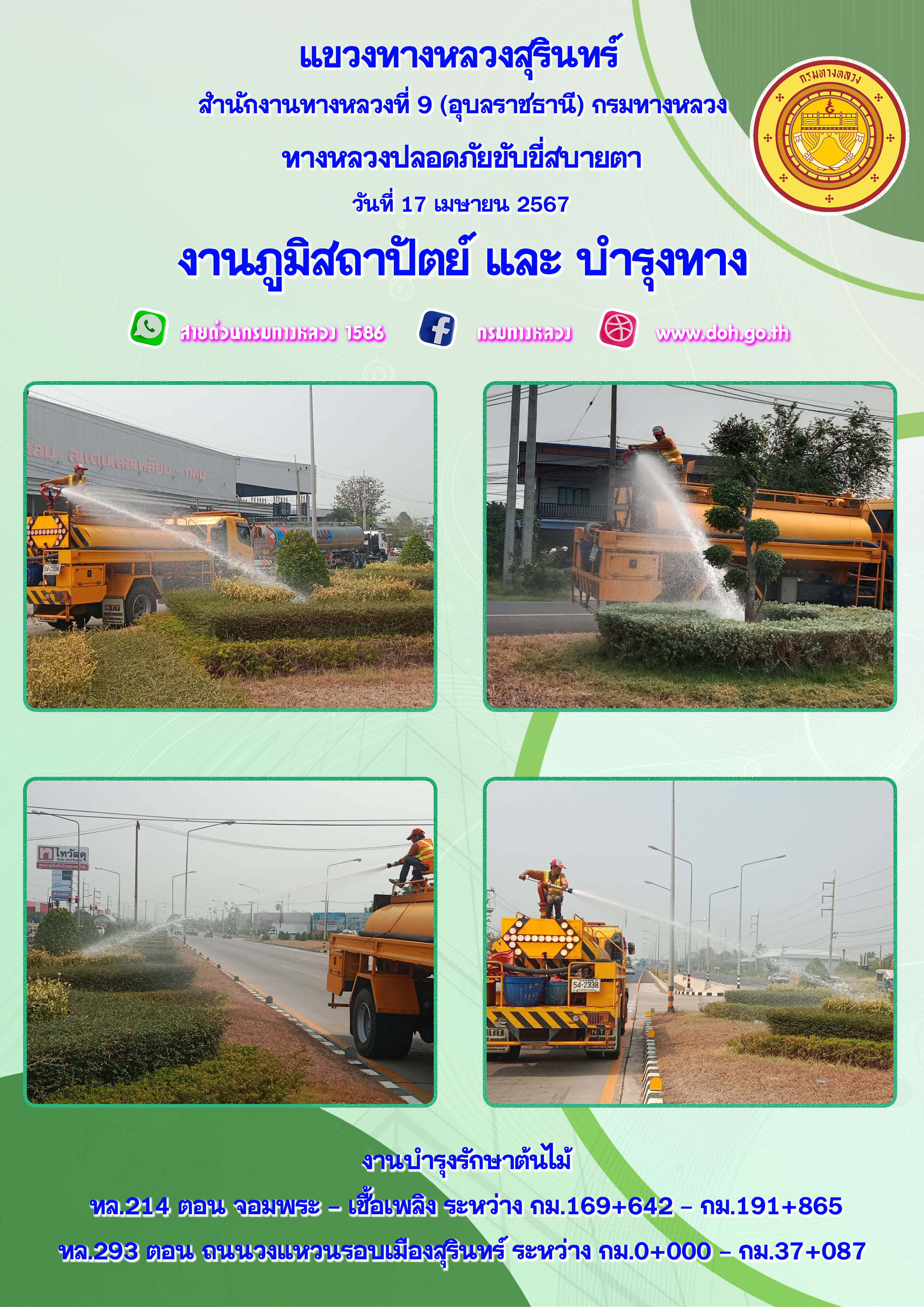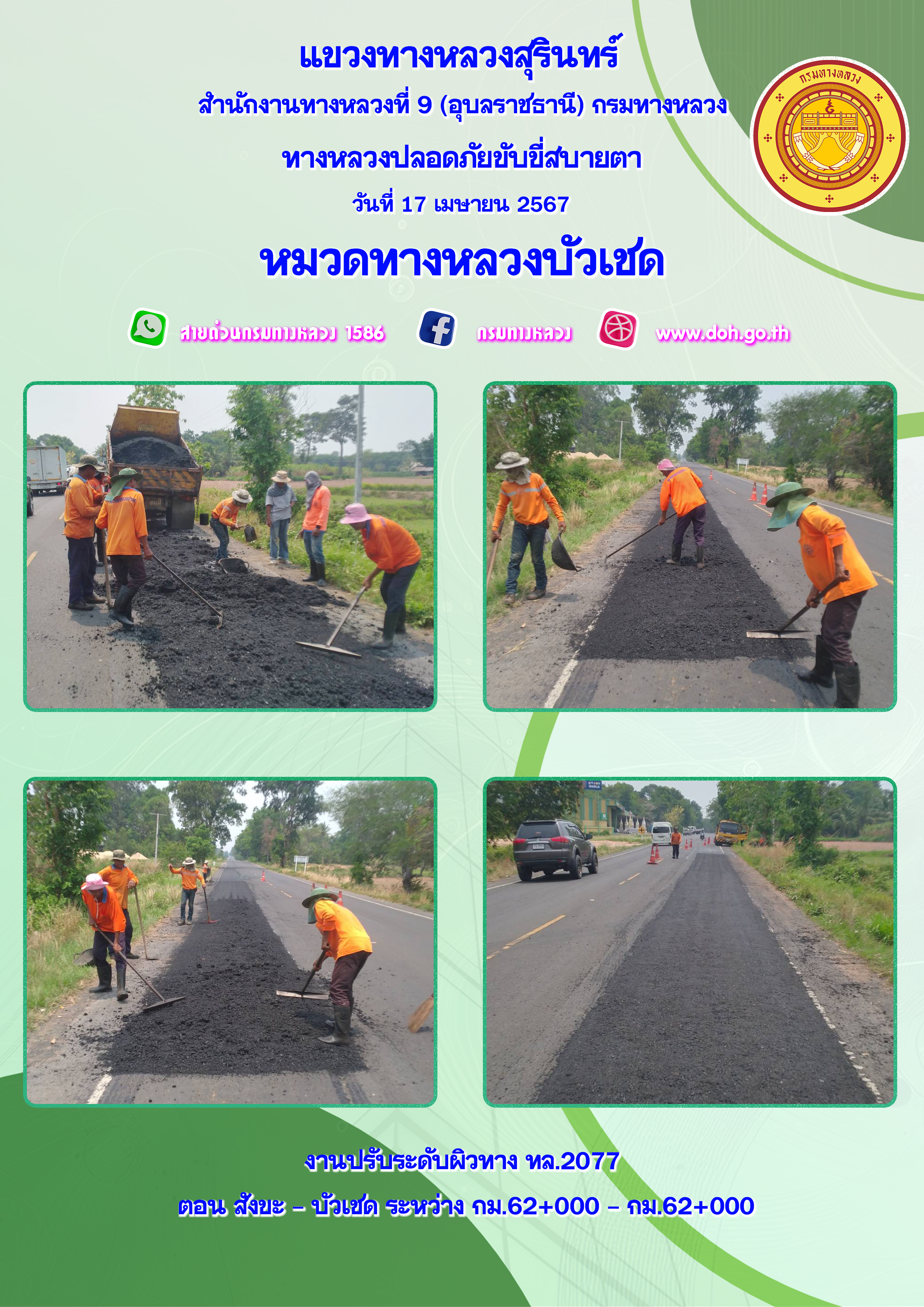 ข้อมูลภาพกิจกรรม : ทางหลวงปลอยภัย ขับขี่สบายตา 17 เมษายน 2567