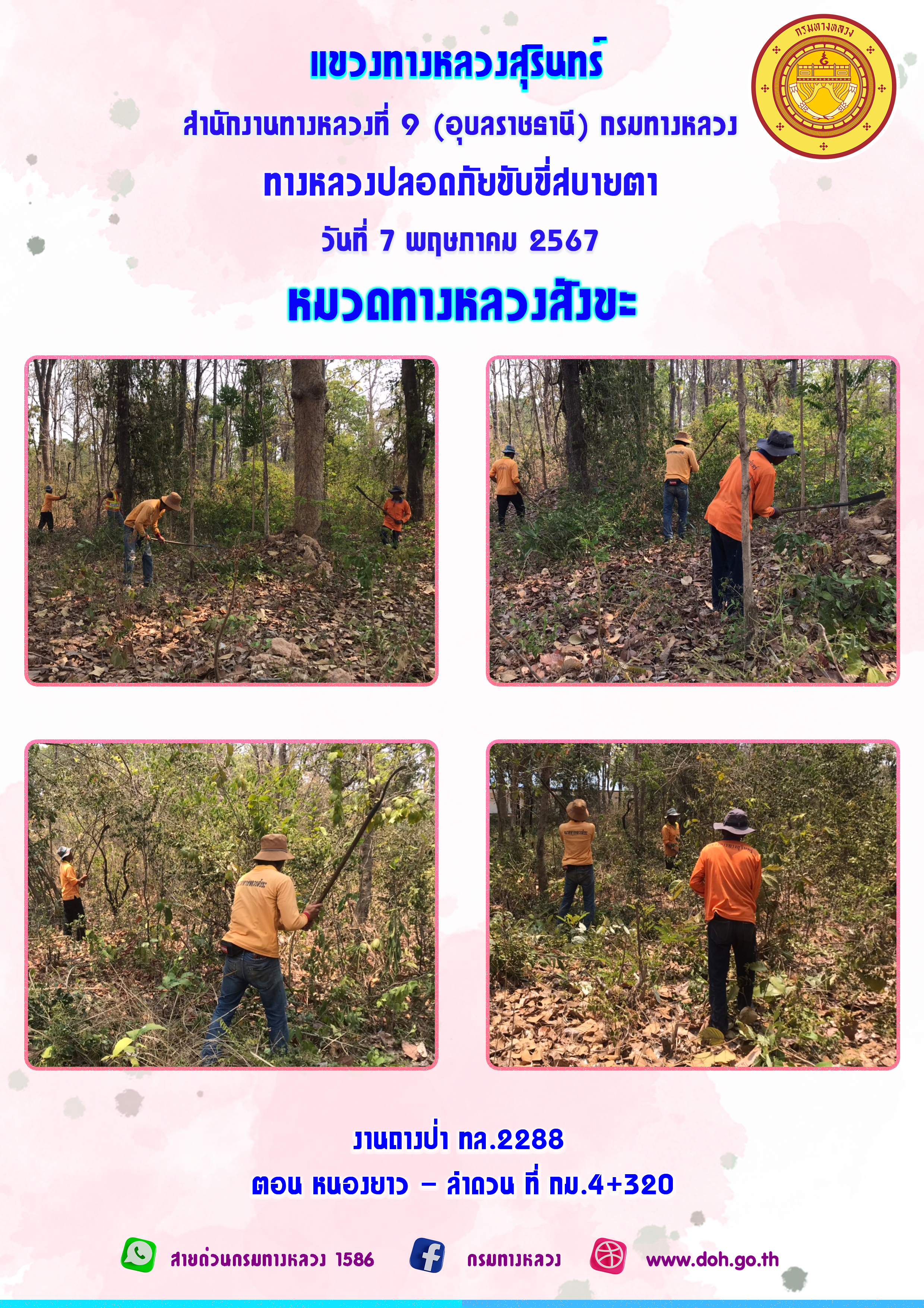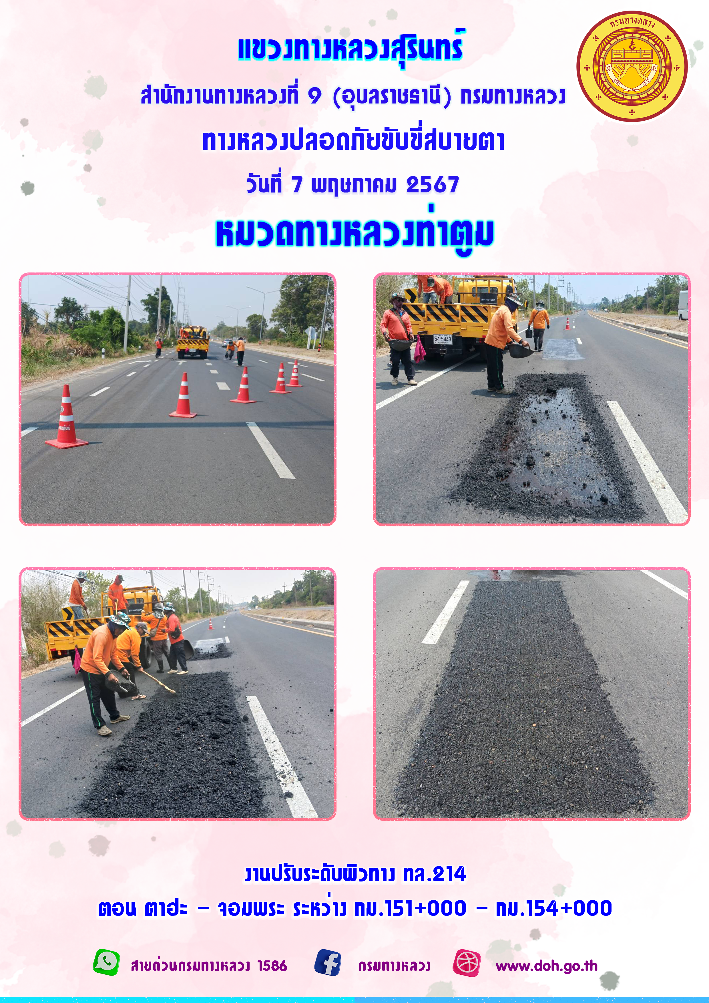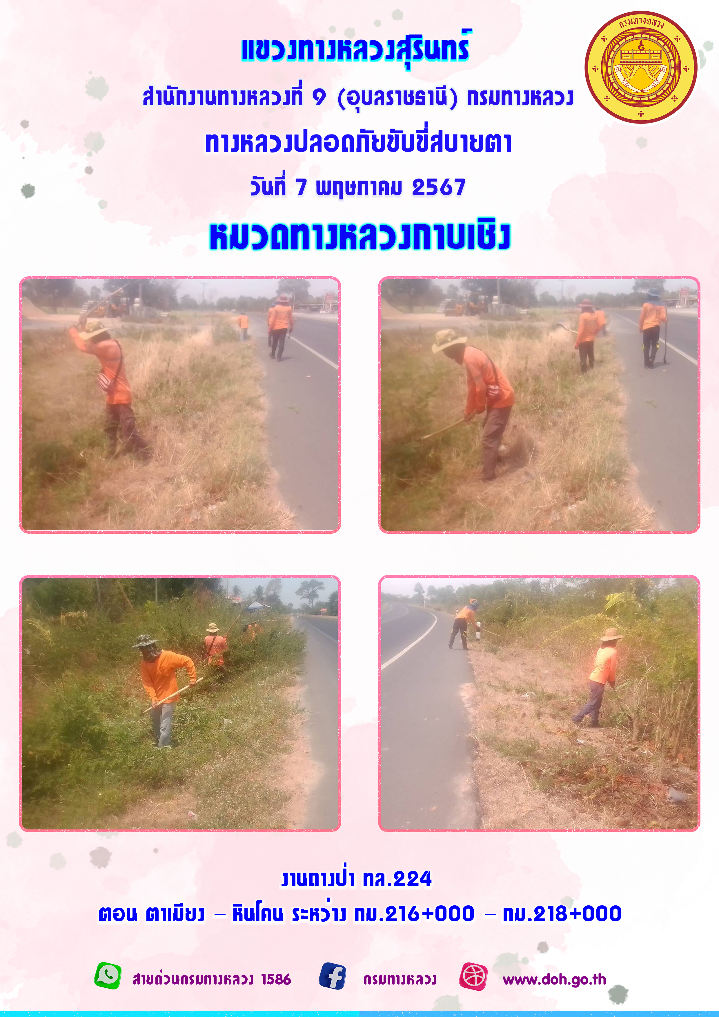 ข้อมูลภาพกิจกรรม : ทางหลวงปลอยภัย ขับขี่สบายตา 7 พฤษภาคม 2567