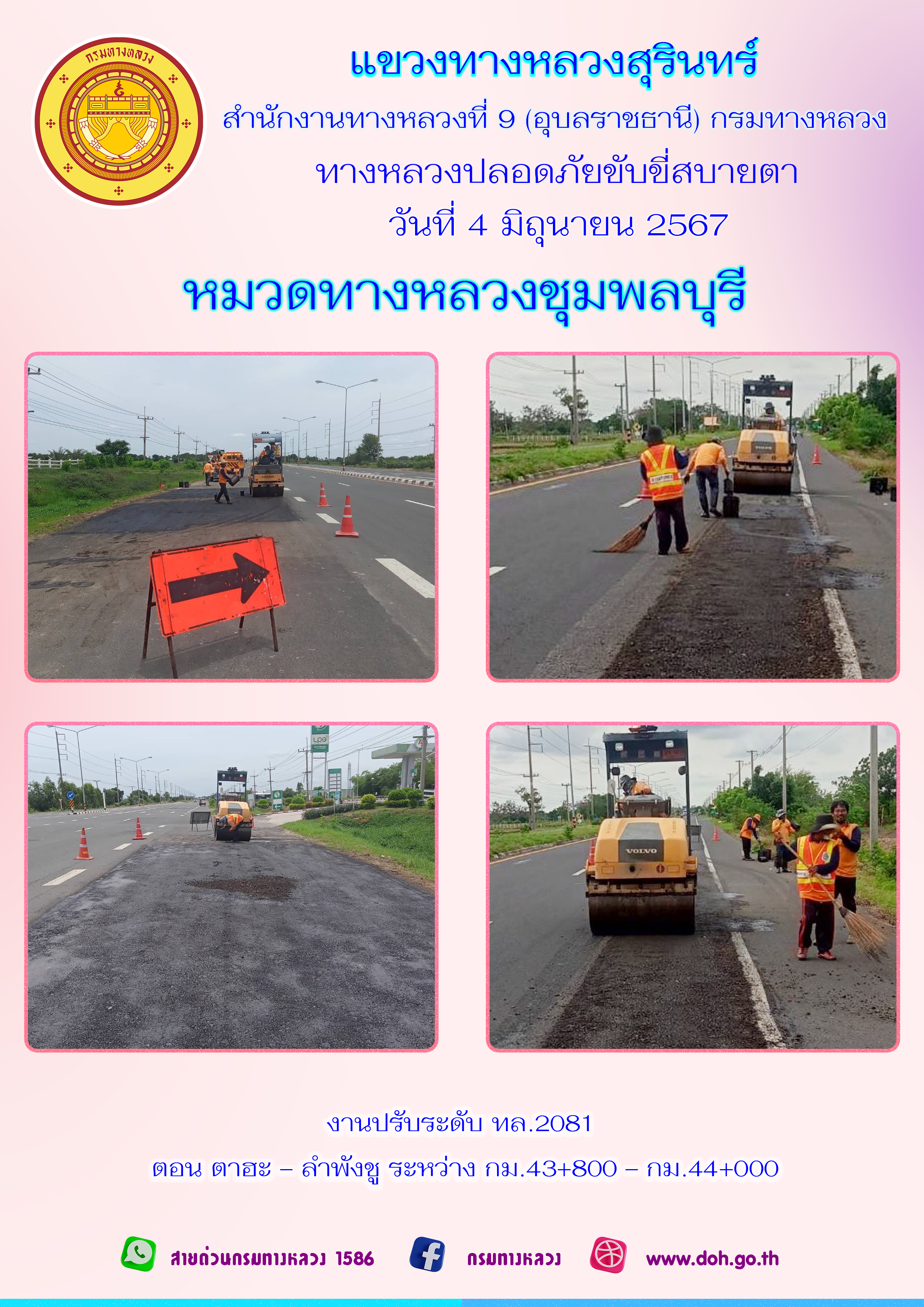 ข้อมูลภาพกิจกรรม : ทางหลวงปลอยภัย ขับขี่สบายตา 4 มิถุนายน 2567