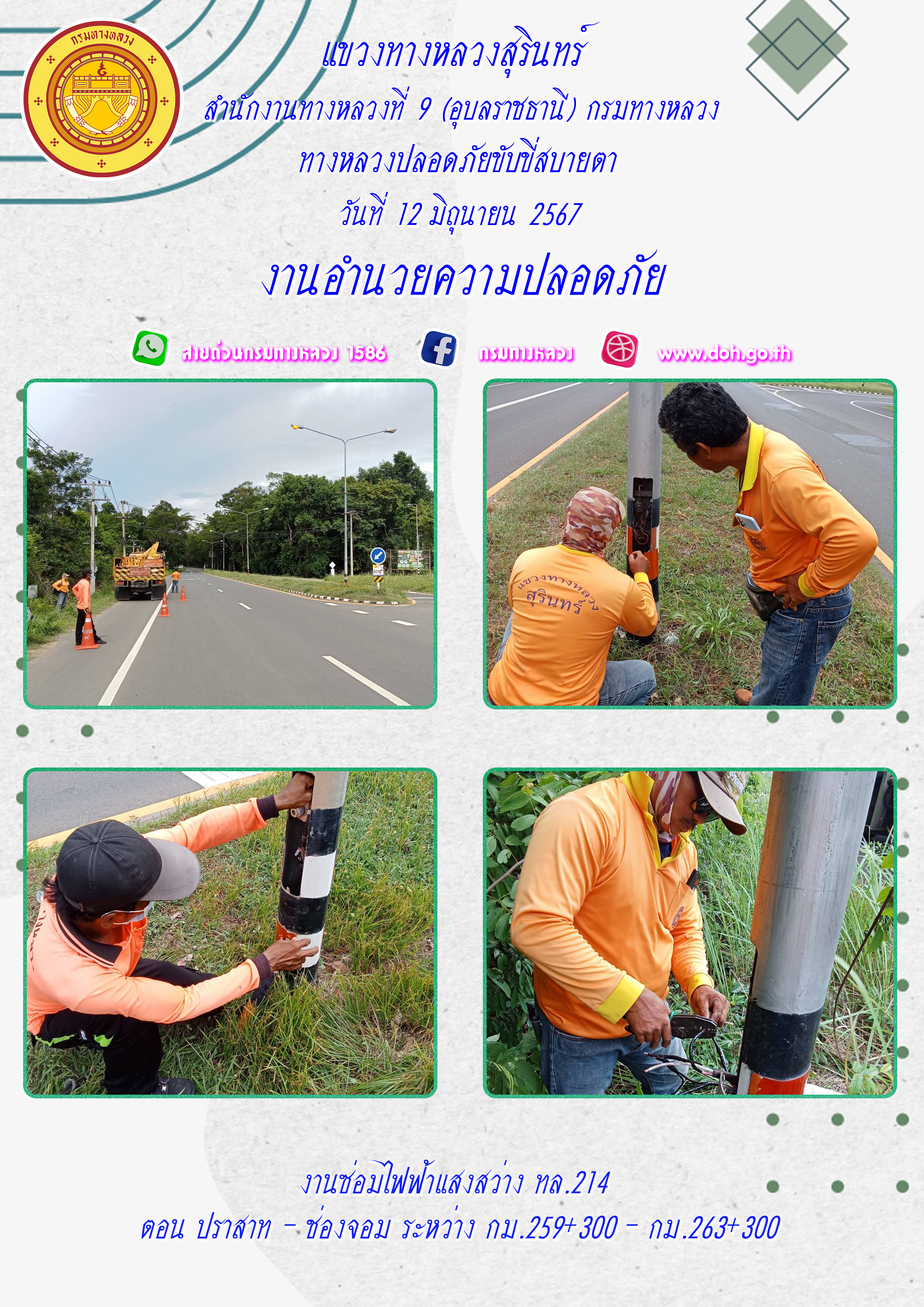 ข้อมูลภาพกิจกรรม : ทางหลวงปลอยภัย ขับขี่สบายตา 12 มิถุนายน 2567