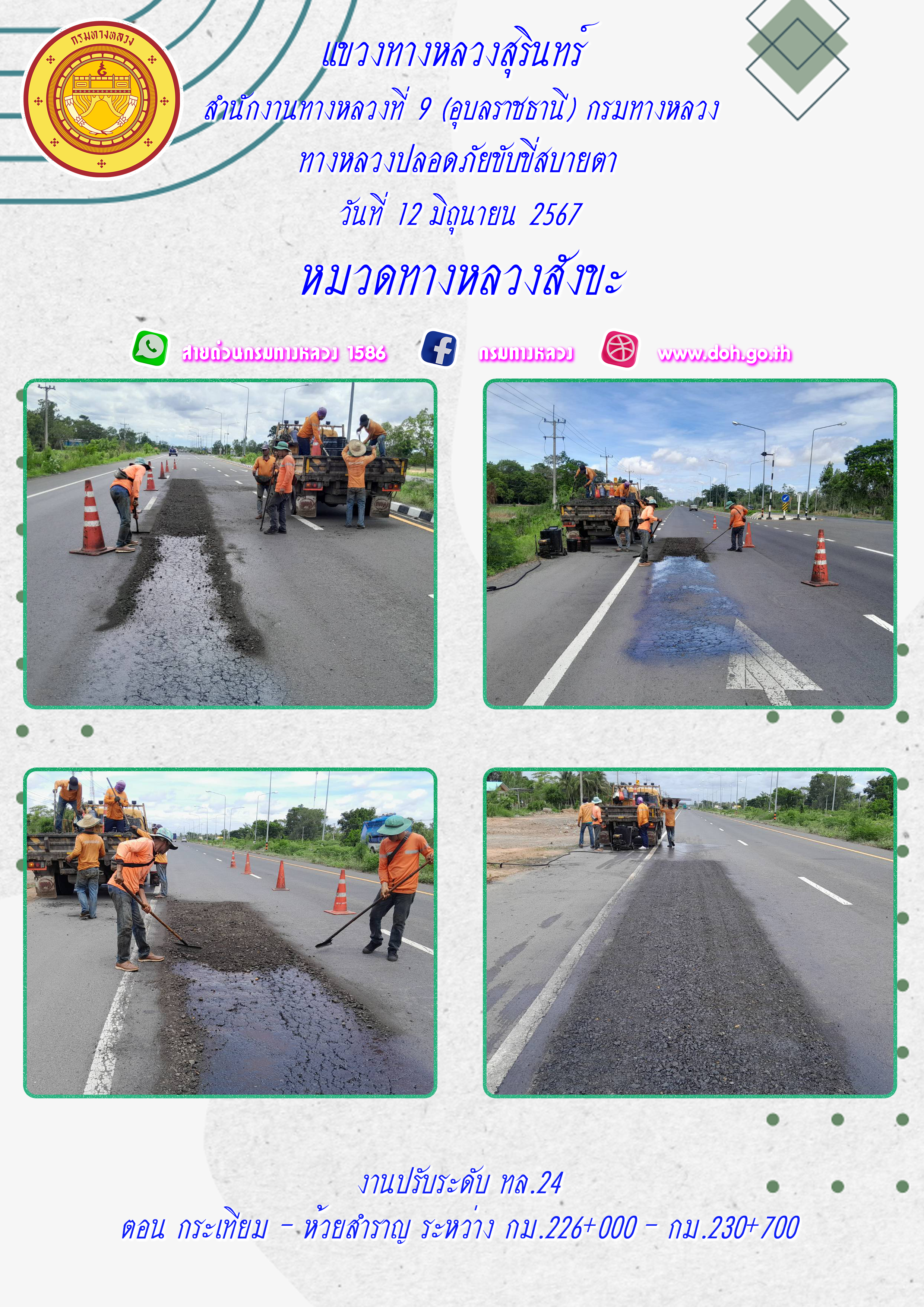 ทางหลวงปลอยภัย ขับขี่สบายตา 12 มิถุนายน 2567