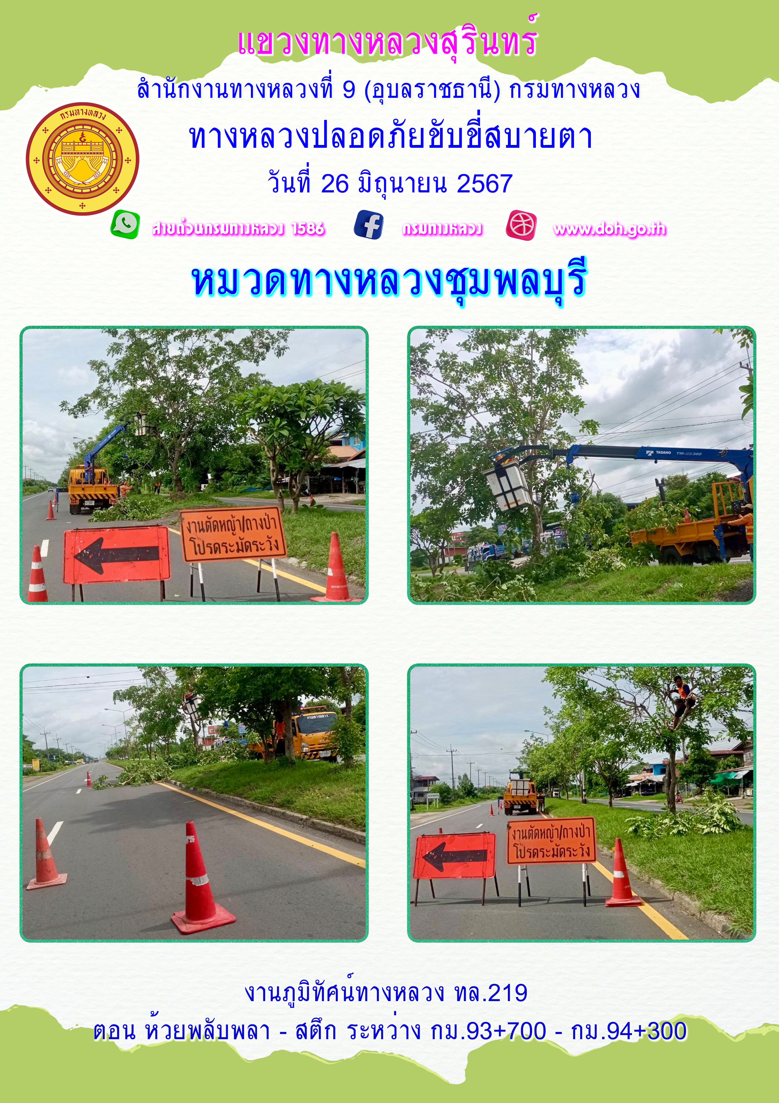 ข้อมูลภาพกิจกรรม : ทางหลวงปลอยภัย ขับขี่สบายตา 26 มิถุนายน 2567