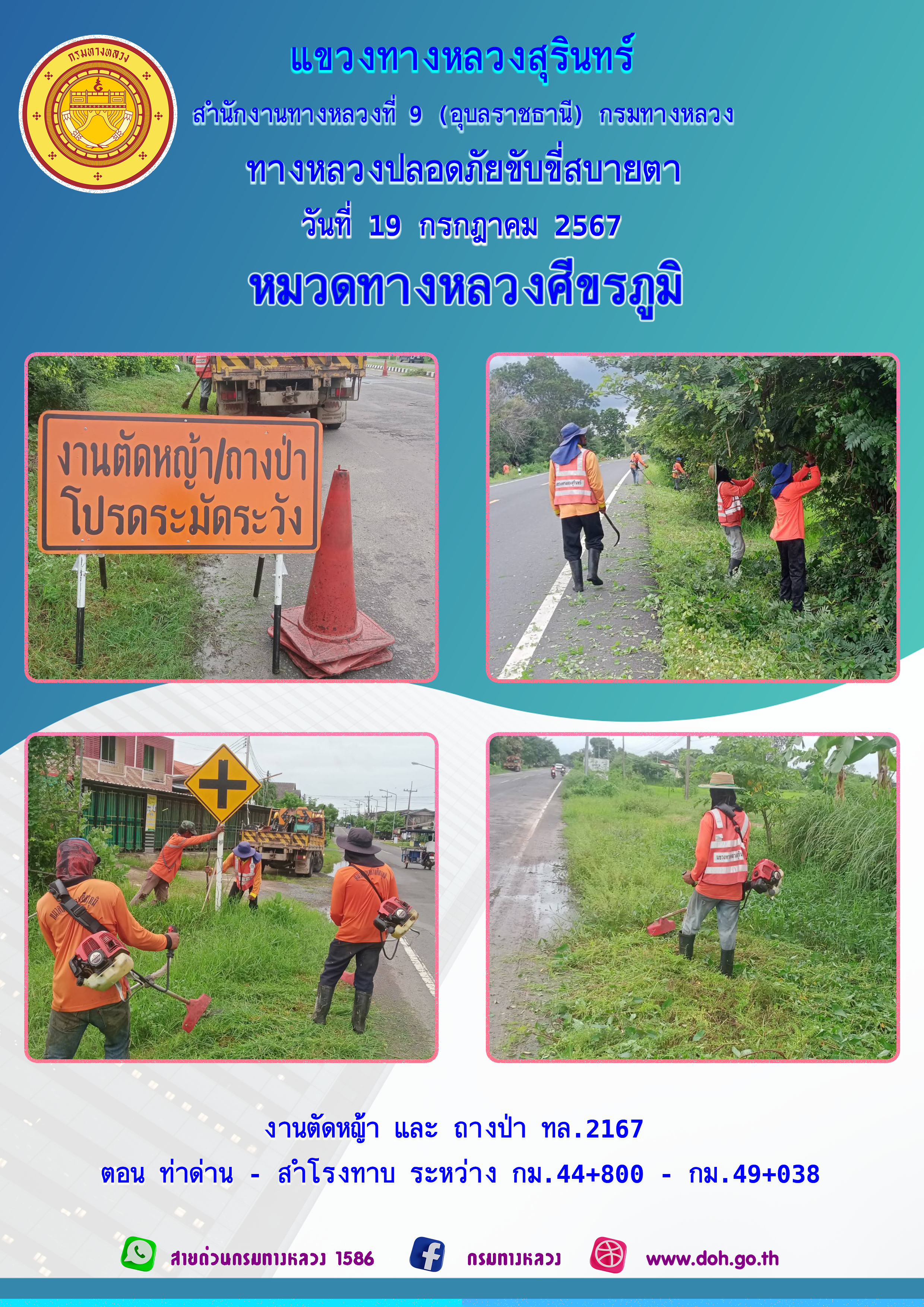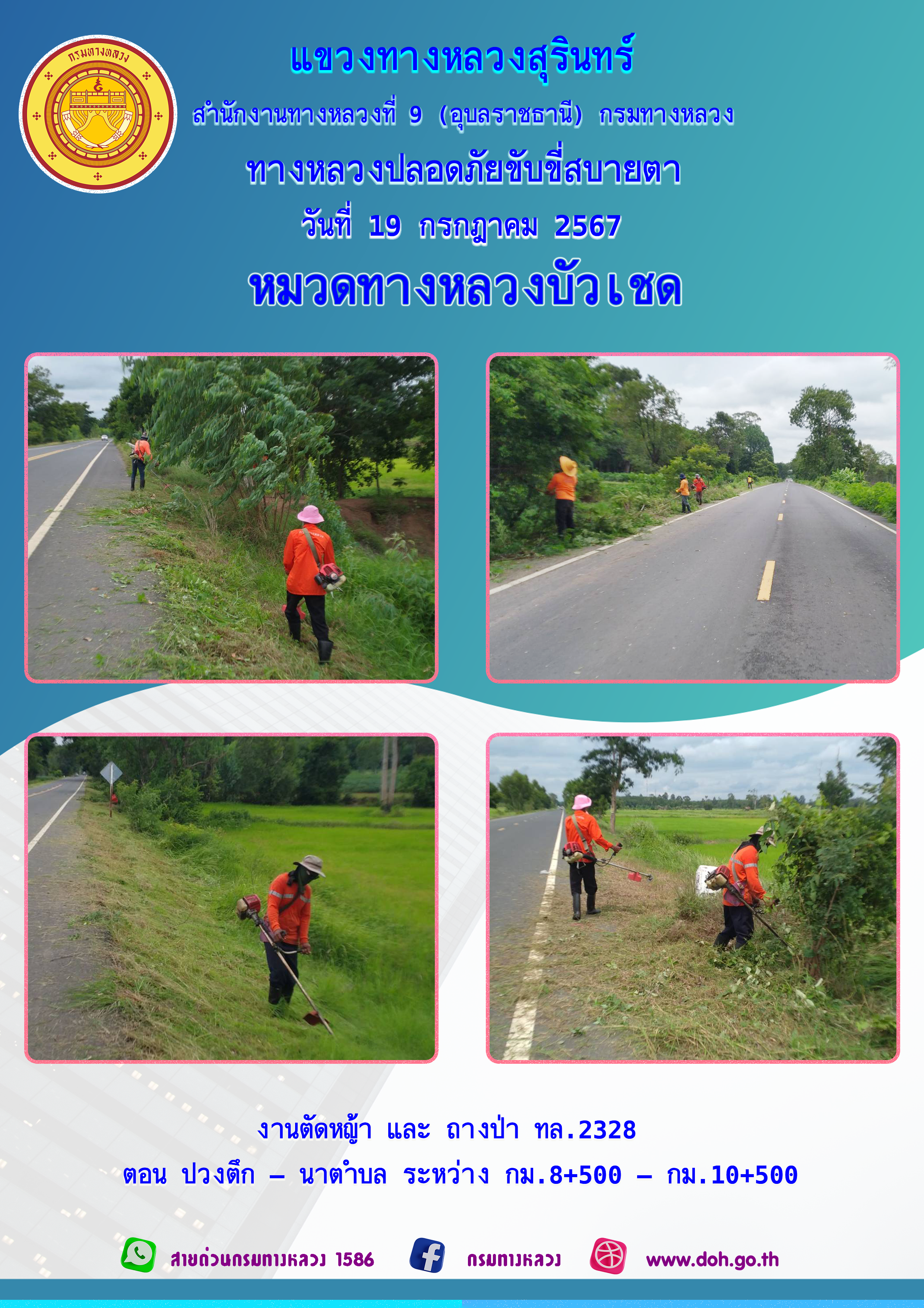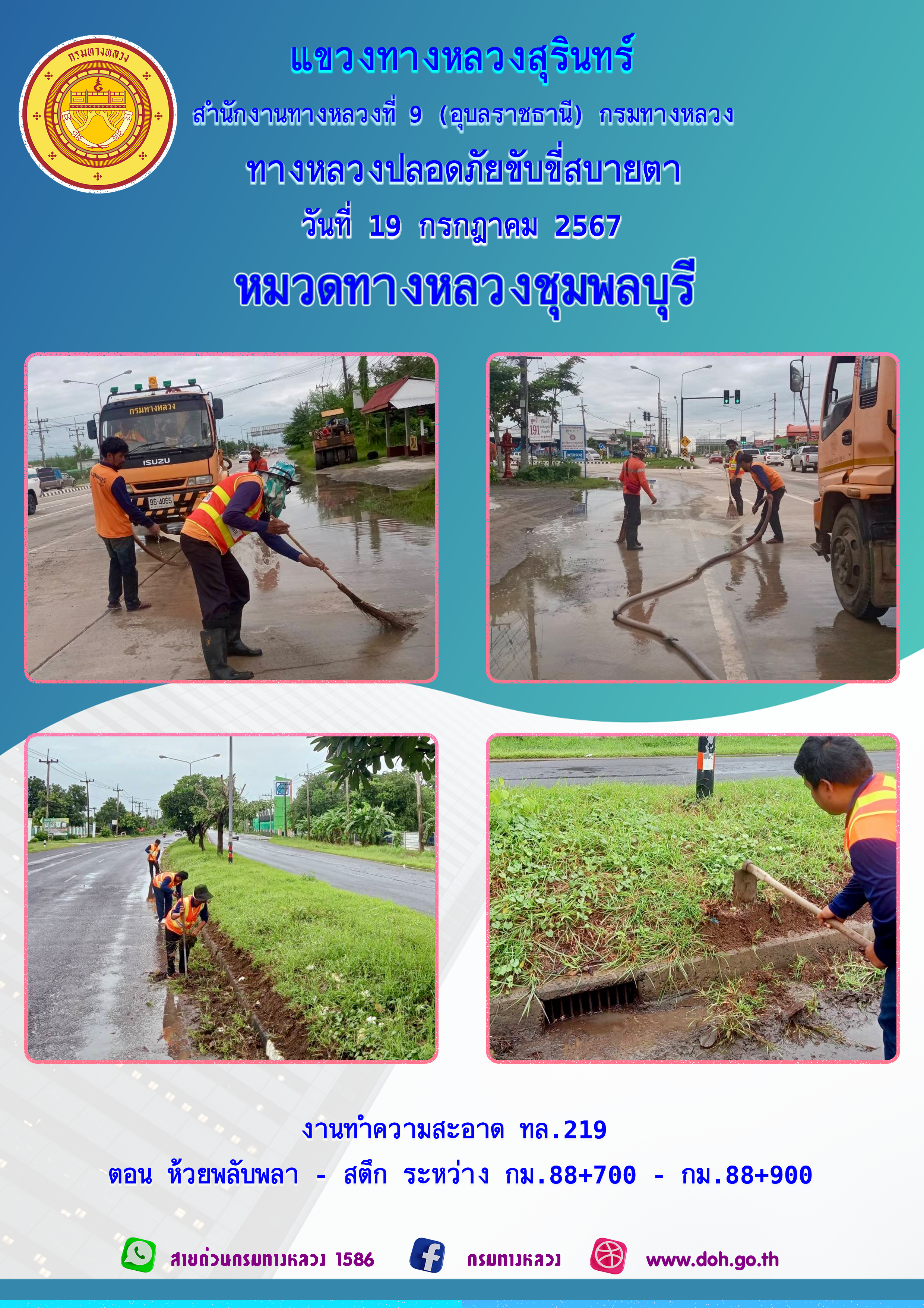 ข้อมูลภาพกิจกรรม : ทางหลวงปลอยภัย ขับขี่สบายตา 19 กรกฎาคม 2567