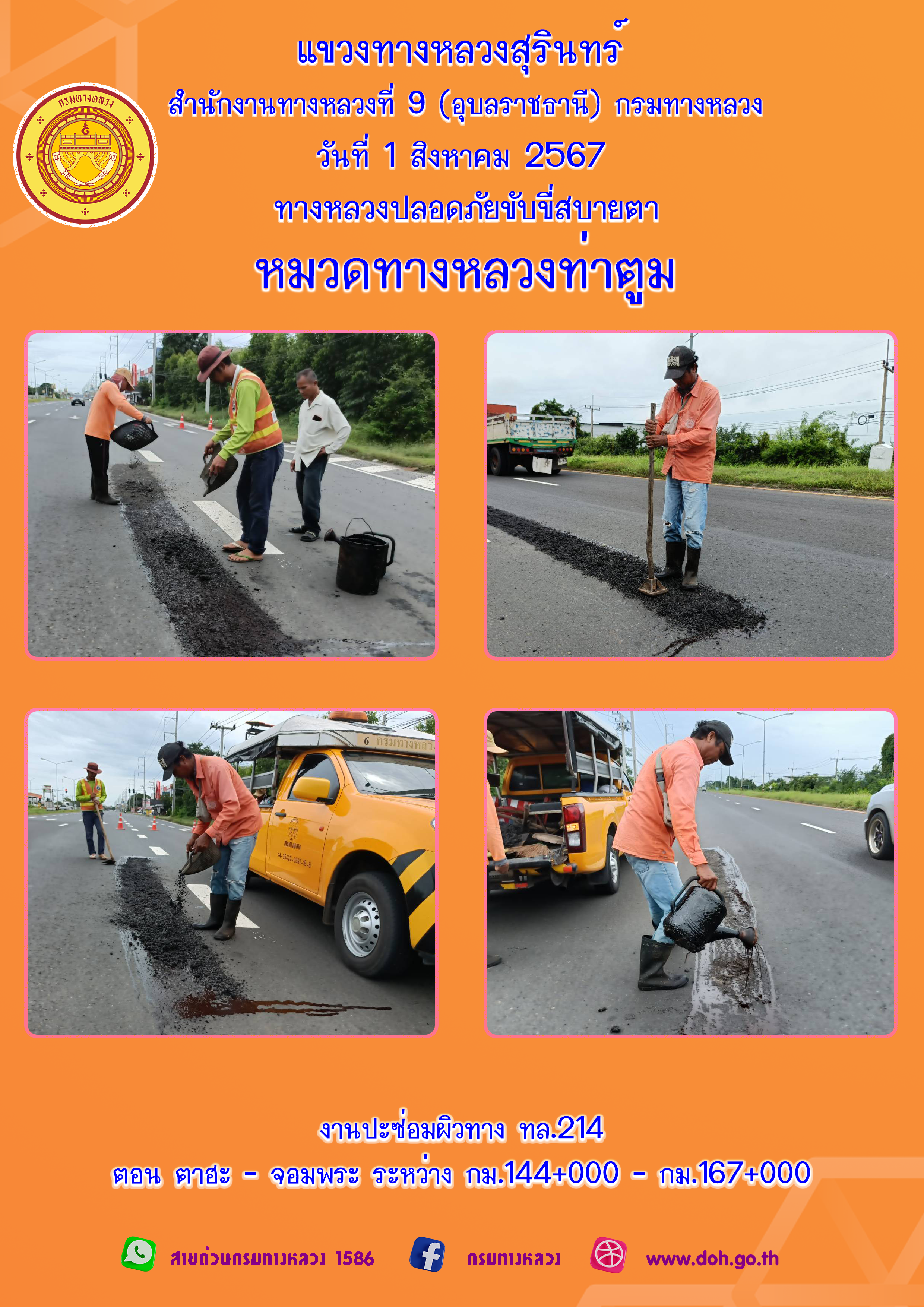 ข้อมูลภาพกิจกรรม : ทางหลวงปลอยภัย ขับขี่สบายตา 1 สิงหาคม 2567