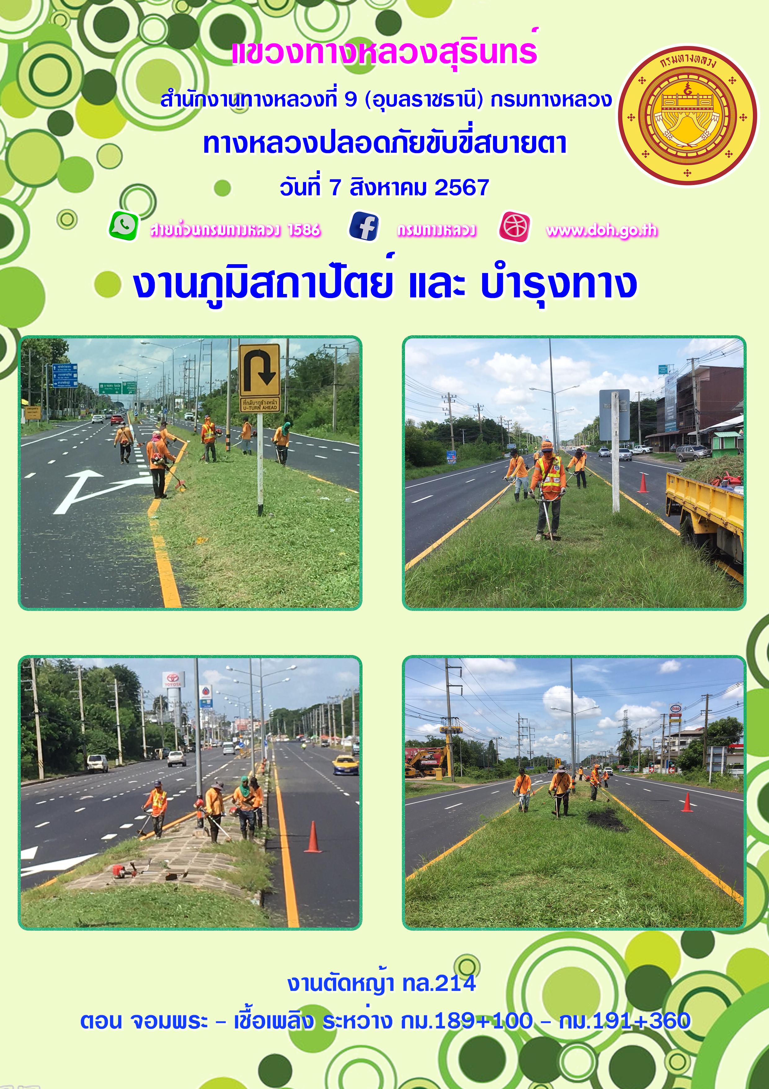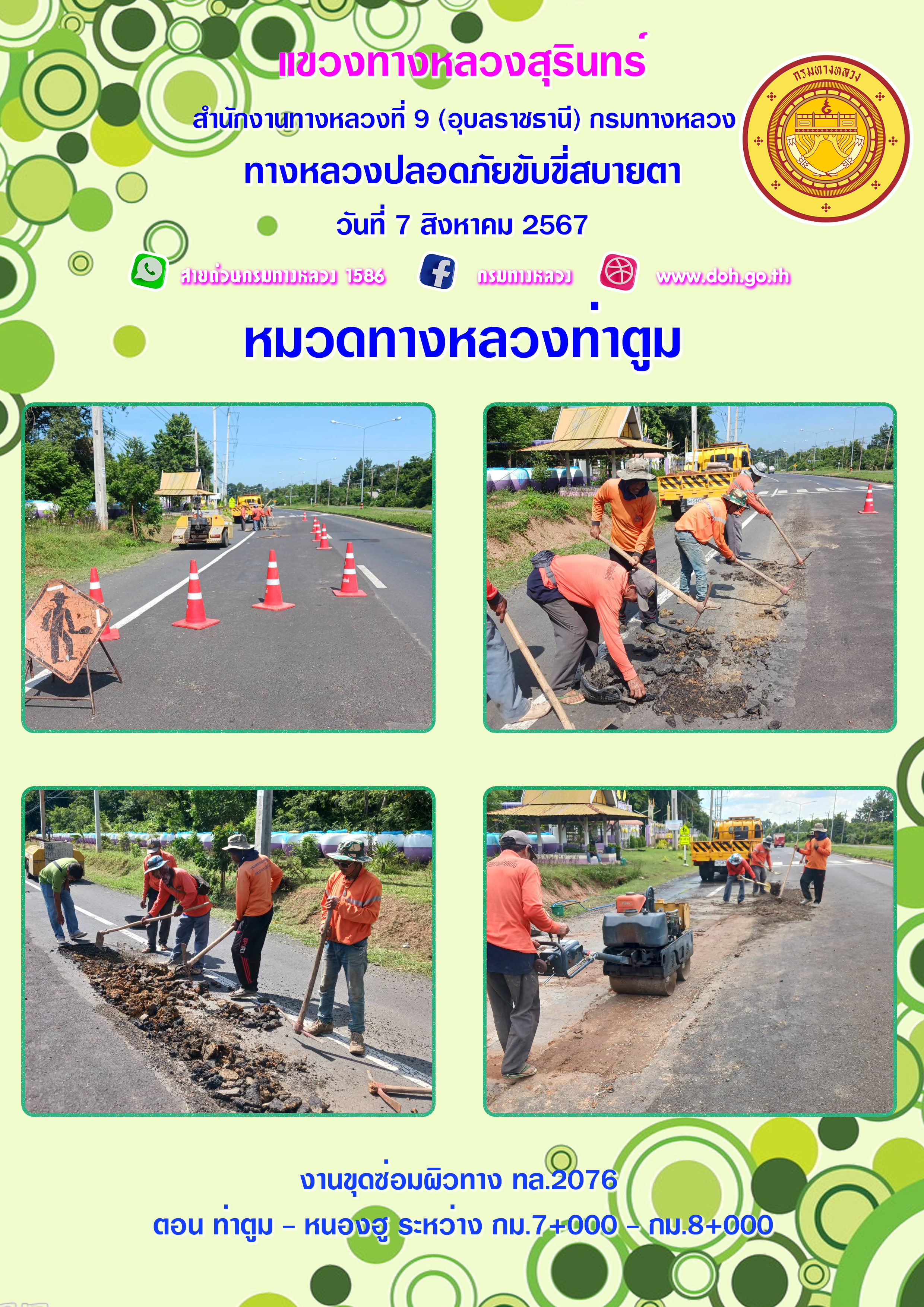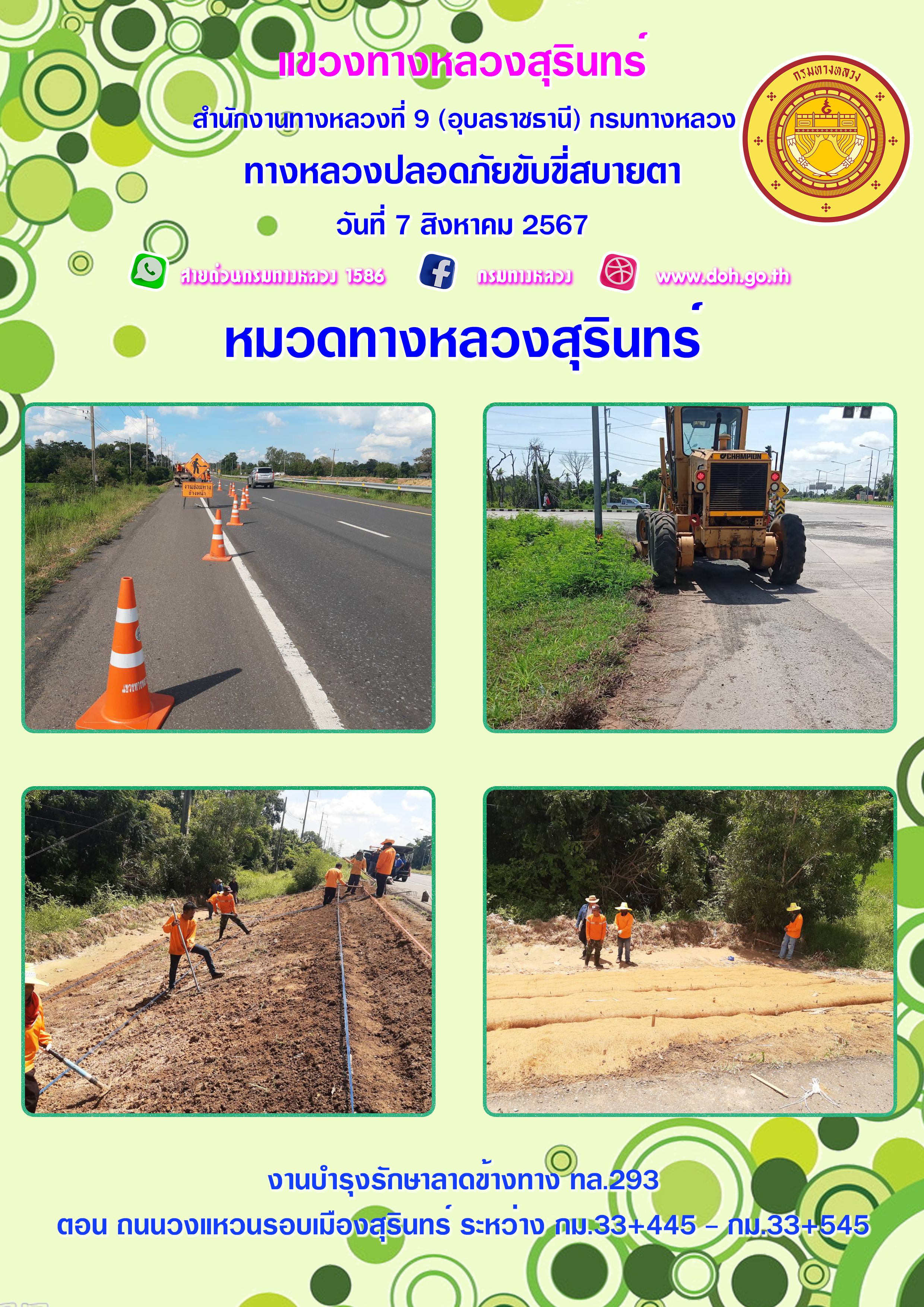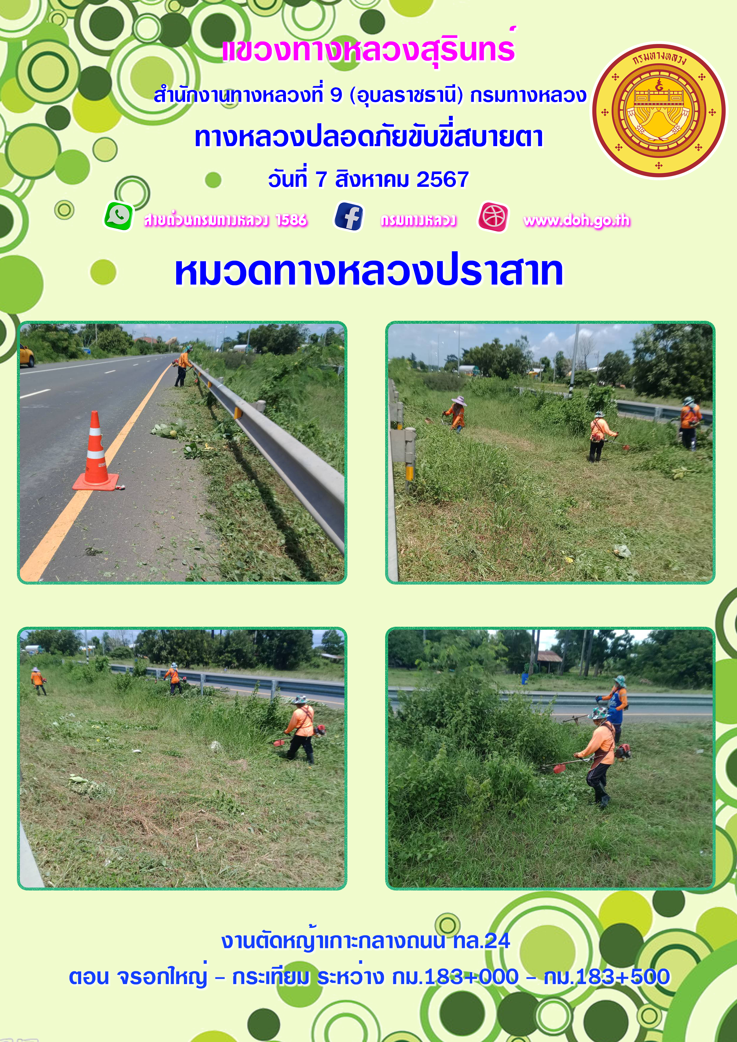 ข้อมูลภาพกิจกรรม : ทางหลวงปลอยภัย ขับขี่สบายตา 7 สิงหาคม 2567