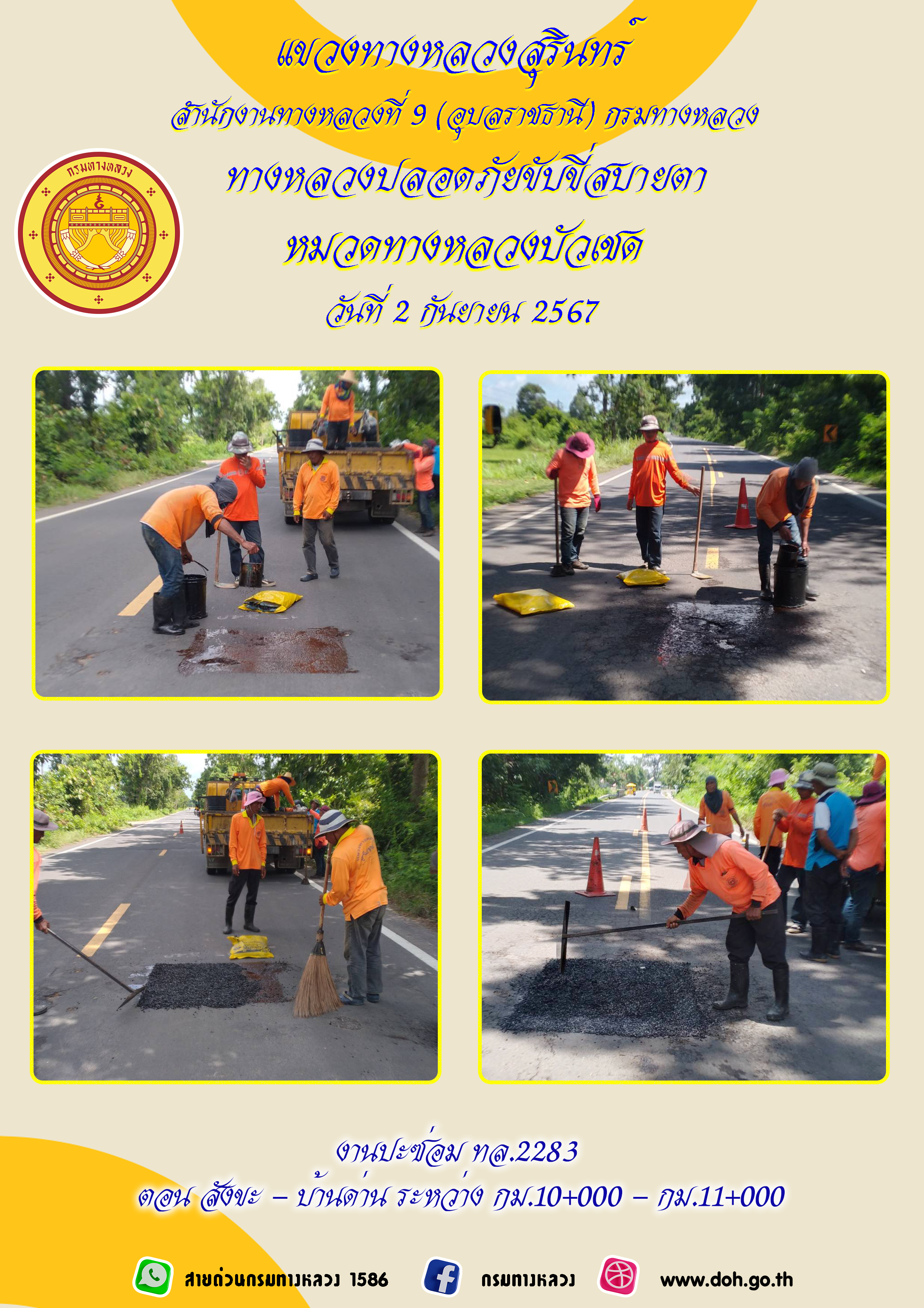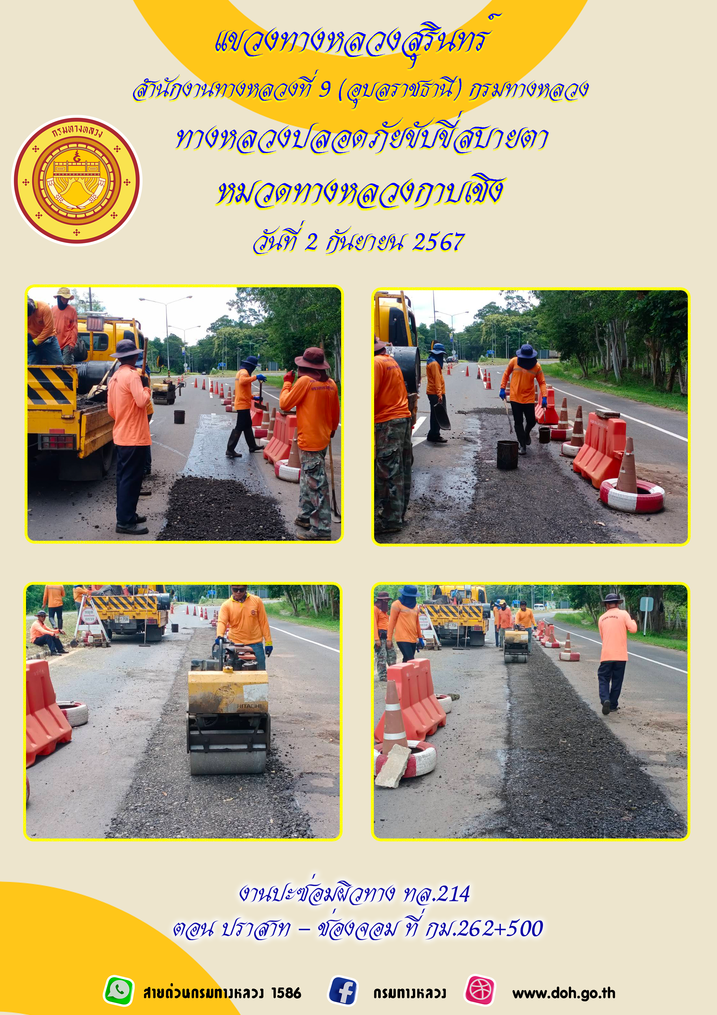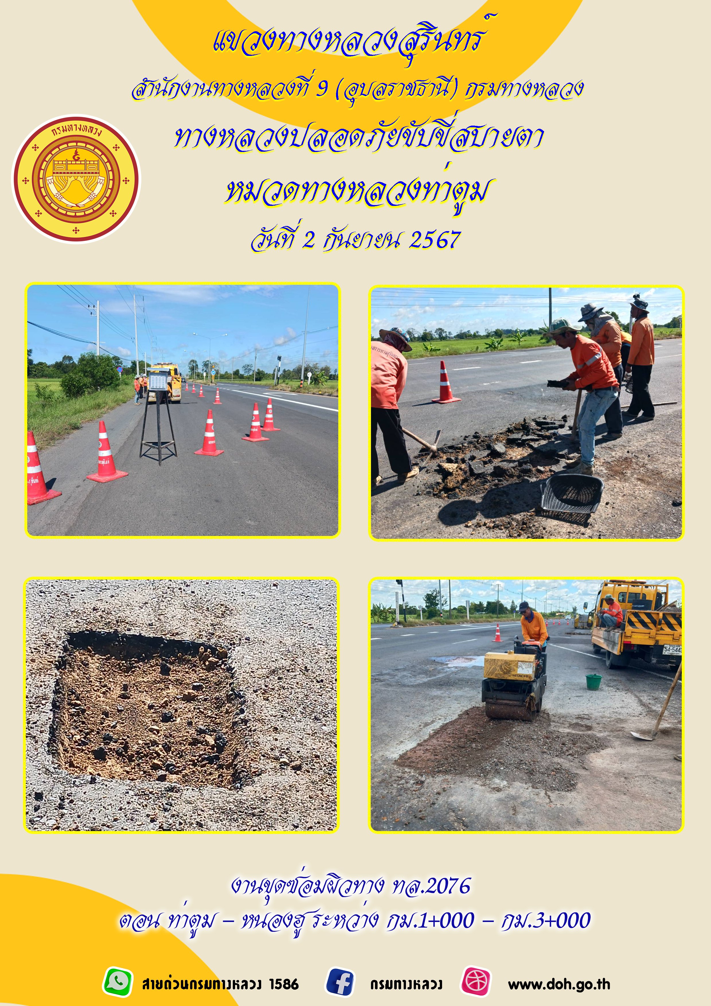 ข้อมูลภาพกิจกรรม : ทางหลวงปลอยภัย ขับขี่สบายตา 2 กันยายน 2567