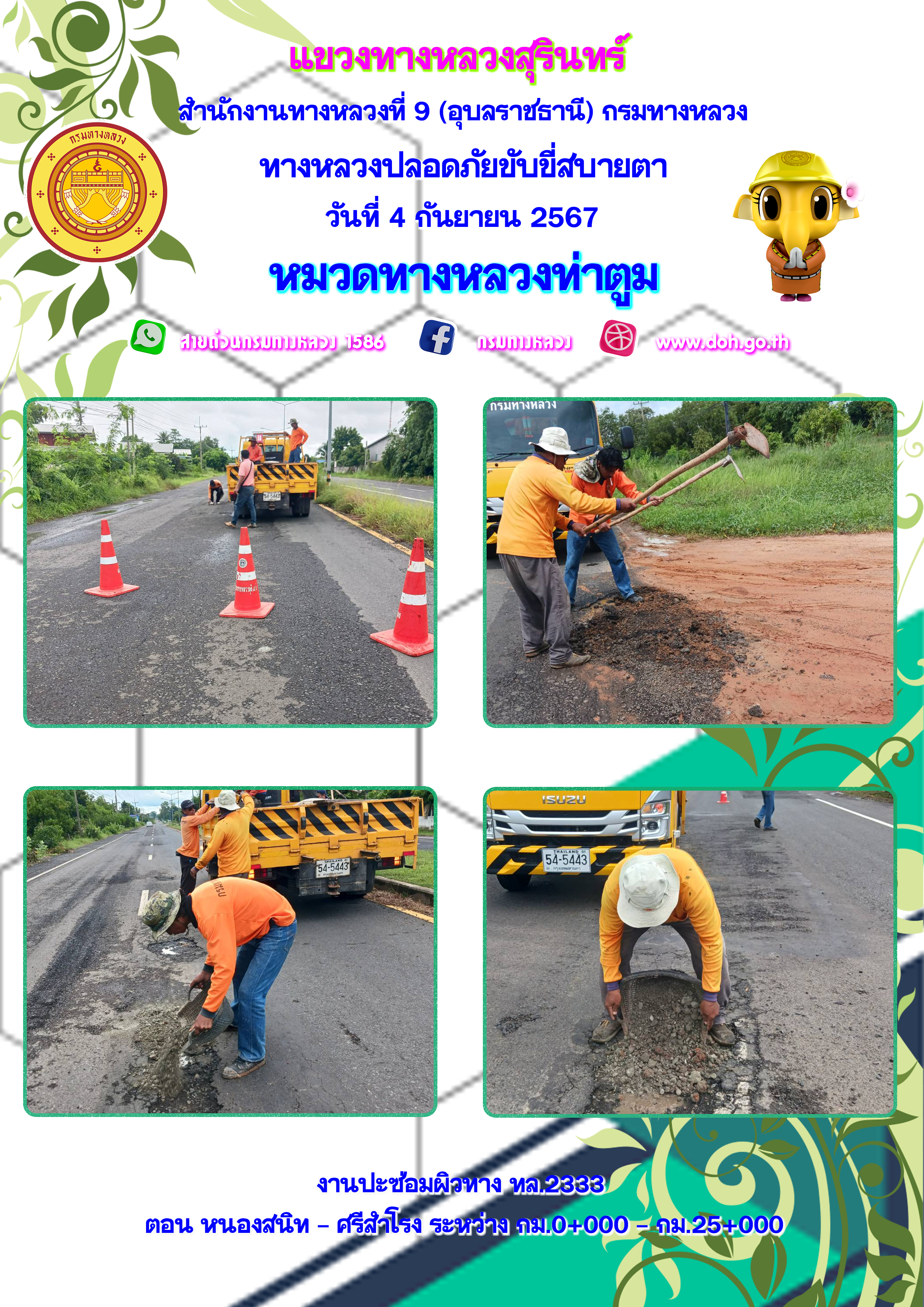 ข้อมูลภาพกิจกรรม : ทางหลวงปลอยภัย ขับขี่สบายตา 4 กันยายน 2567