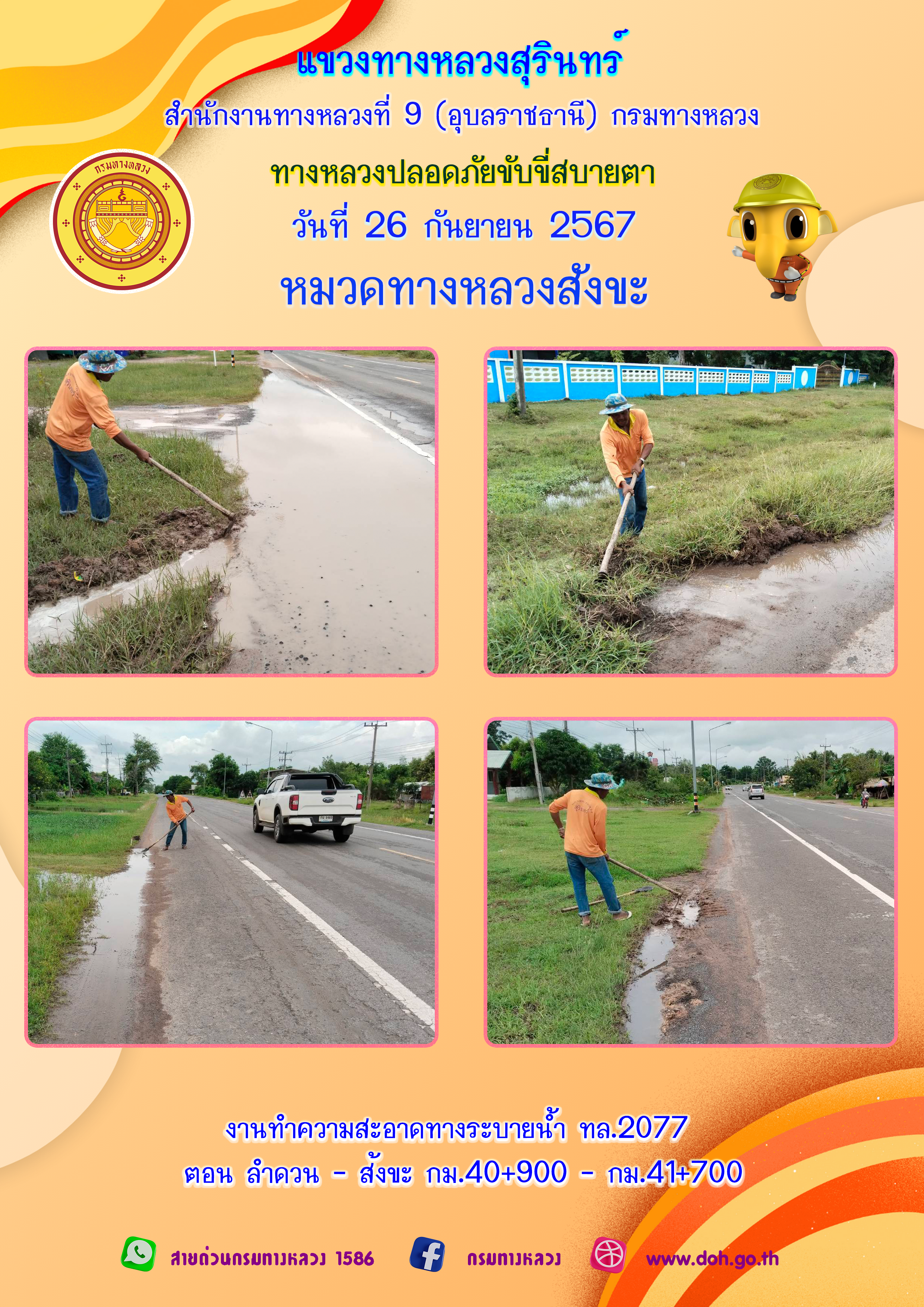 ข้อมูลภาพกิจกรรม : ทางหลวงปลอยภัย ขับขี่สบายตา 26 กันยายน 2567