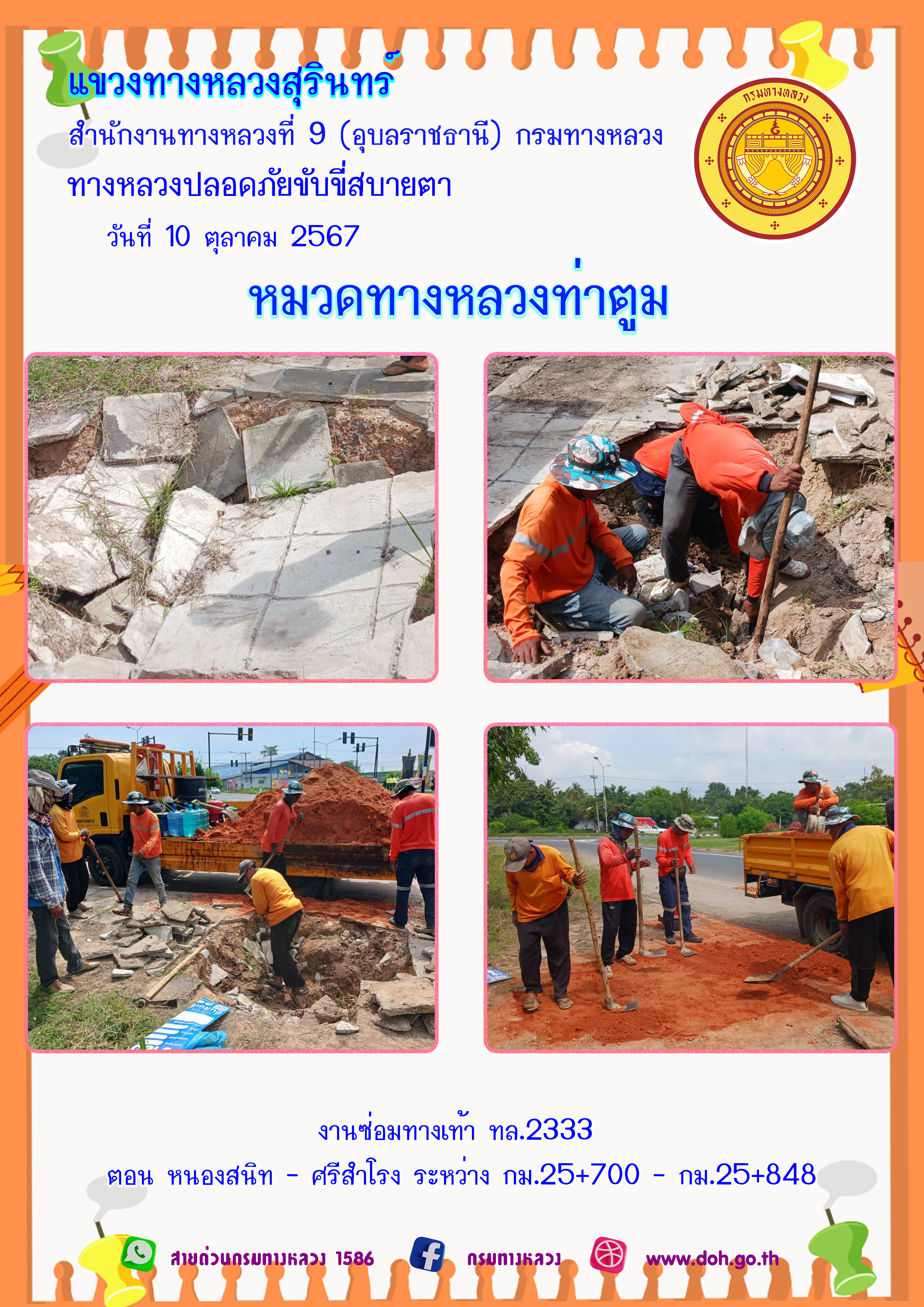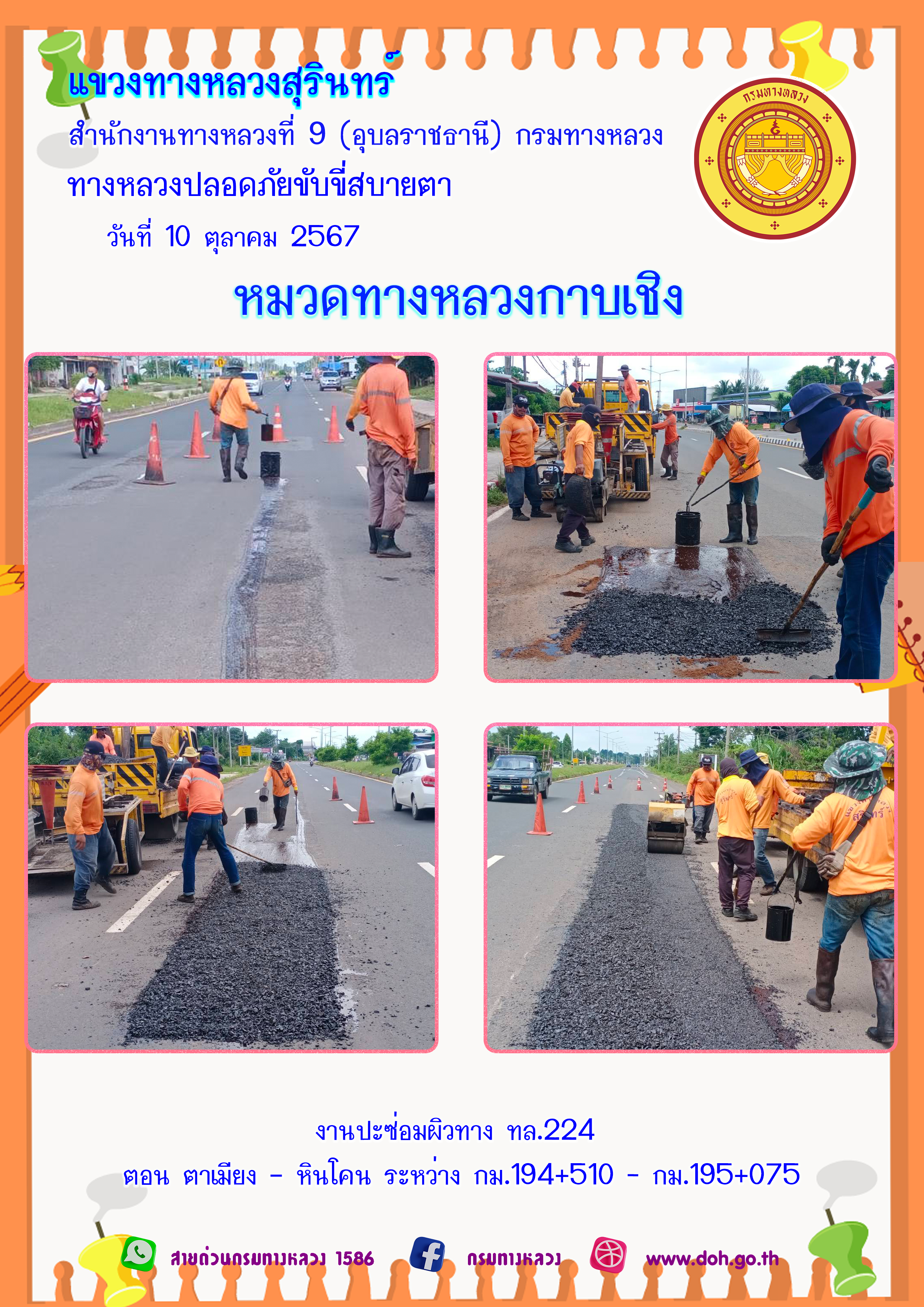 ทางหลวงปลอยภัย ขับขี่สบายตา 10 ตุลาคม 2567