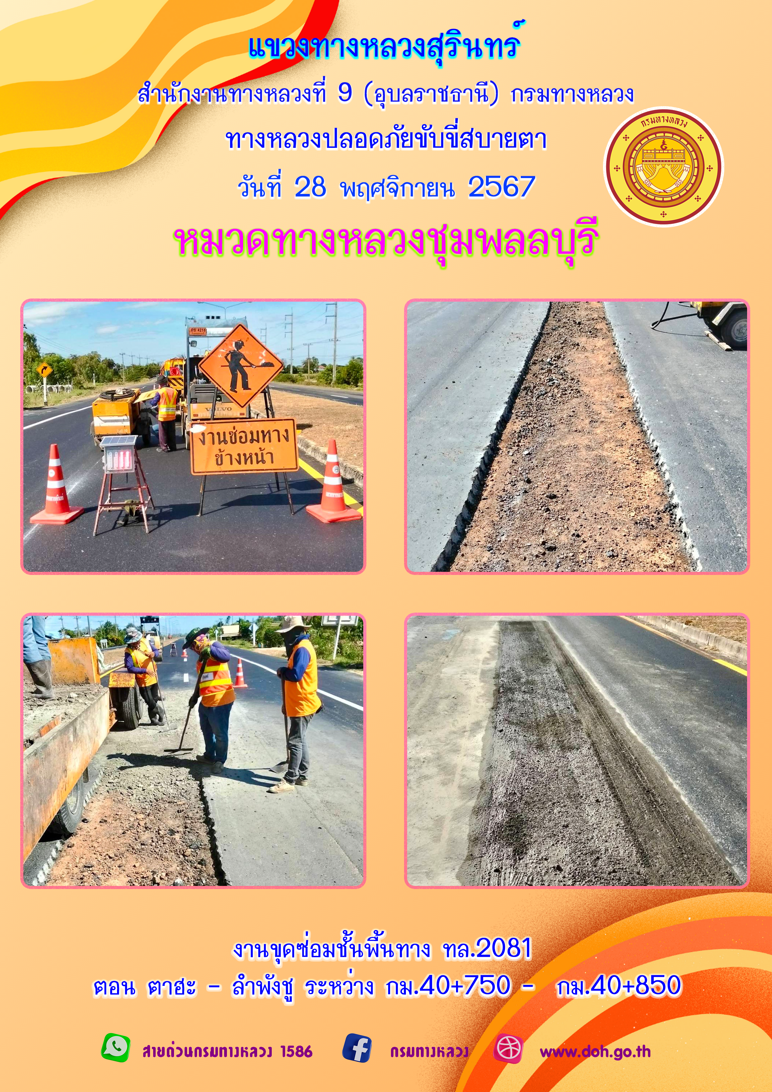 ข้อมูลภาพกิจกรรม : ทางหลวงปลอยภัย ขับขี่สบายตา 28 พฤศจิกายน 2567