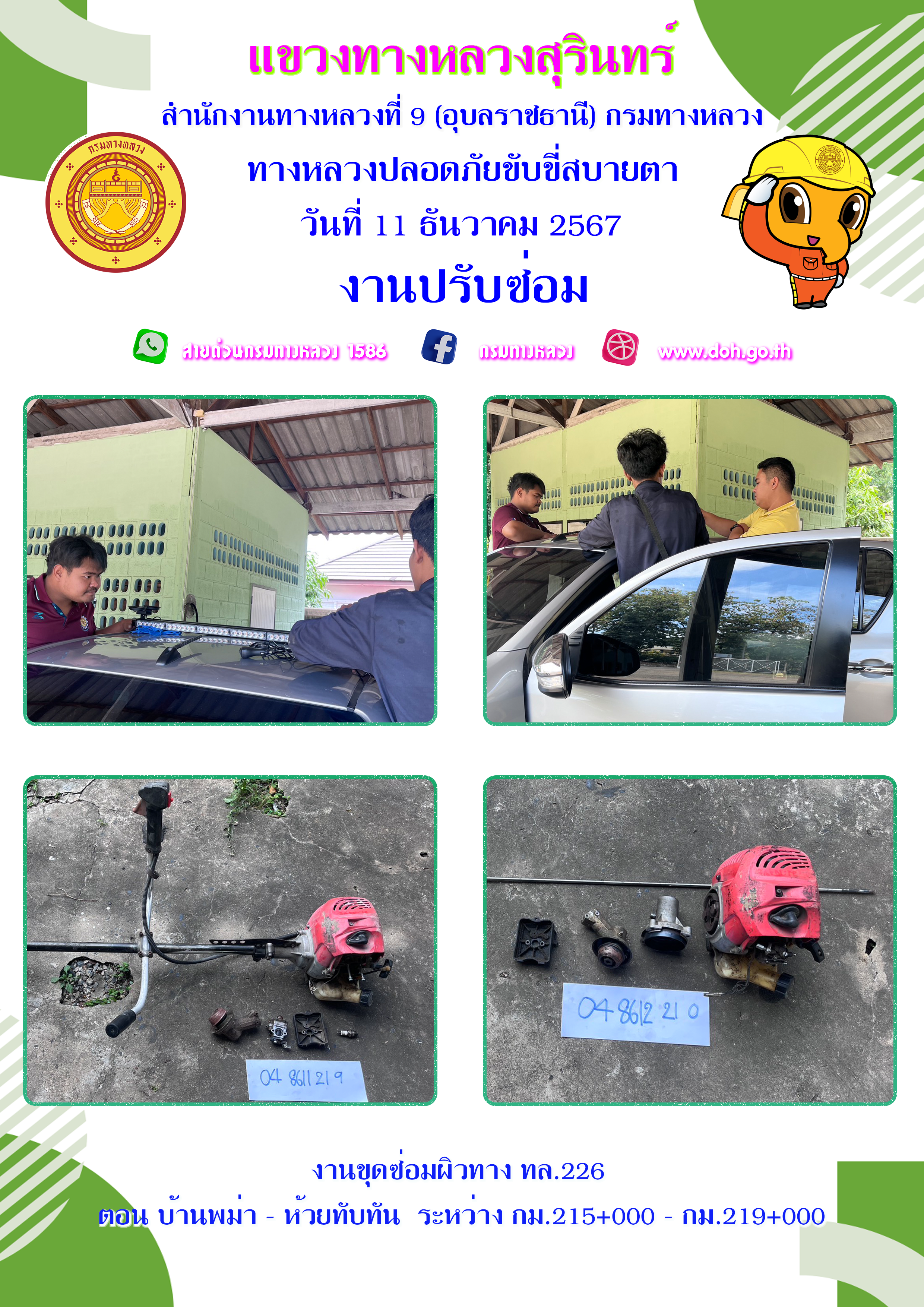 ข้อมูลภาพกิจกรรม : ทางหลวงปลอยภัย ขับขี่สบายตา 11 ธันวาคม 2567