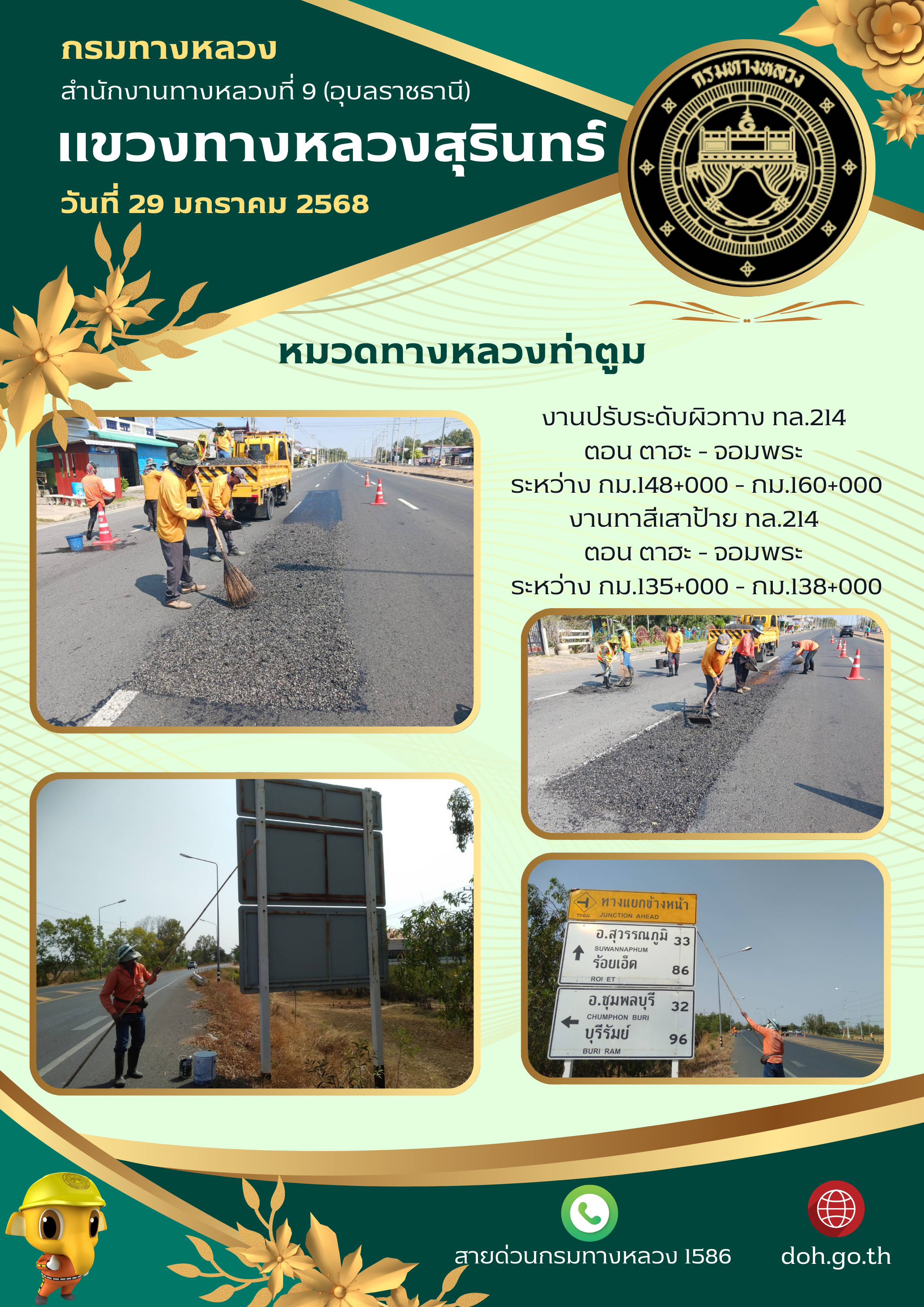 ทางหลวงปลอยภัย ขับขี่สบายตา 29 มกราคม 2568
