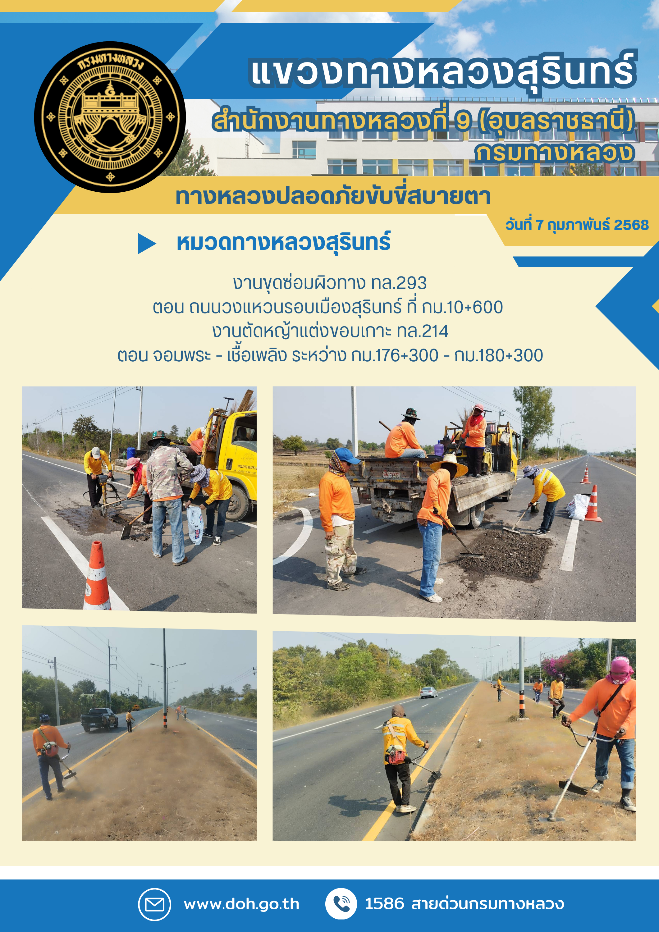 ข้อมูลภาพกิจกรรม : ทางหลวงปลอยภัย ขับขี่สบายตา 7 กุมภาพันธ์ 2568