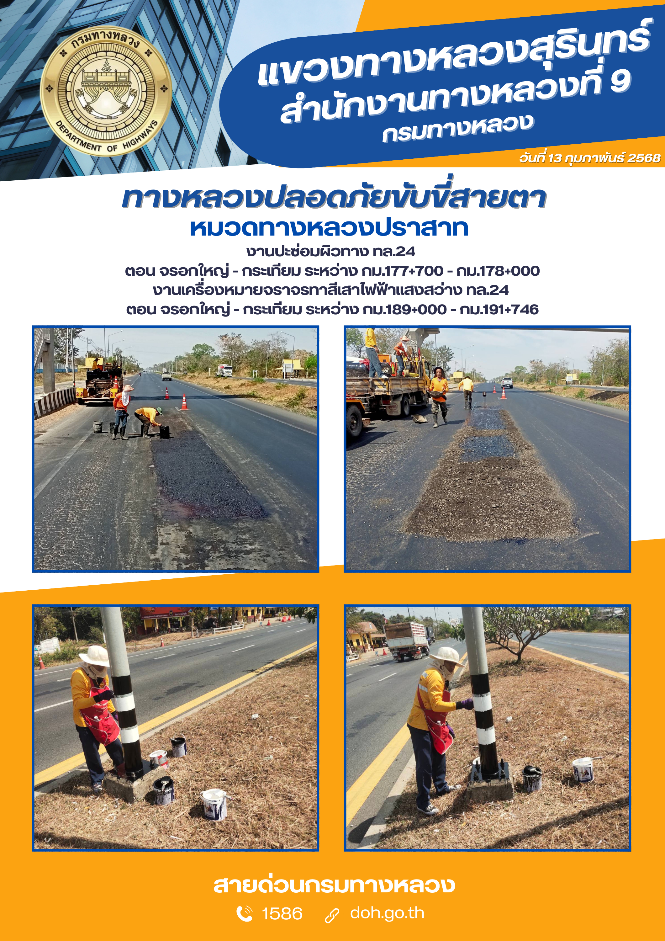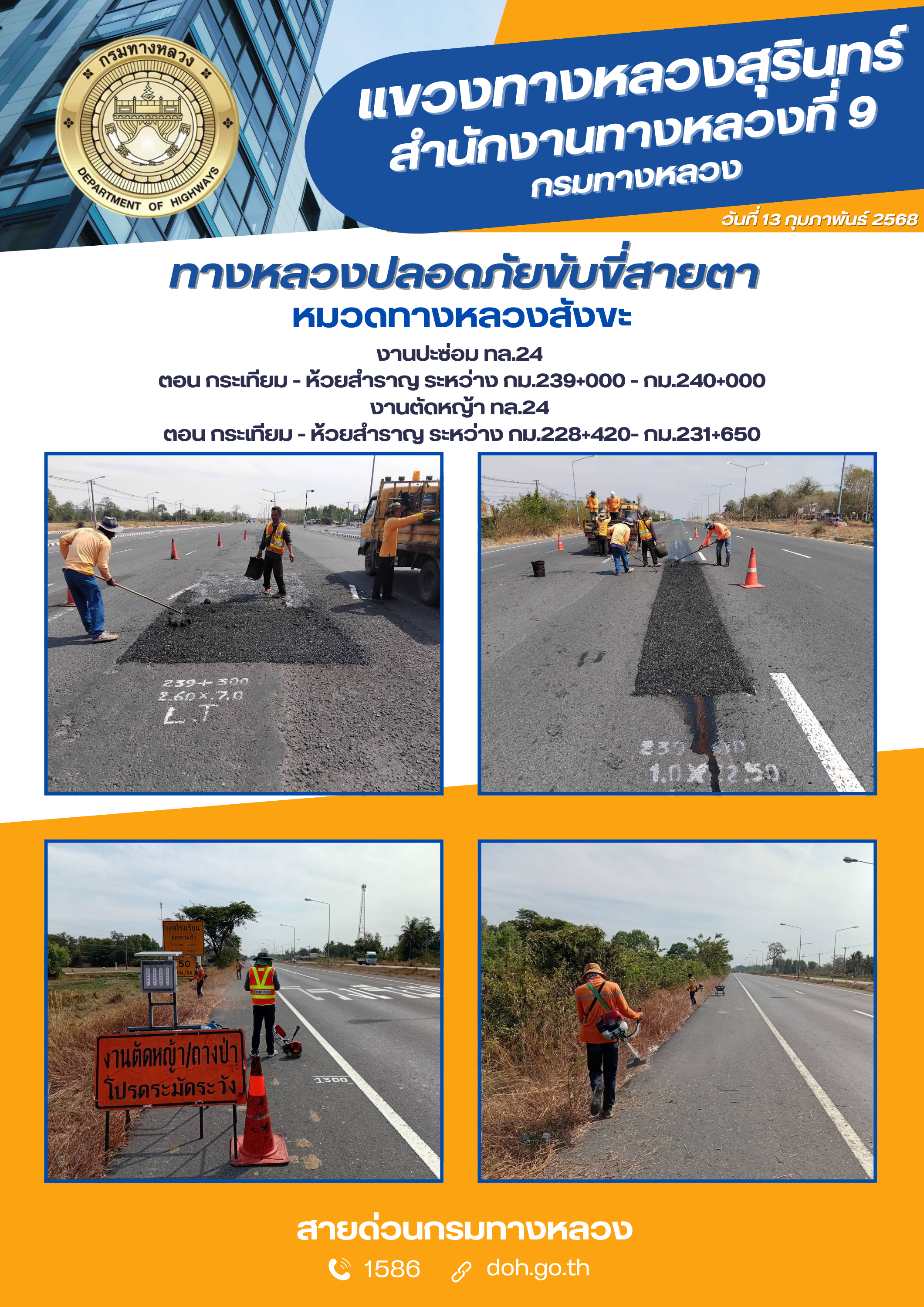 ข้อมูลภาพกิจกรรม : ทางหลวงปลอยภัย ขับขี่สบายตา 13 กุมภาพันธ์ 2568