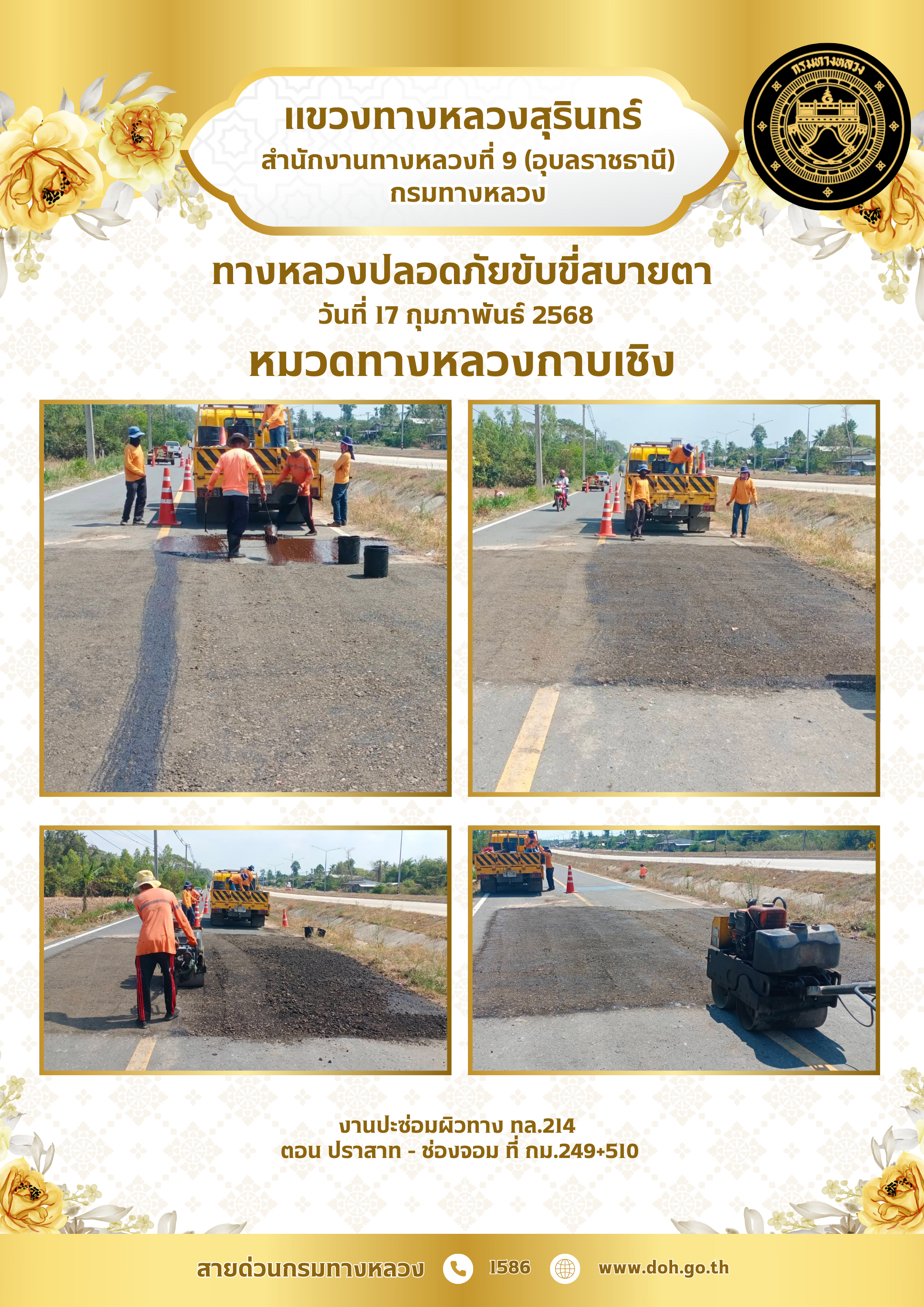 ข้อมูลภาพกิจกรรม : ทางหลวงปลอยภัย ขับขี่สบายตา 17 กุมภาพันธ์ 2568