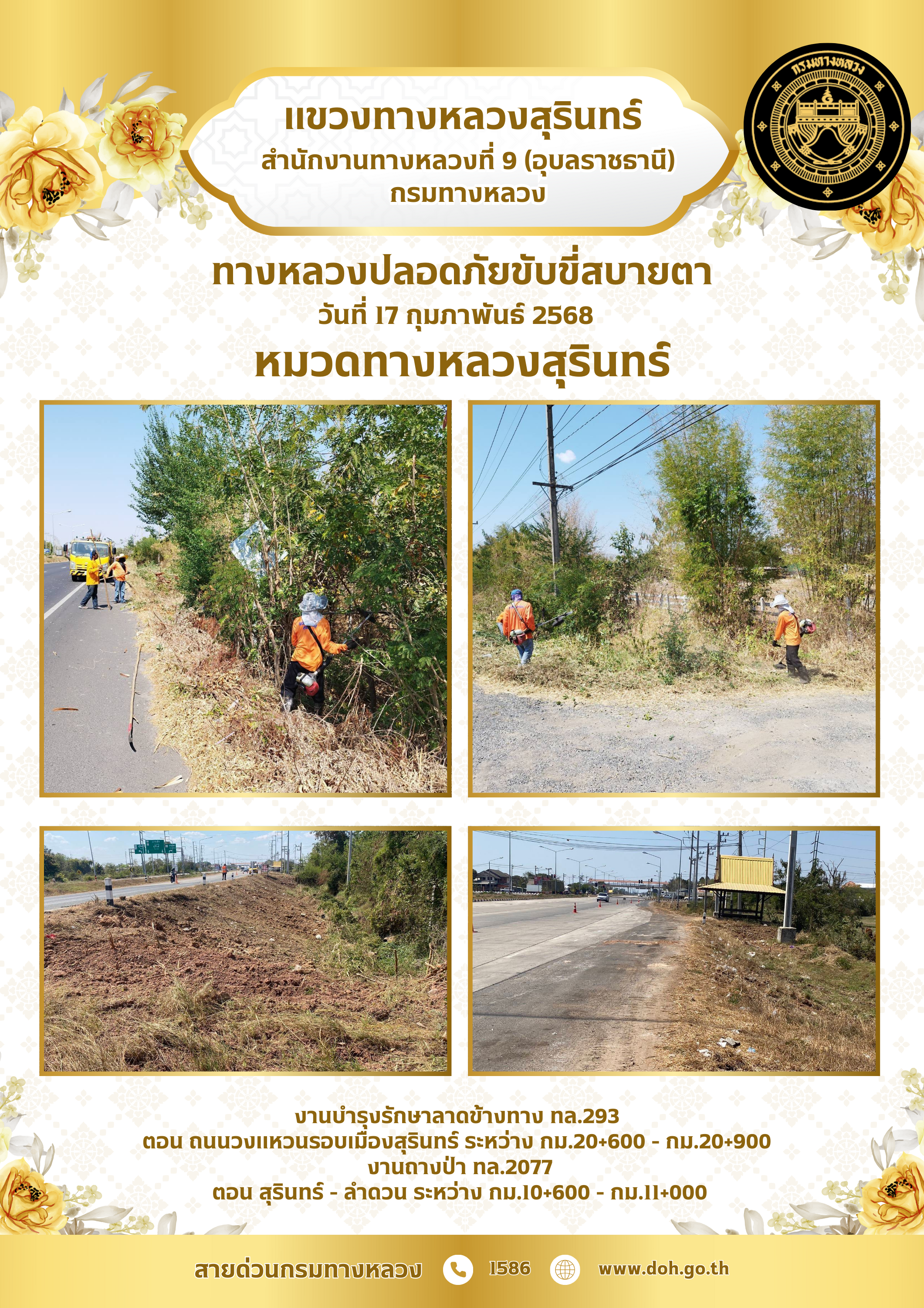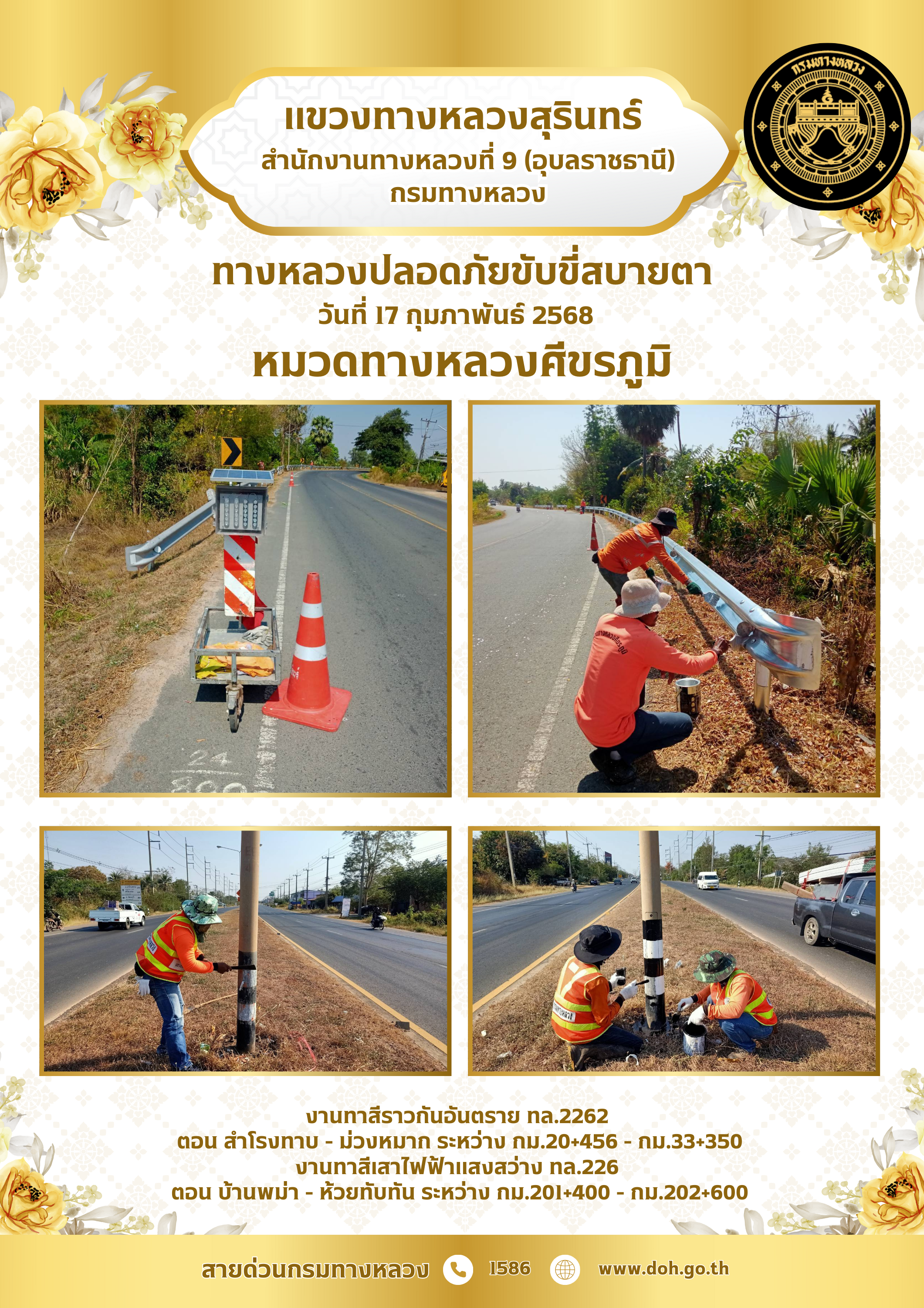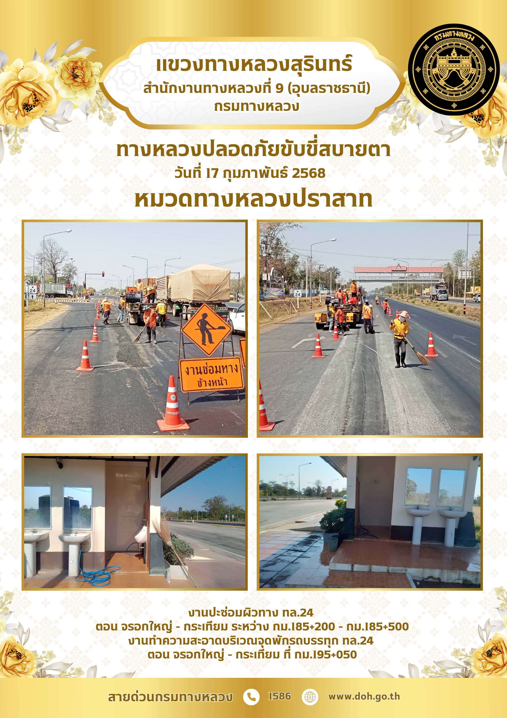 ทางหลวงปลอยภัย ขับขี่สบายตา 17 กุมภาพันธ์ 2568
