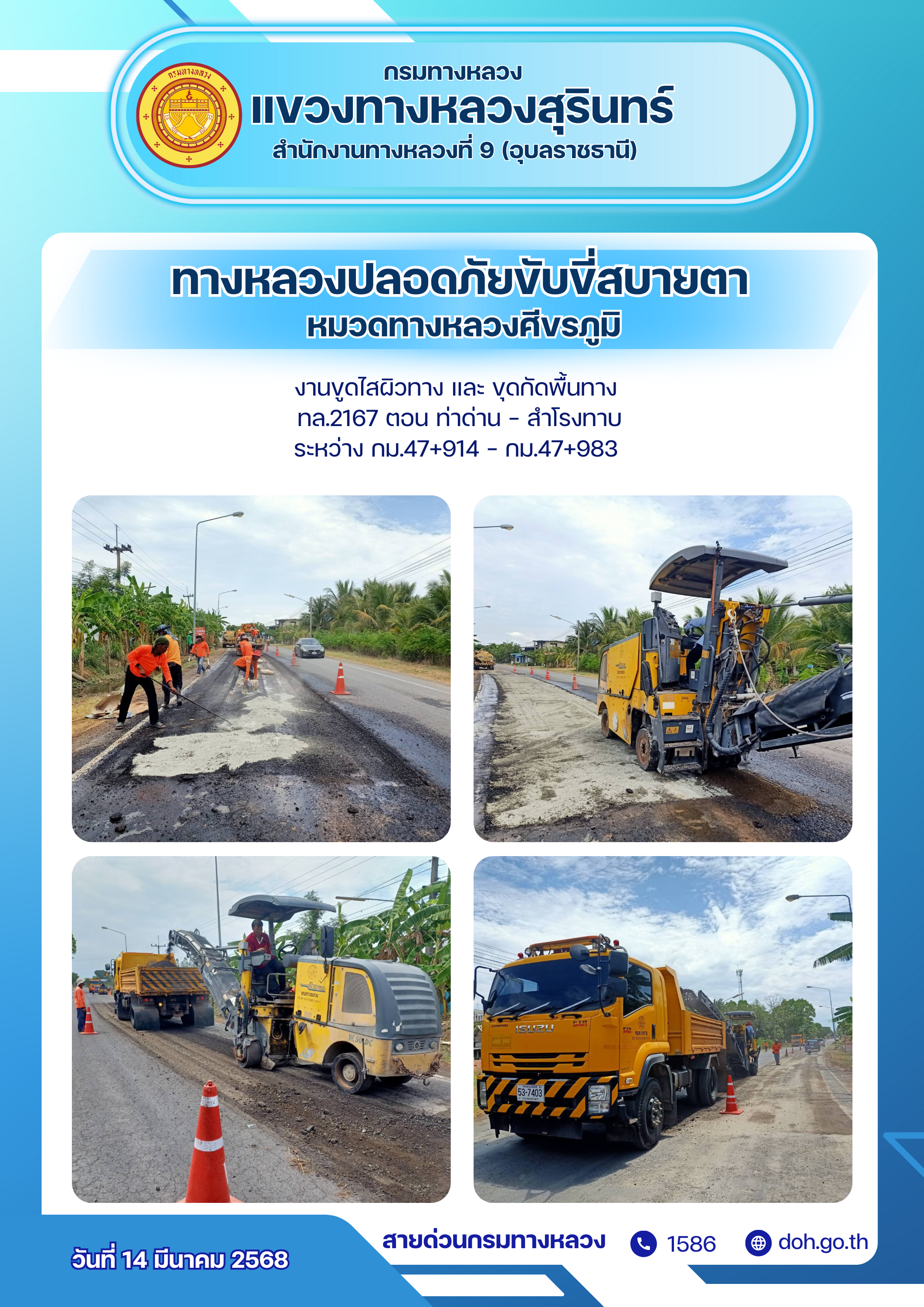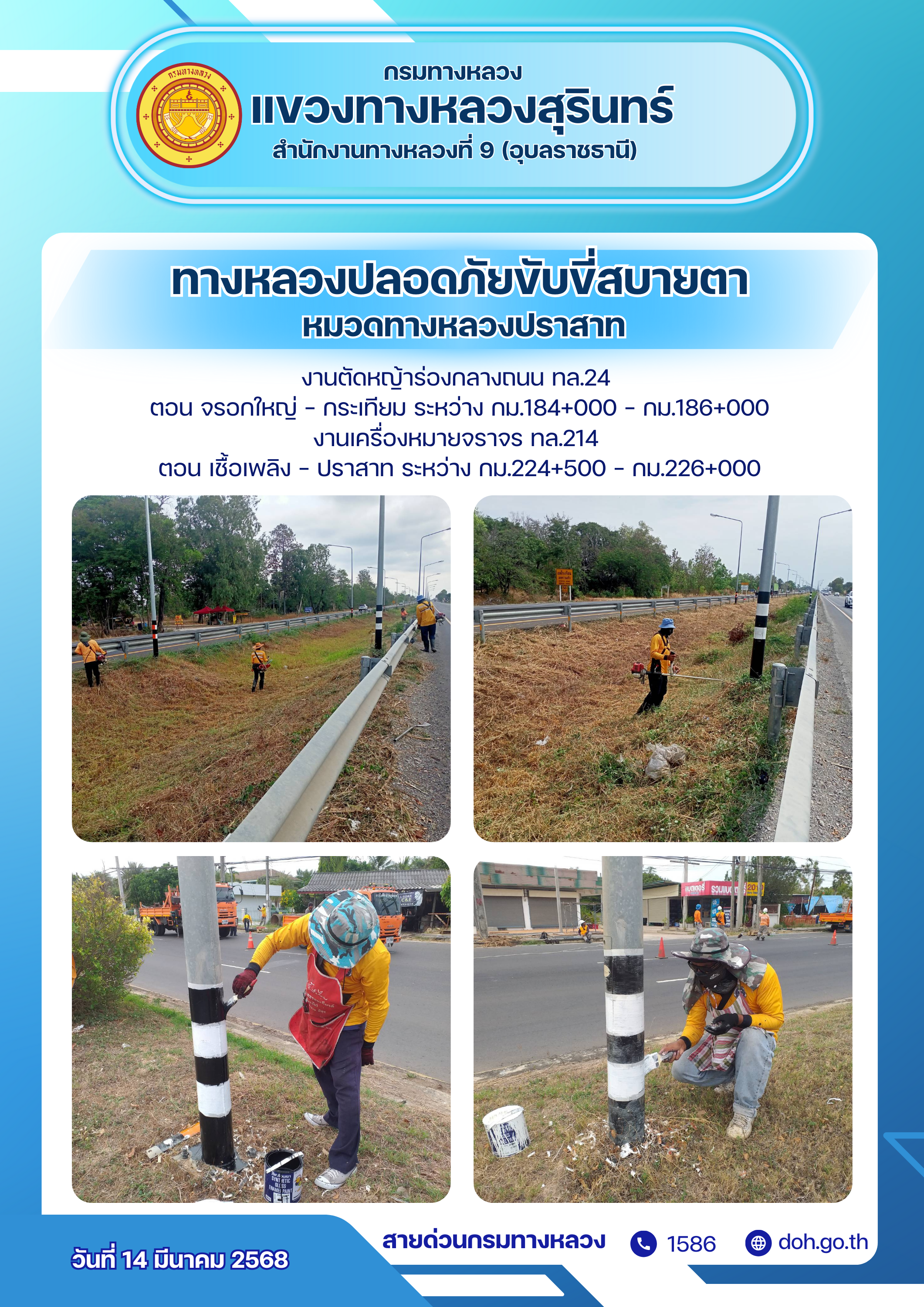 ทางหลวงปลอยภัย ขับขี่สบายตา 14 มีนาคม 2568