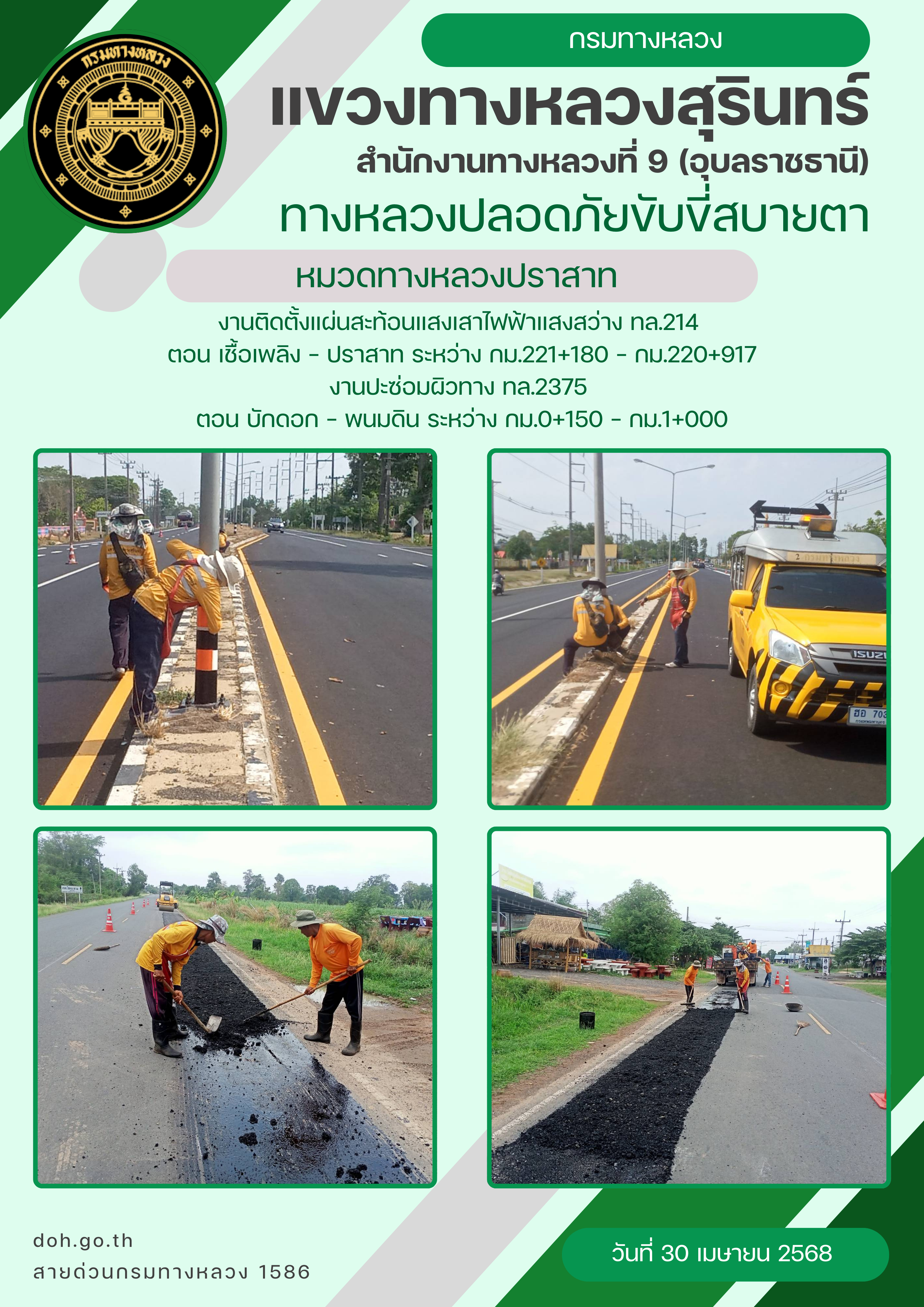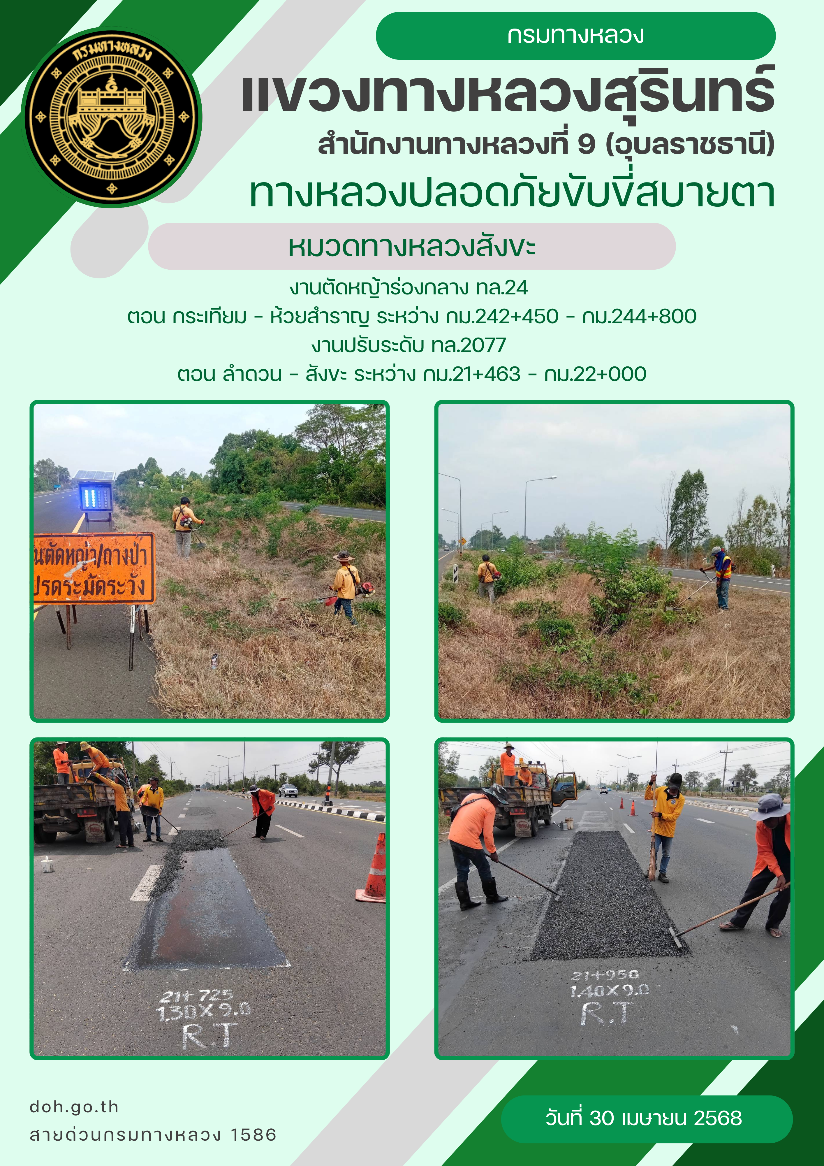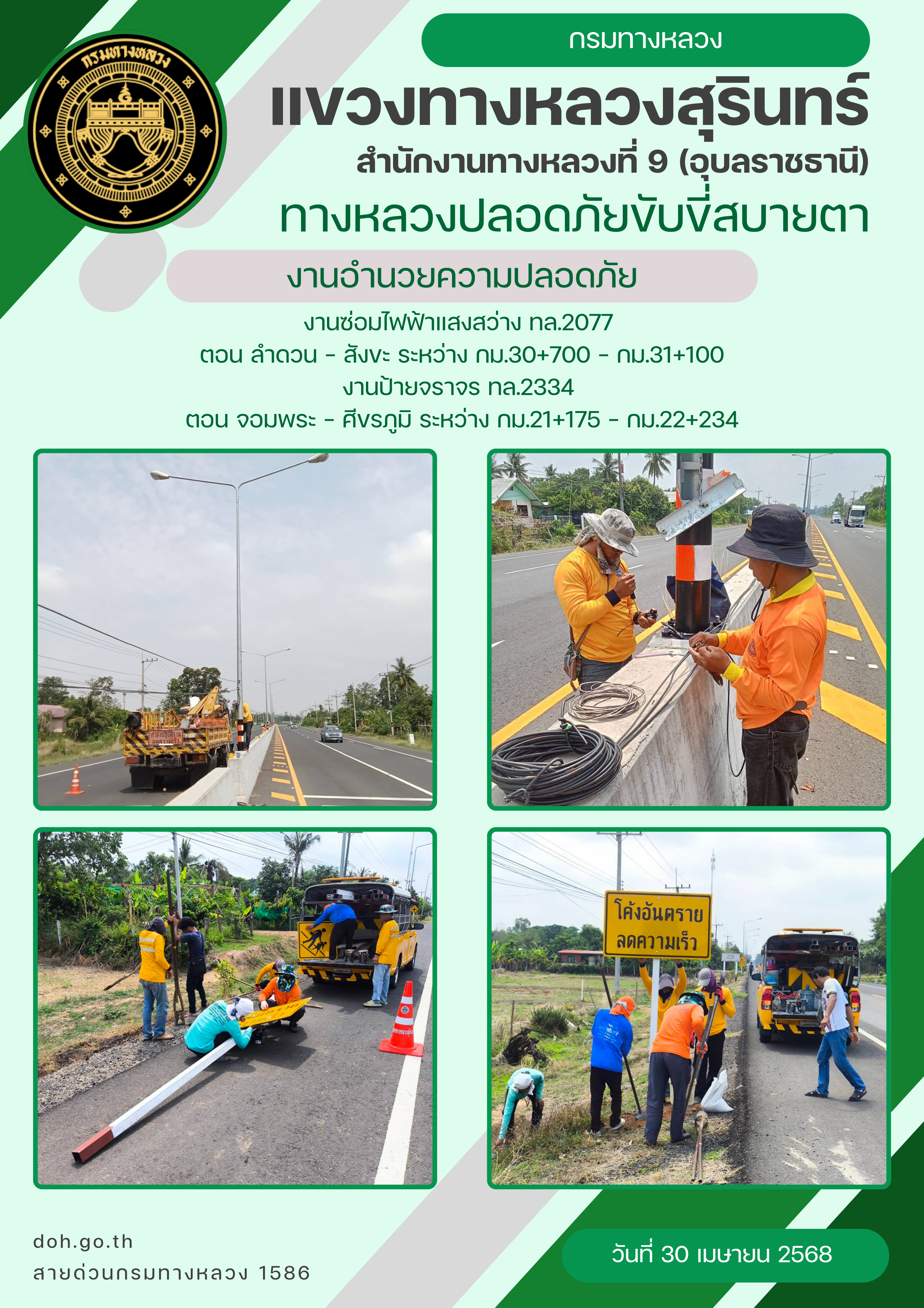 ทางหลวงปลอยภัย ขับขี่สบายตา 30 เมษายน 2568