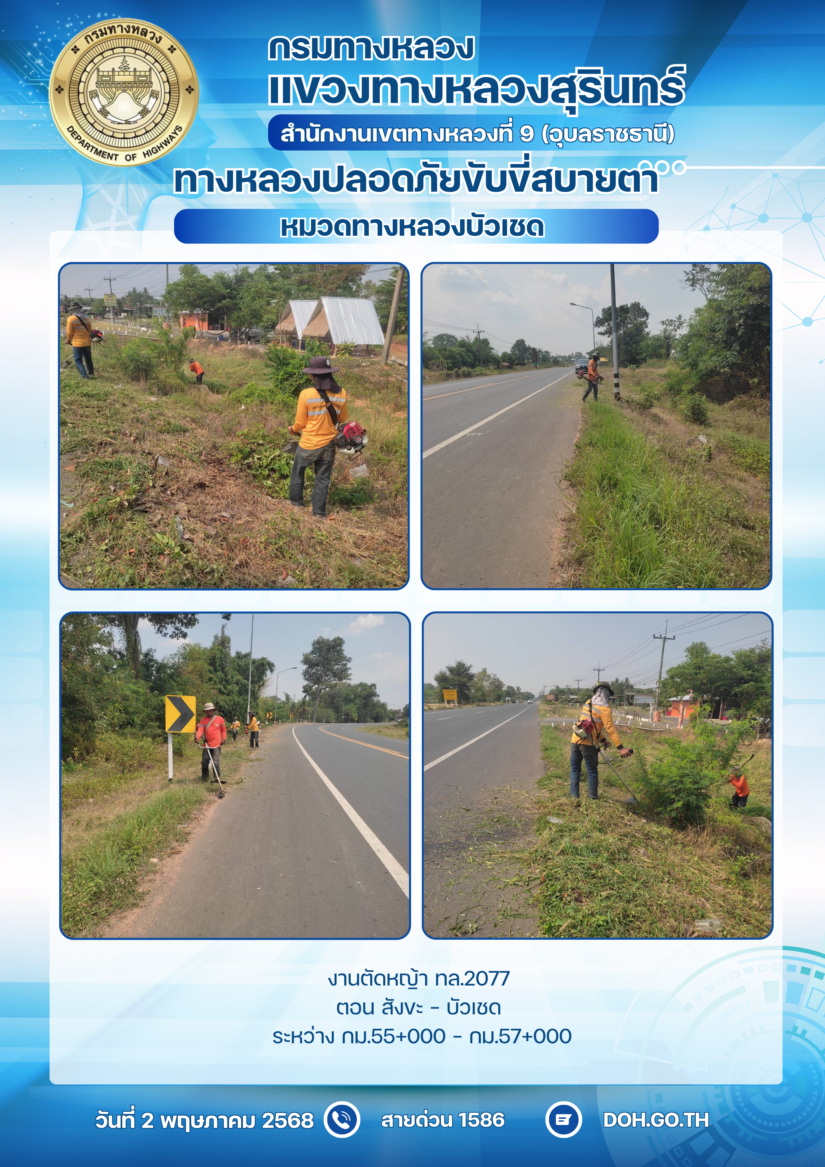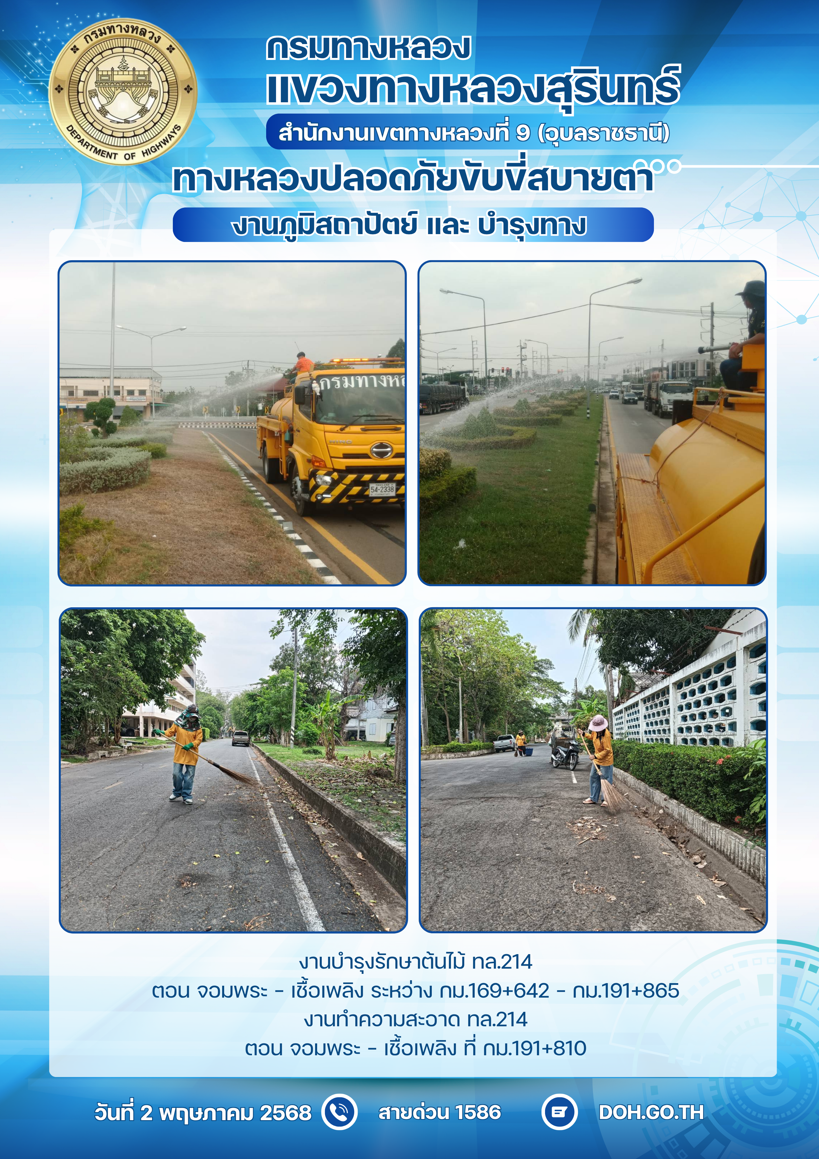 ทางหลวงปลอยภัย ขับขี่สบายตา 2 พฤษภาคม 2568