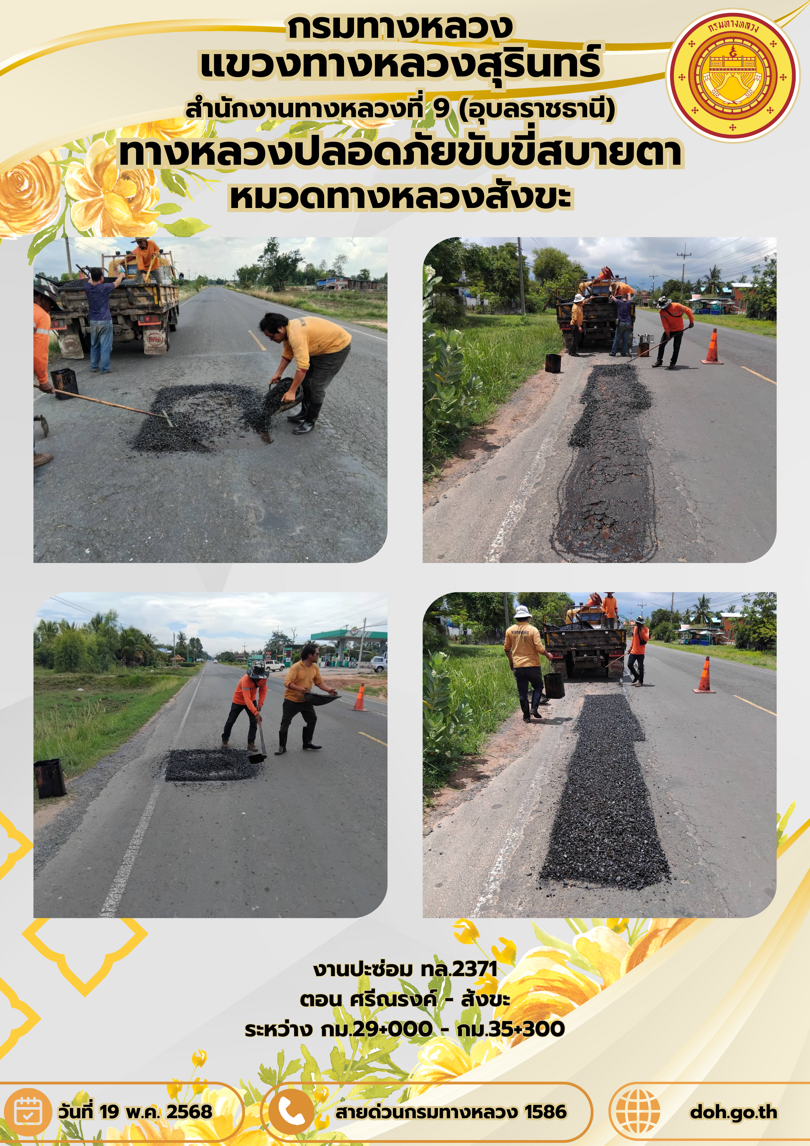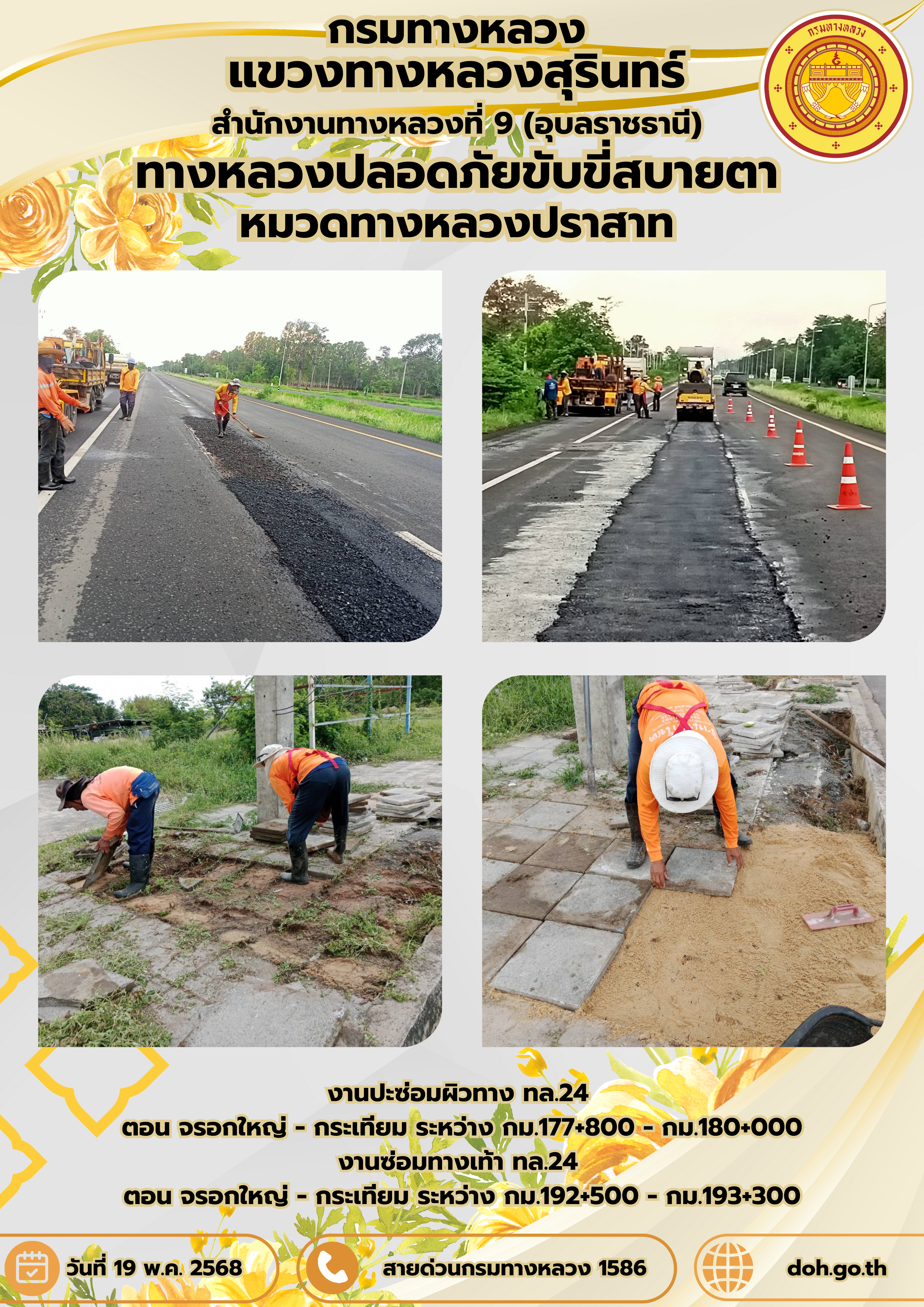 ทางหลวงปลอยภัย ขับขี่สบายตา 19 พฤษภาคม 2568